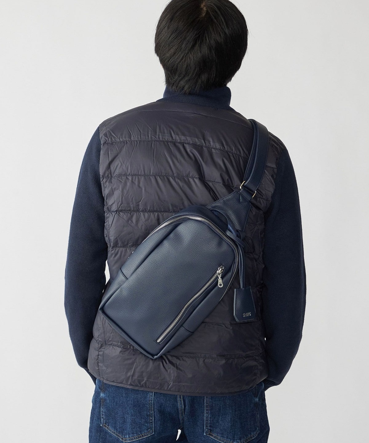 3. 【WEB限定】SHIPS: 合成皮革 ワンショルダー バッグ ネイビー