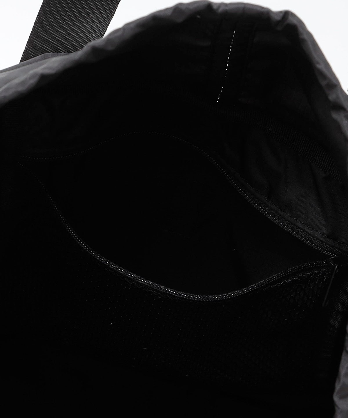 外側の大型メッシュポケットは、細かな仕切りをあえて作らないことで軽アウターの収納も可能。