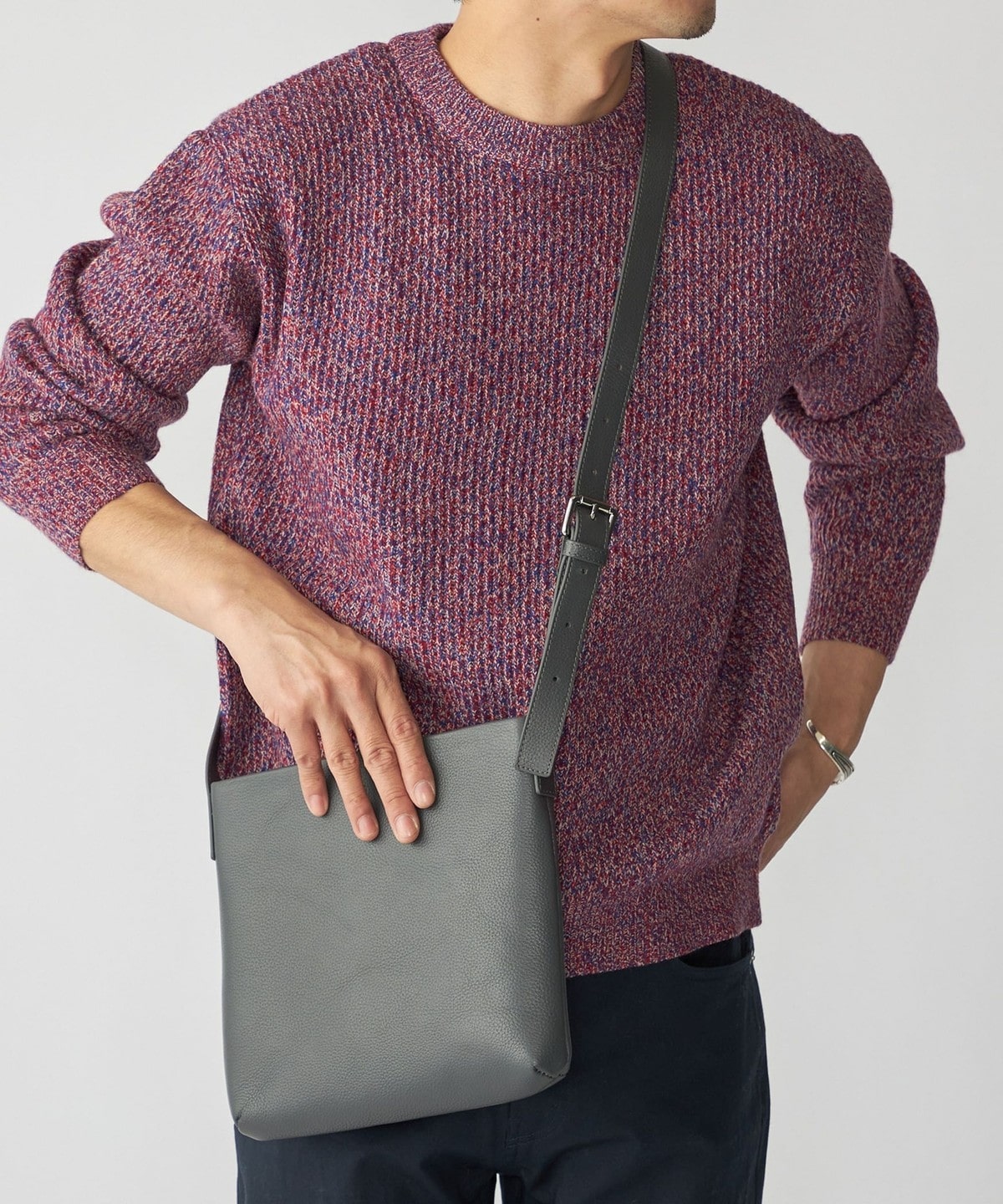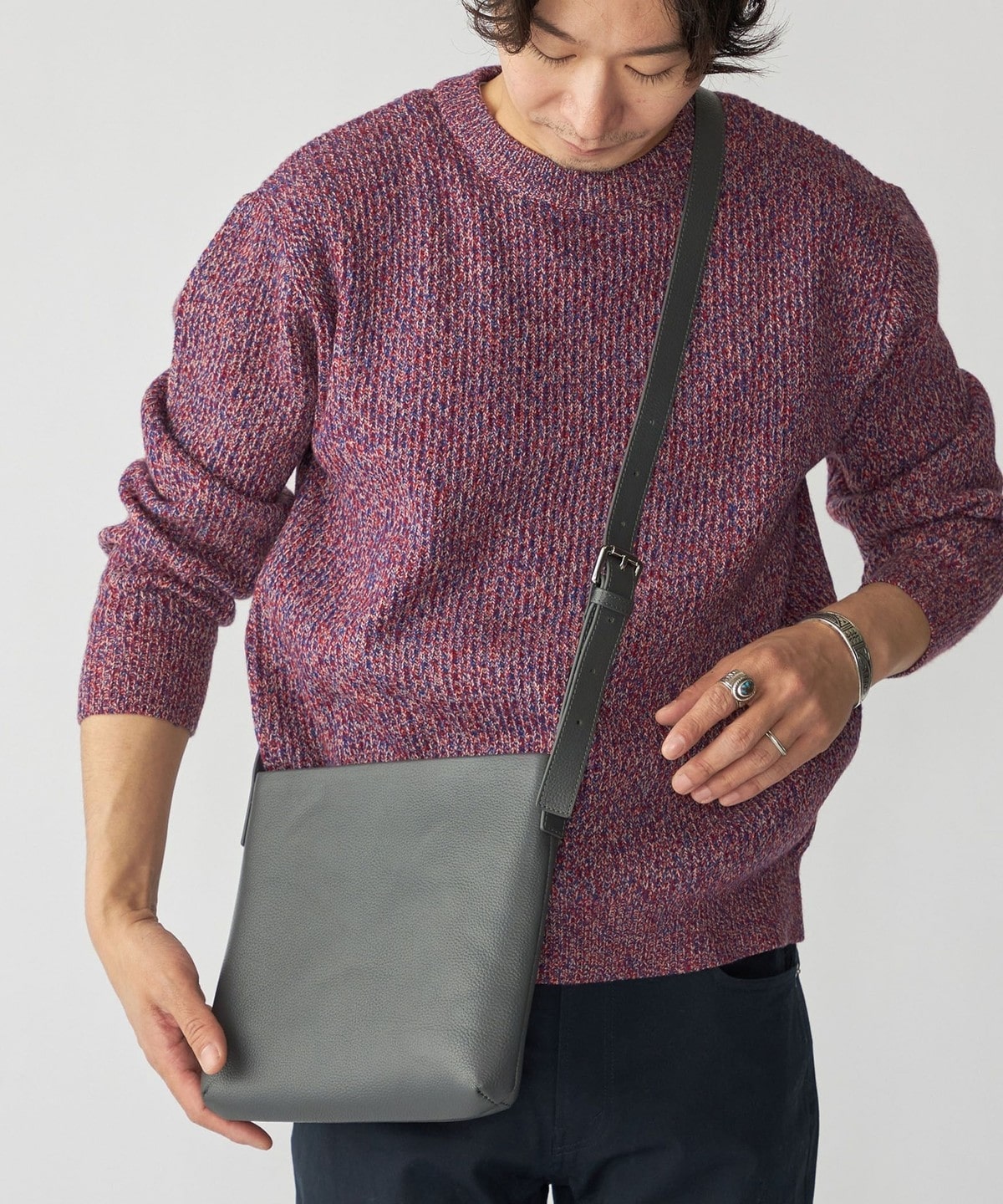 3. SHIPS: スマート レザー ショルダーバッグ ダークグレー