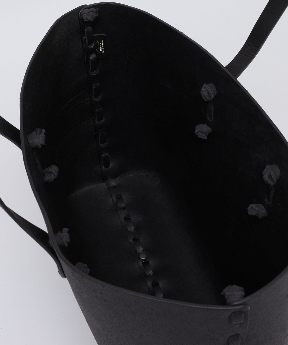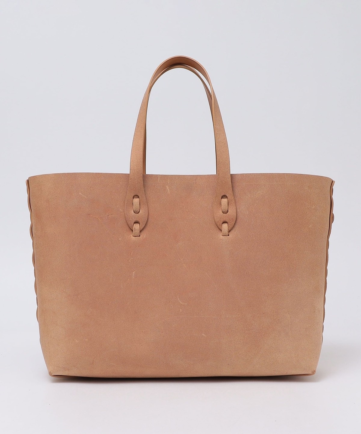 ロベッシャータと言われるバケッタレザーの裏側を使用した素材別注トートバッグ。