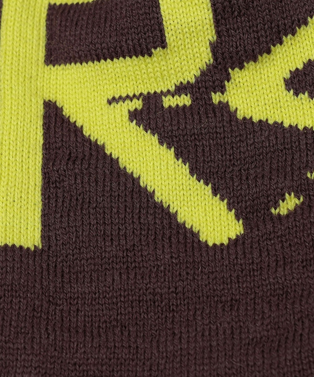 ダークブラウンのカラーに、イエローのコントラストカラーのグラフィックロゴが特徴です。