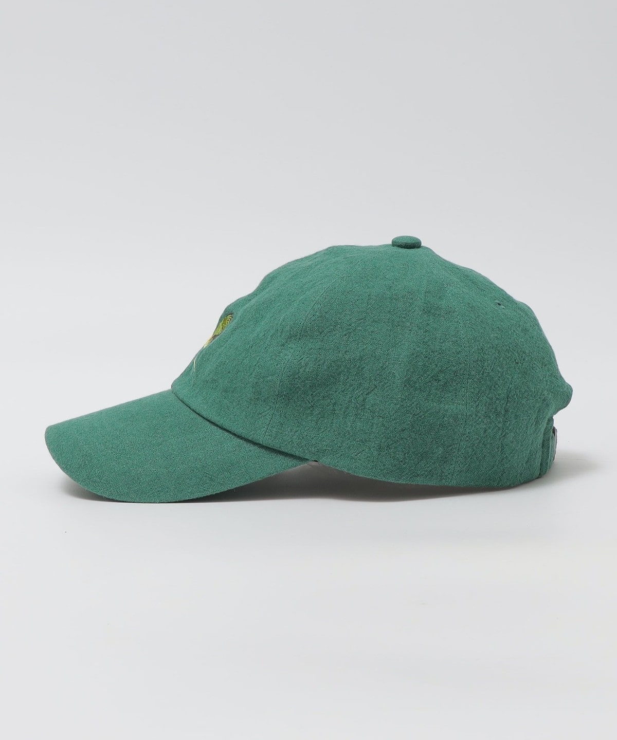 奥深い表情の生地に鮮やかなワカケホンセイインコの刺繍が映えるベースボールキャップ。
