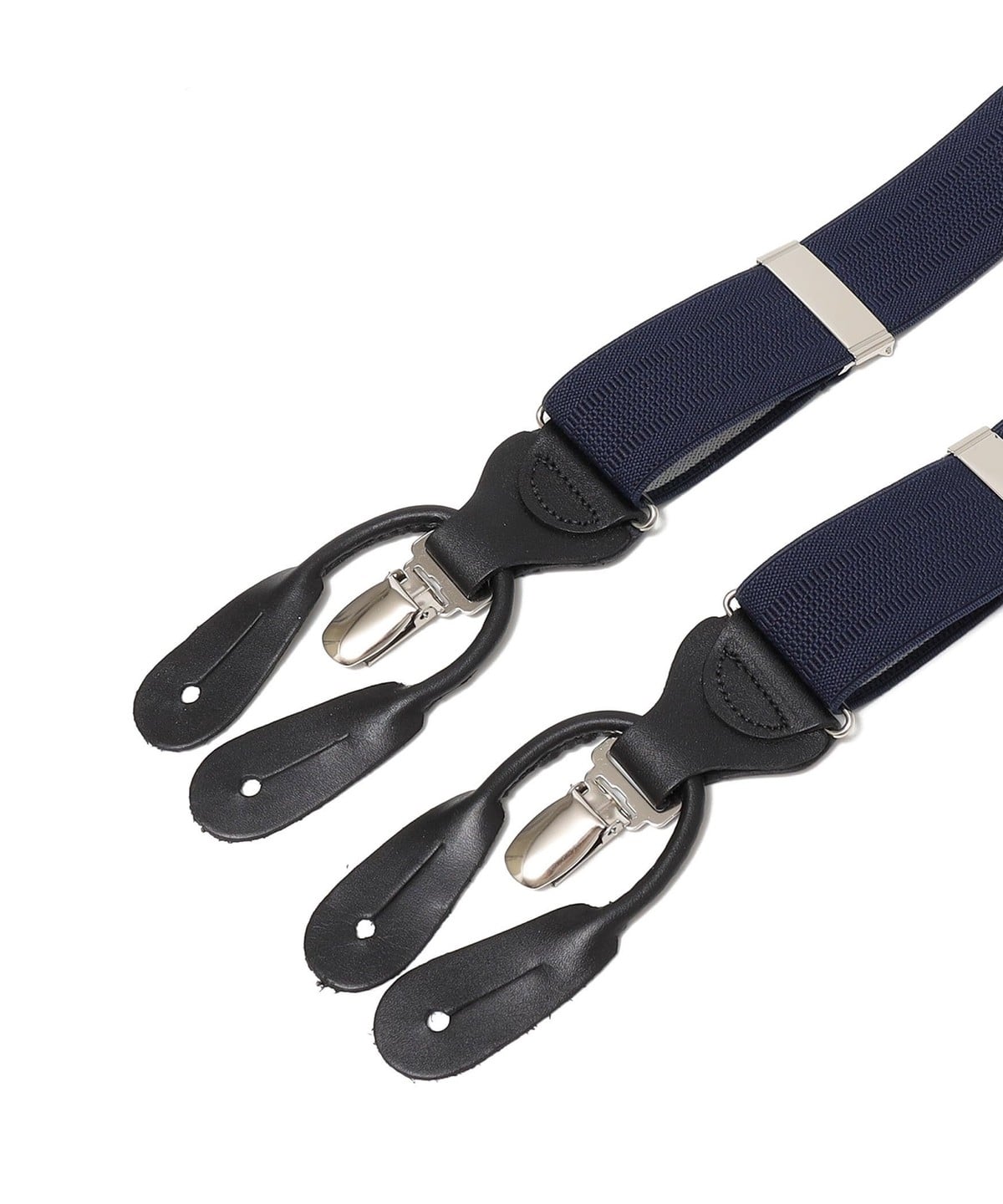 クリップ・サスペンダーボタン用の革紐はそれぞれお外しすることができるので、スタイルに合わせてご着用いただけます。