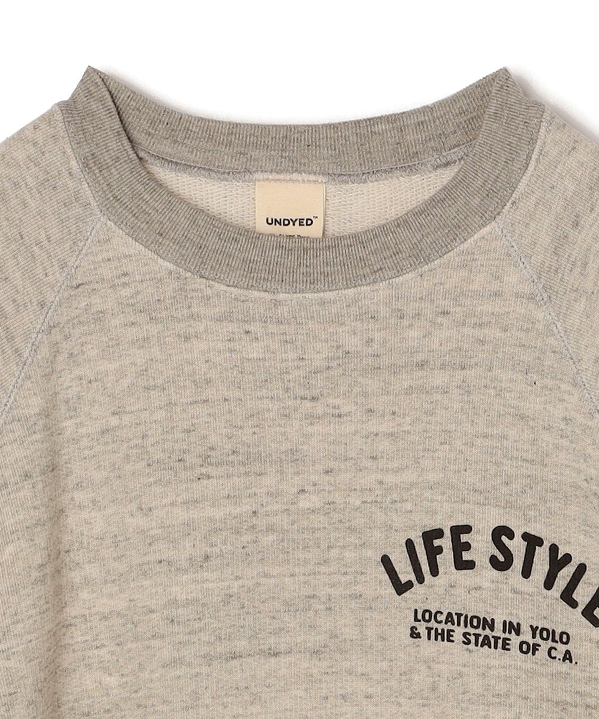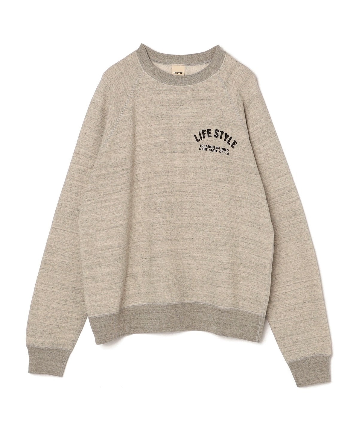 自然界が持つ本来の色彩、無染色で染めない柔らかさ、天然原料そのままの心地よさを感じて欲しいという観点から誕生したレーベル『UNDYED(TM)』そのUNDYEDのカリフォルニアオーガニックコットンを使用したコットン100%のクルースウェット。