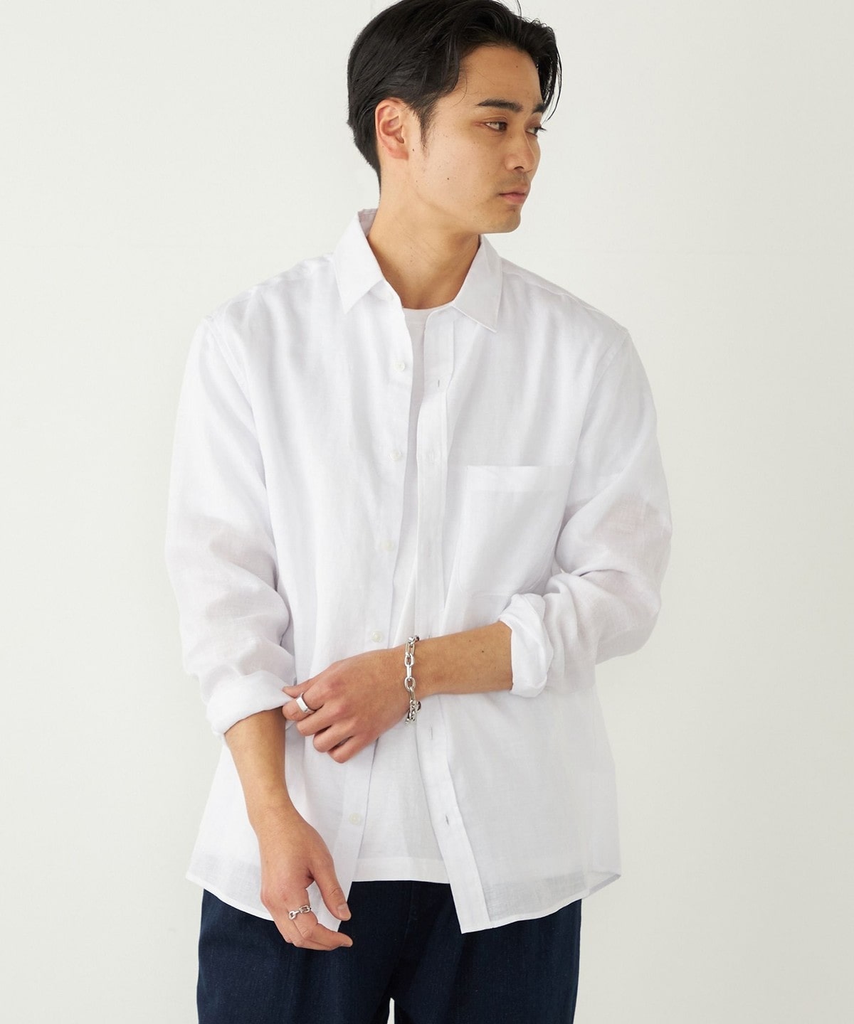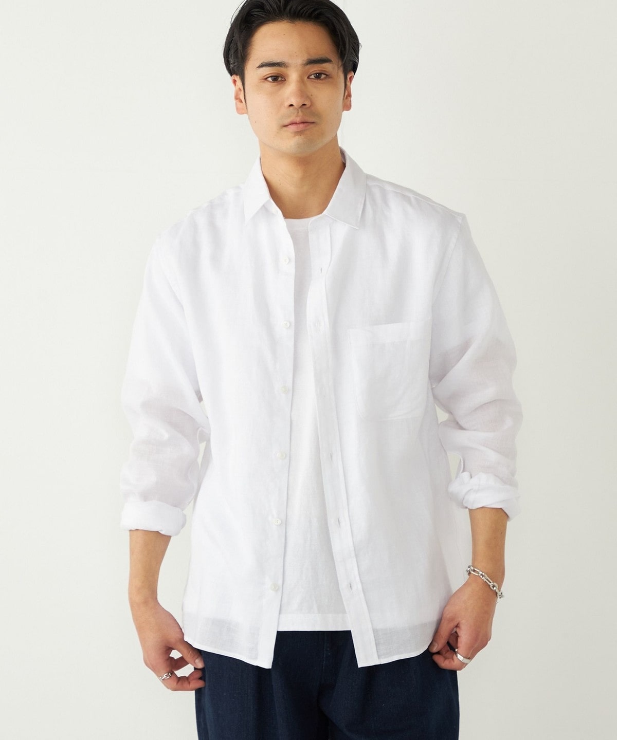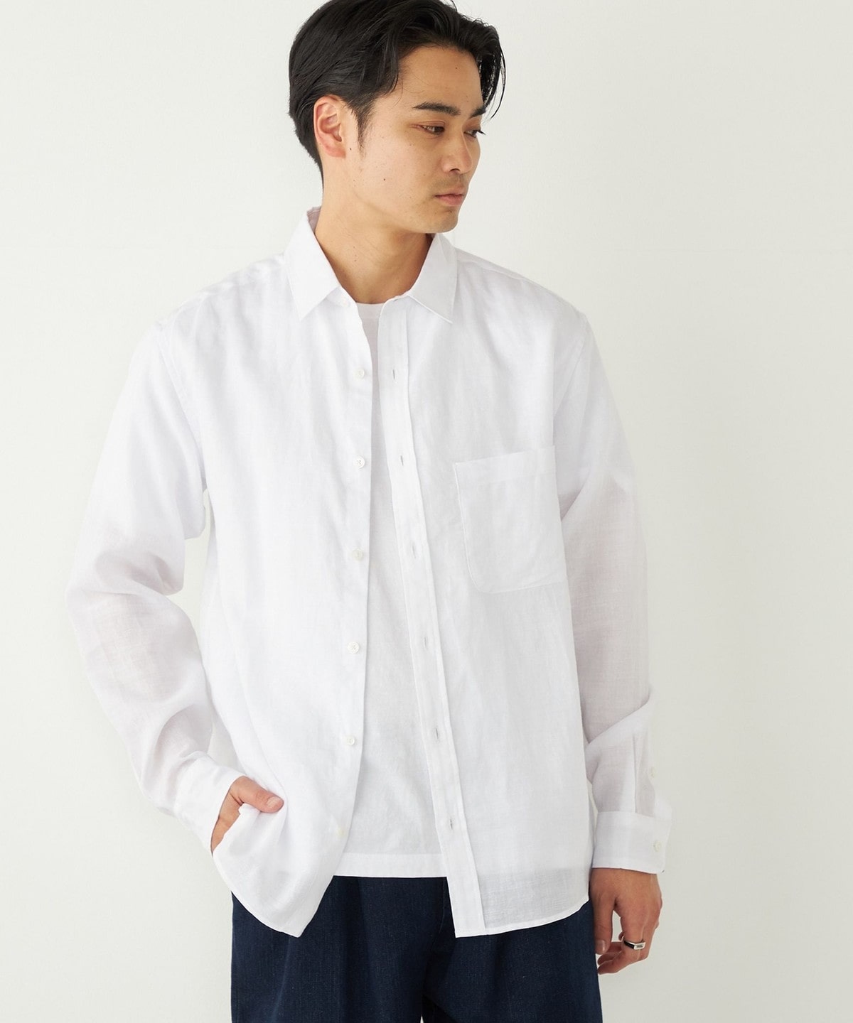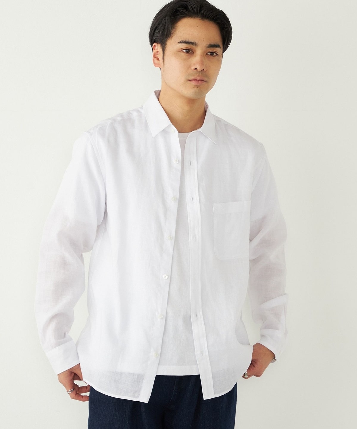 ラミー100%の素材で仕立てた、清涼感あふれるシャツアイテム。