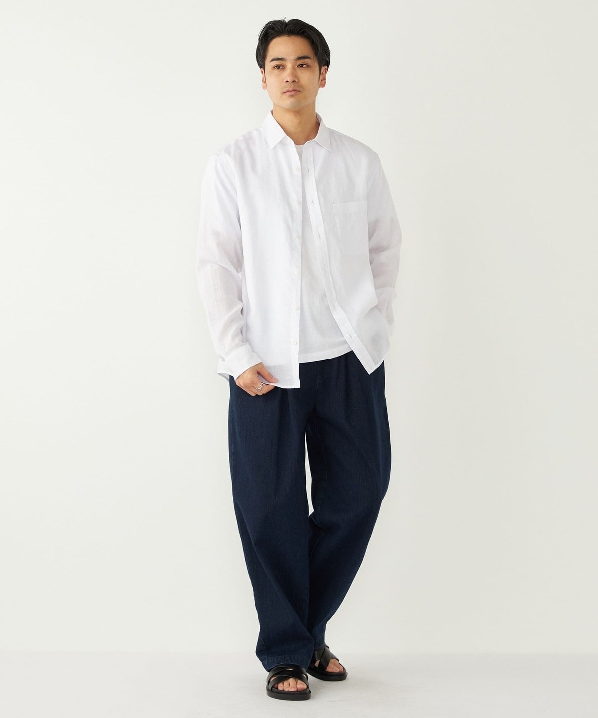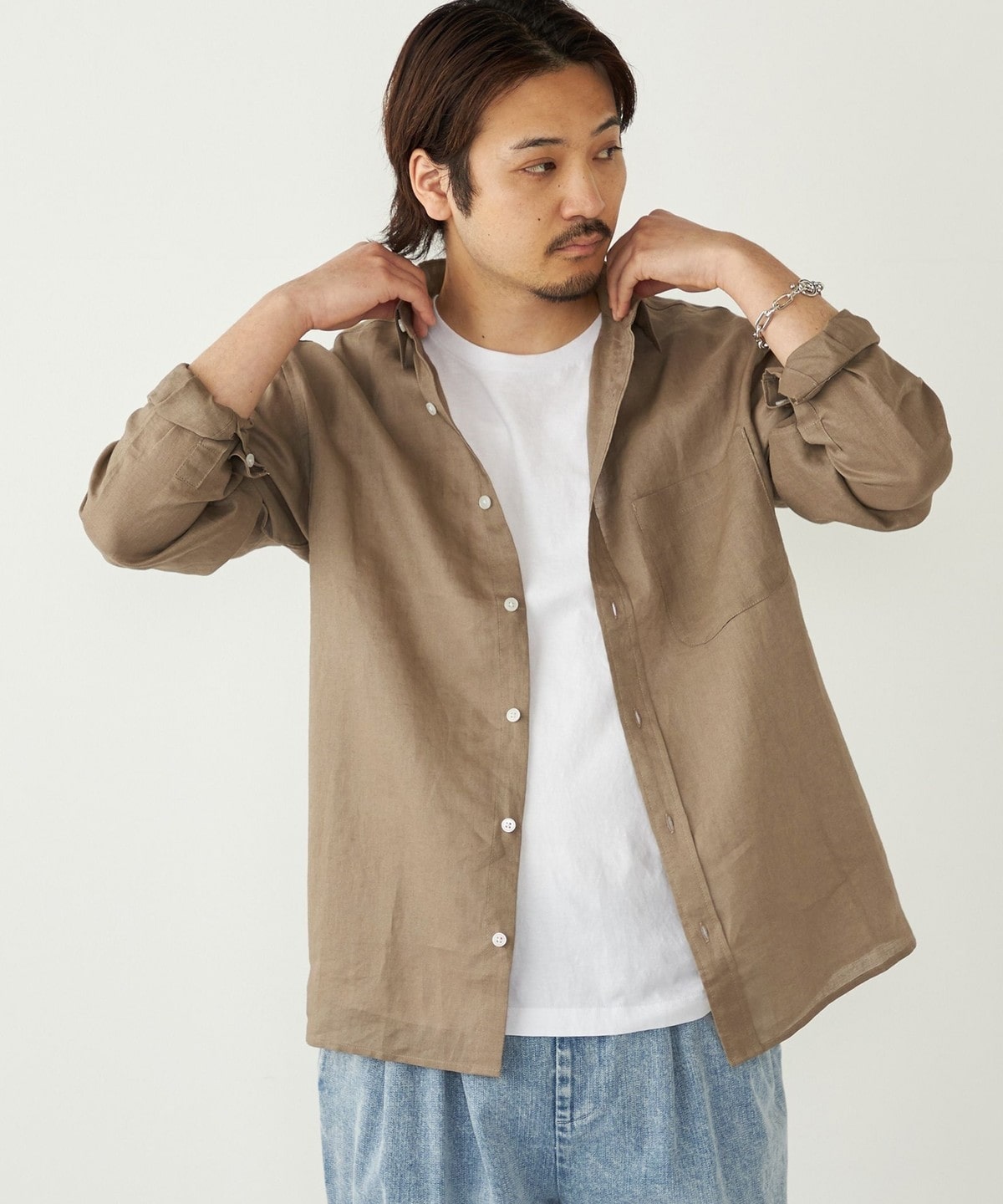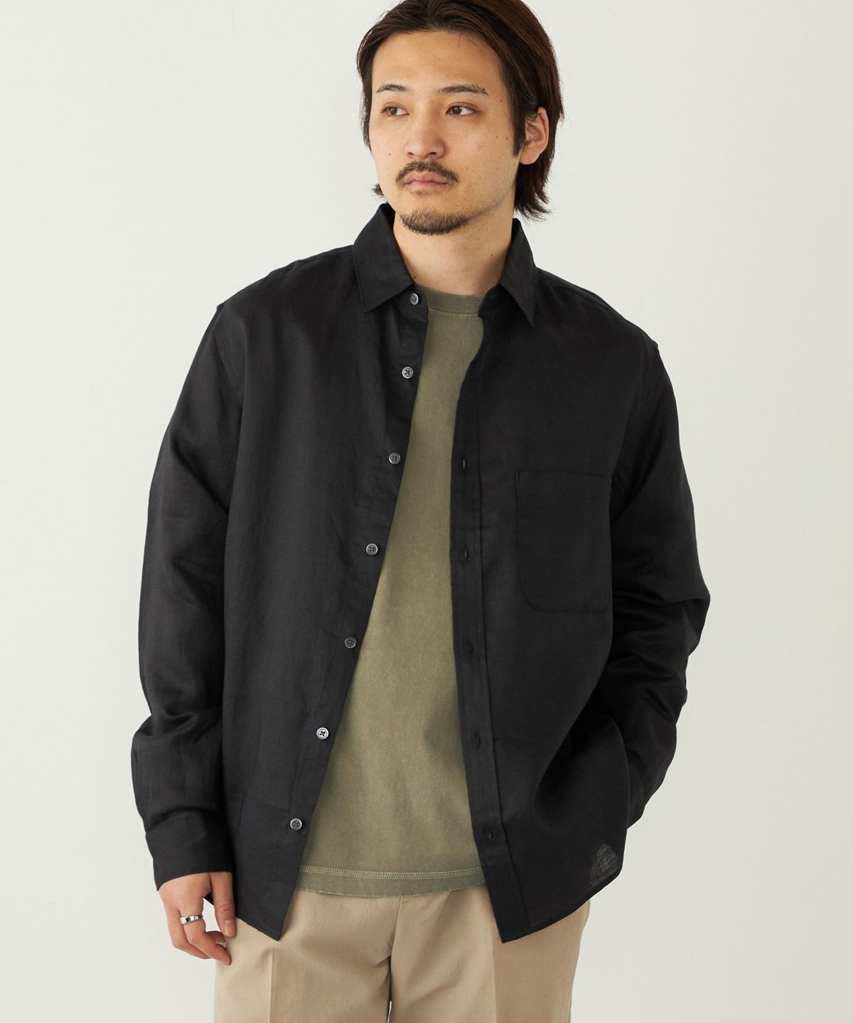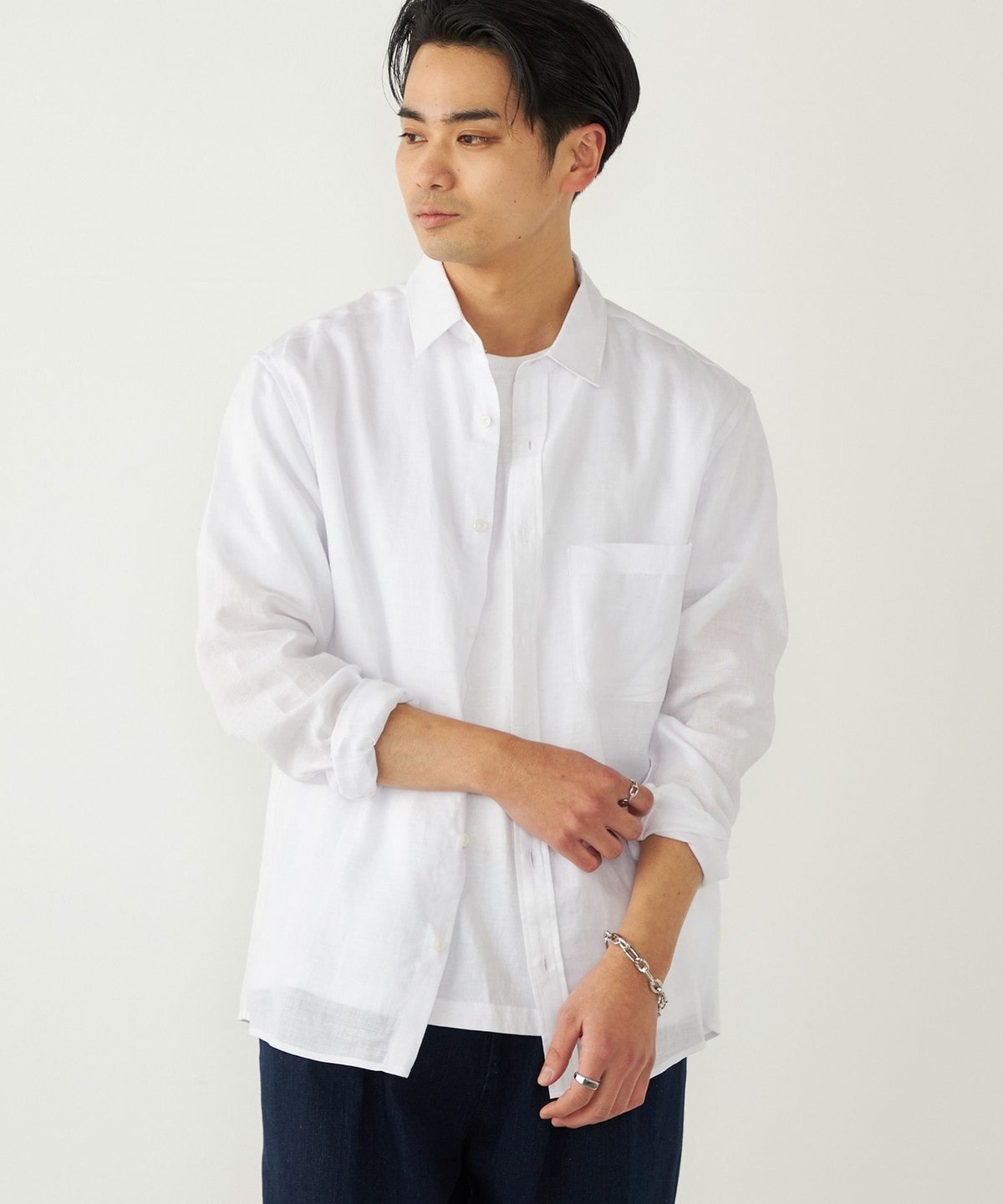 ラミー100%の素材で仕立てた、清涼感あふれるシャツアイテム。