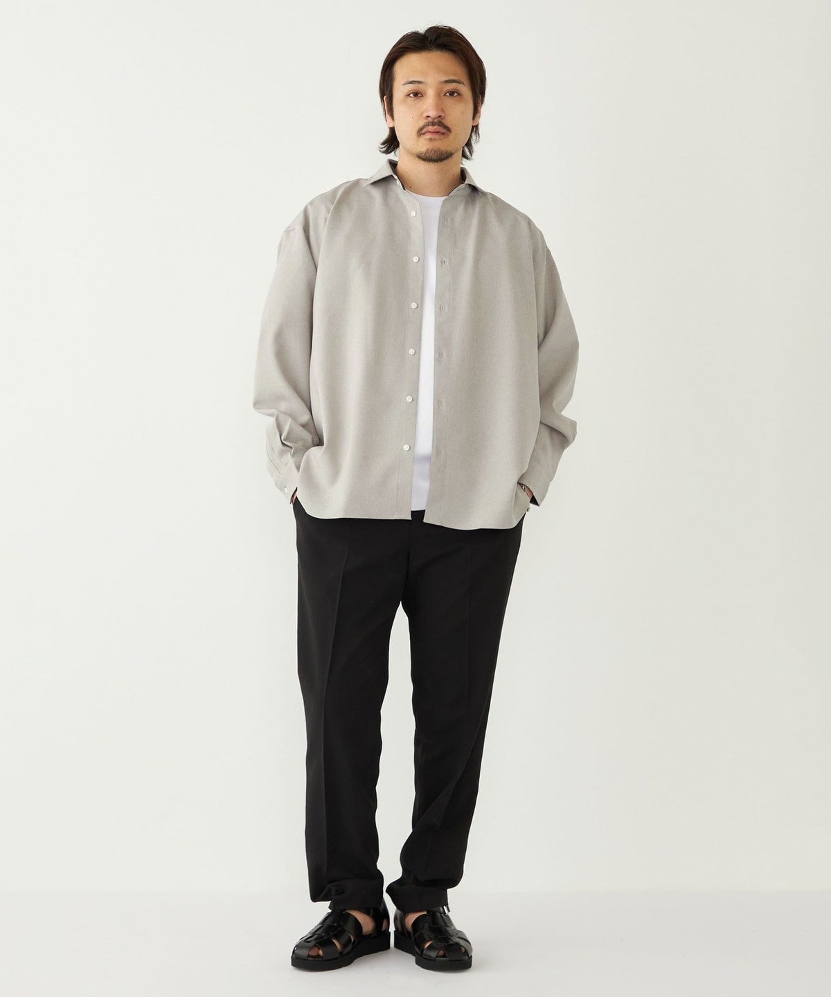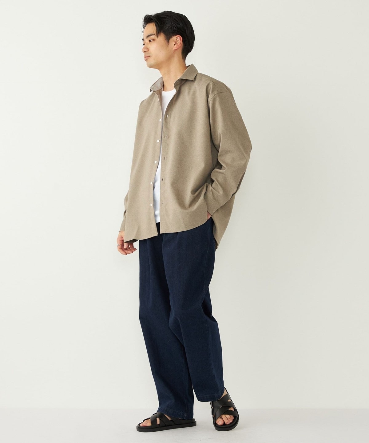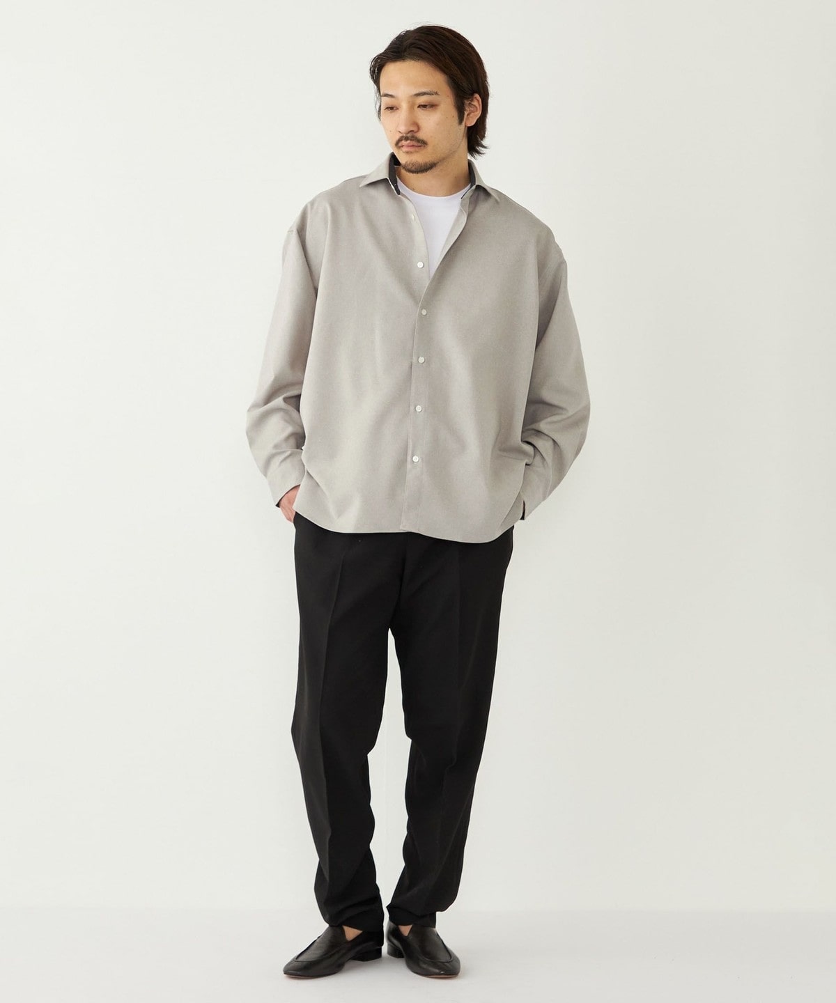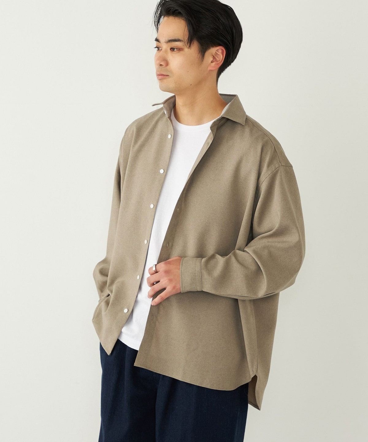 ウールのような表情が魅力のポリエステル素材を使用したシャツ。