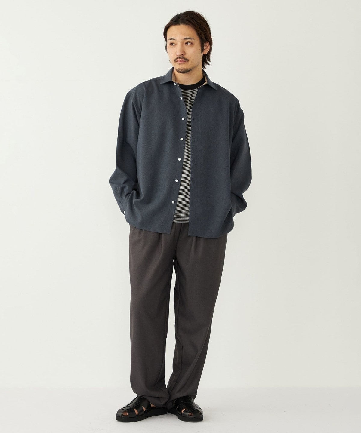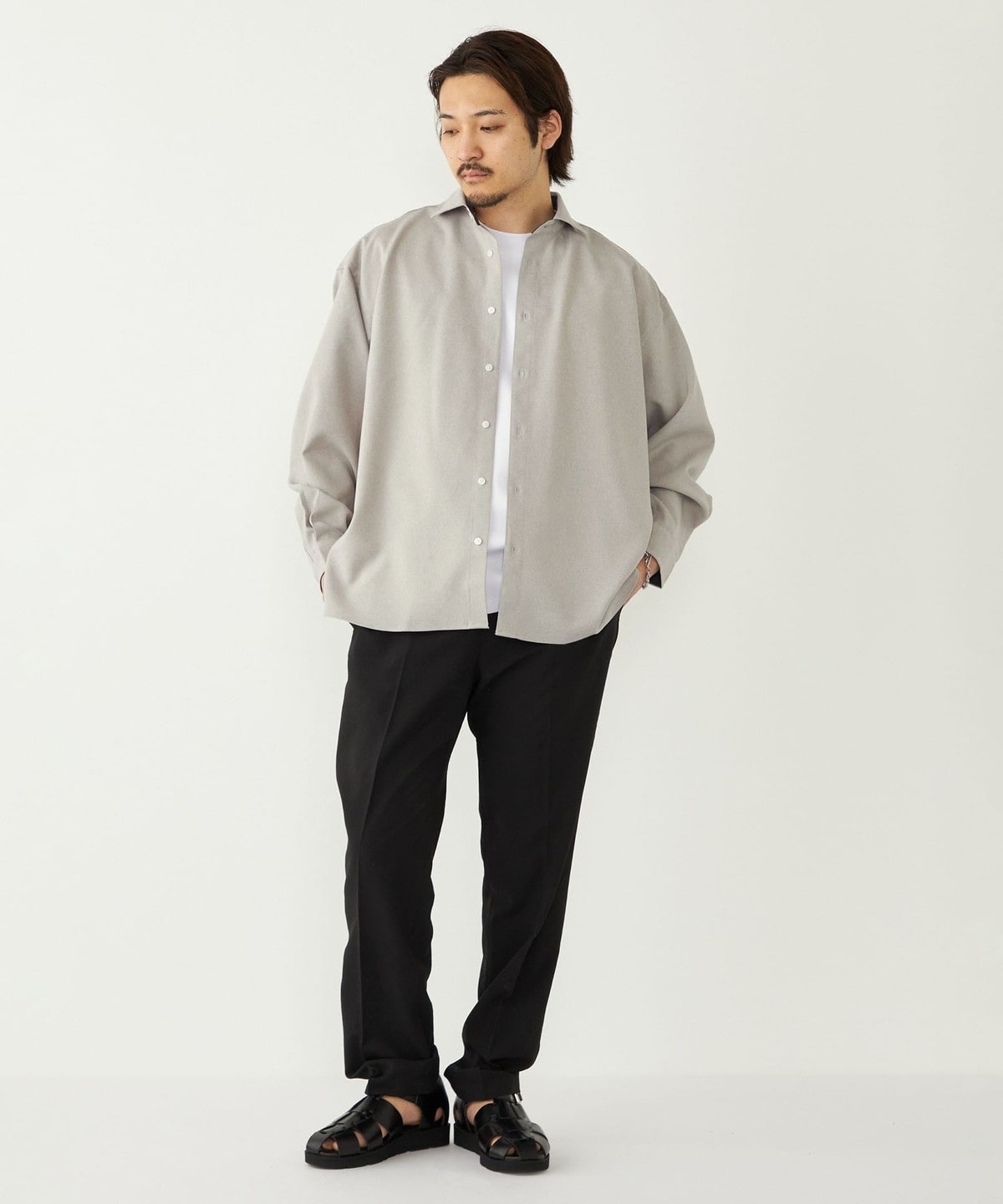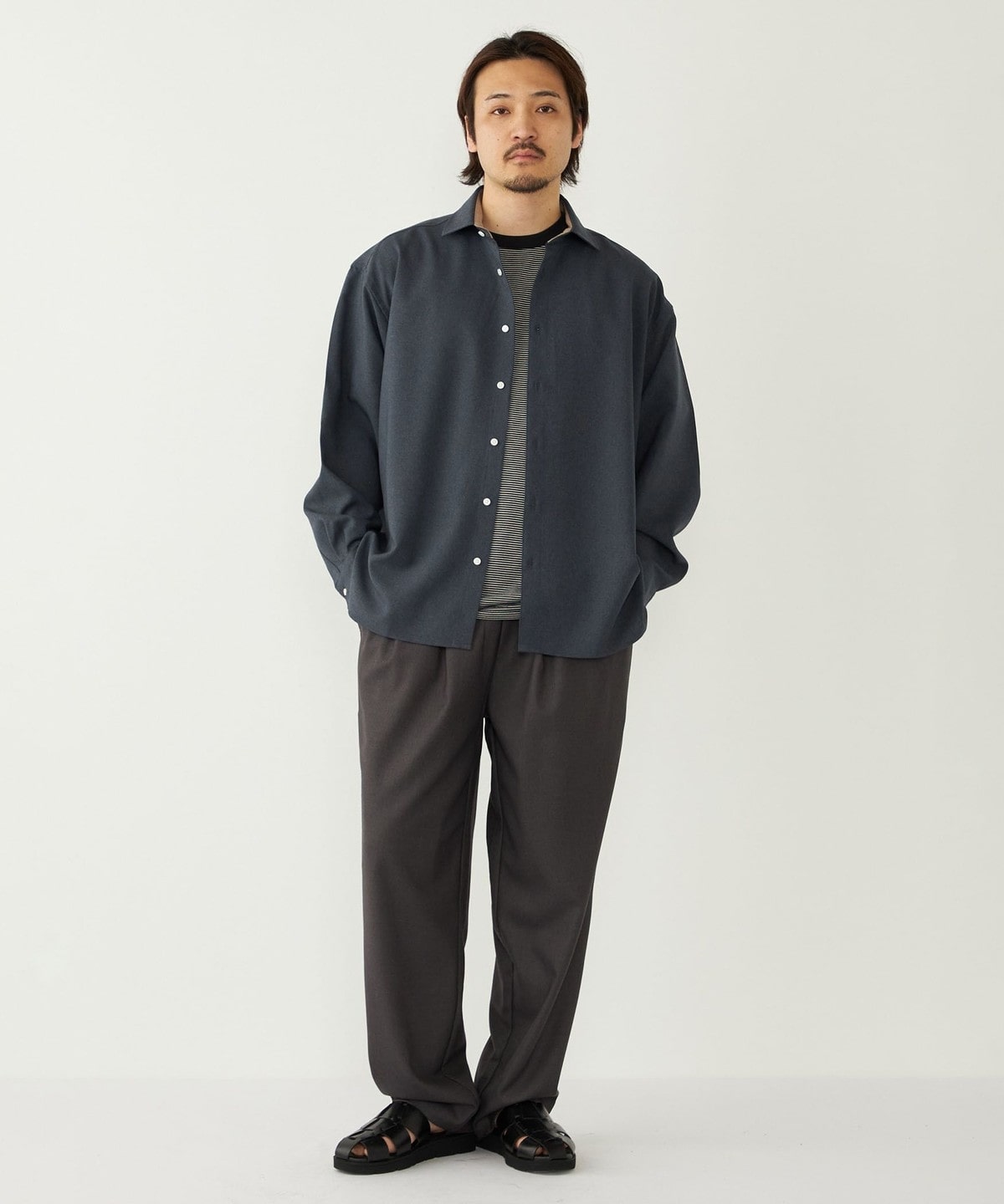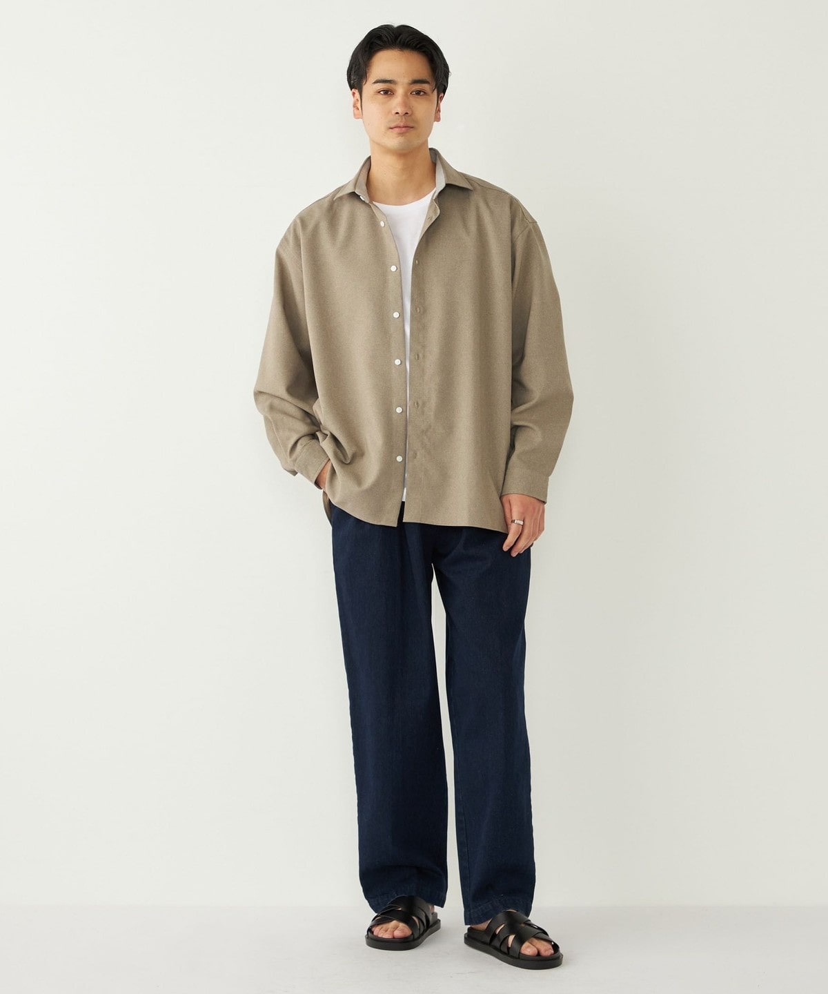 ウールのような表情が魅力のポリエステル素材を使用したシャツ。