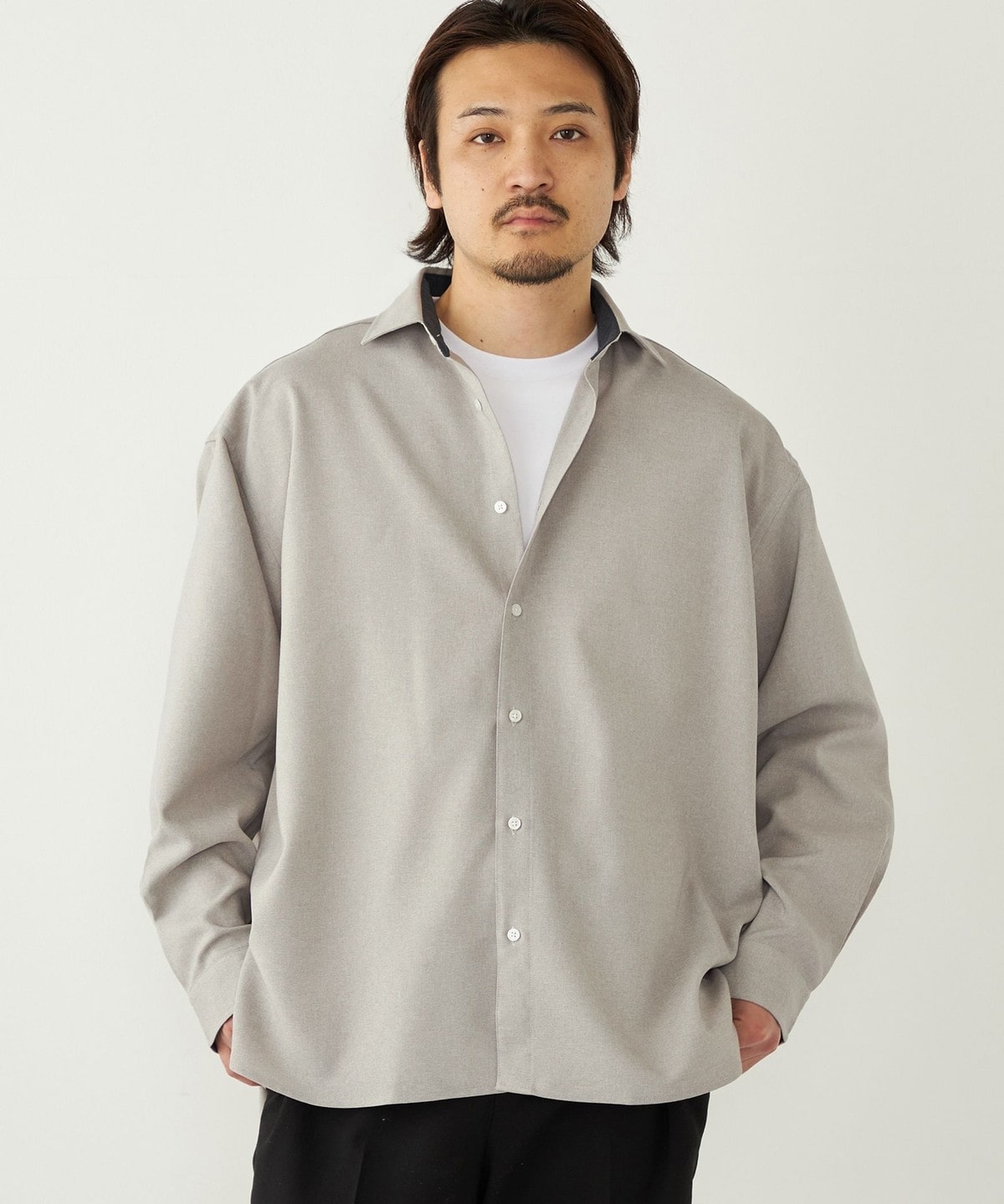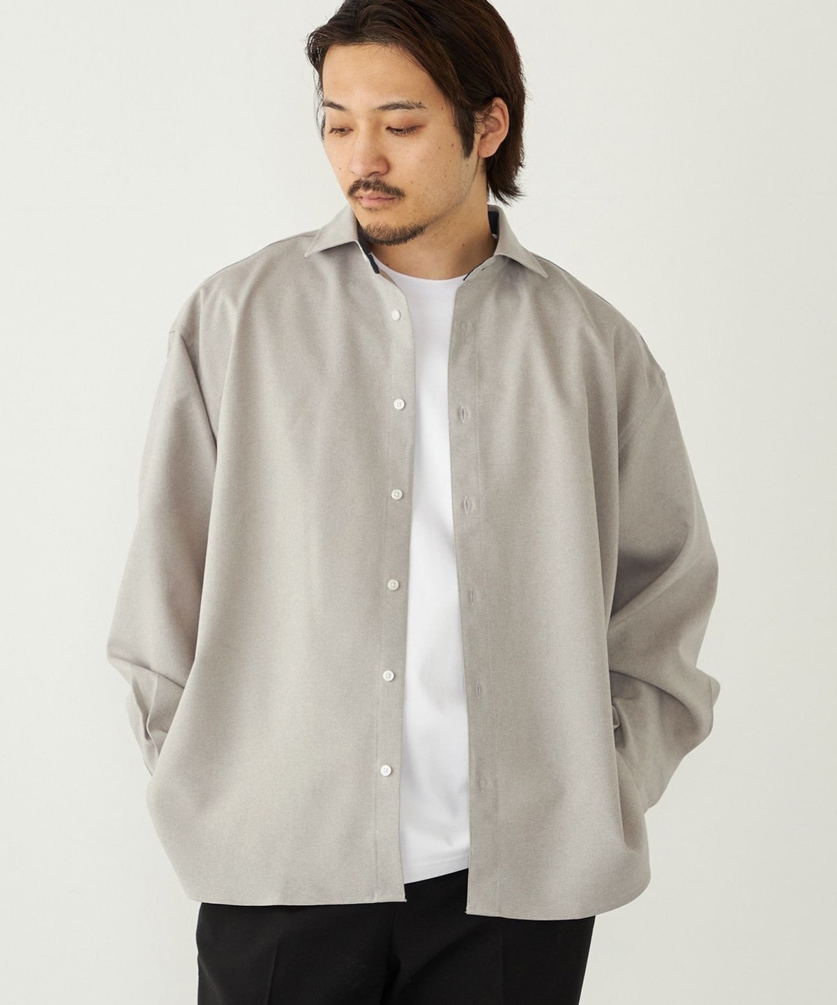 1. SHIPS Colors:〈洗濯機可能〉ウールライク リラックスフィット シャツ グレー