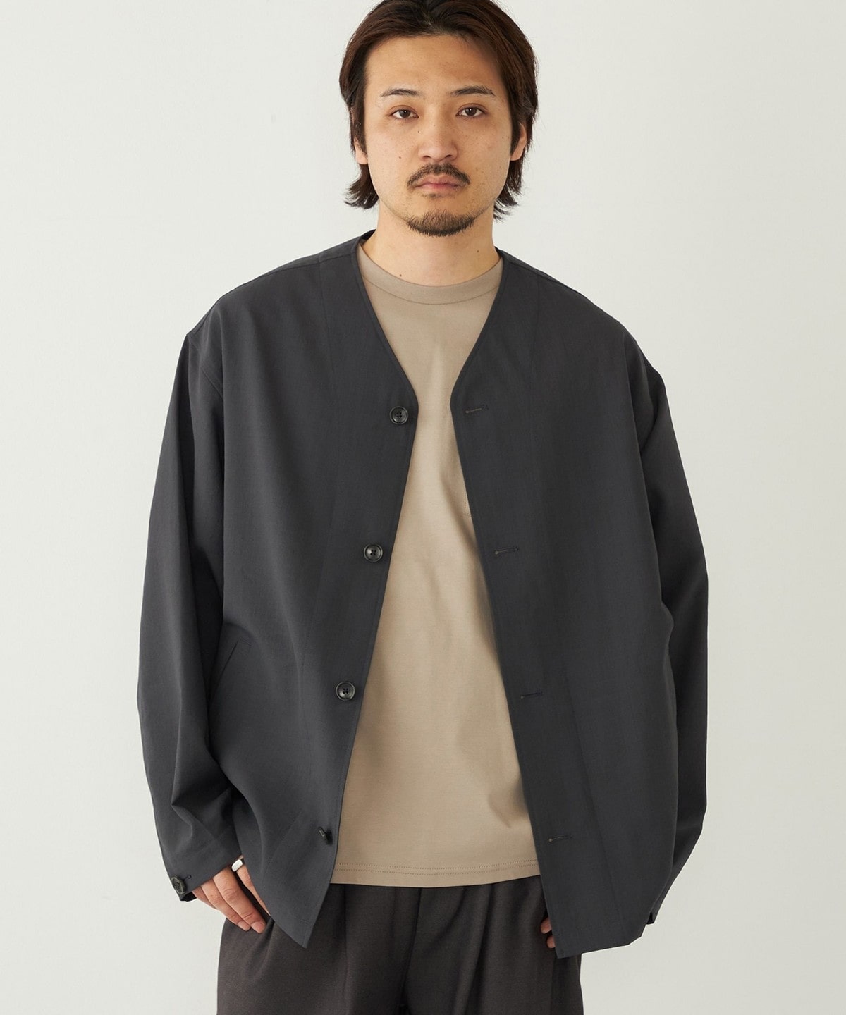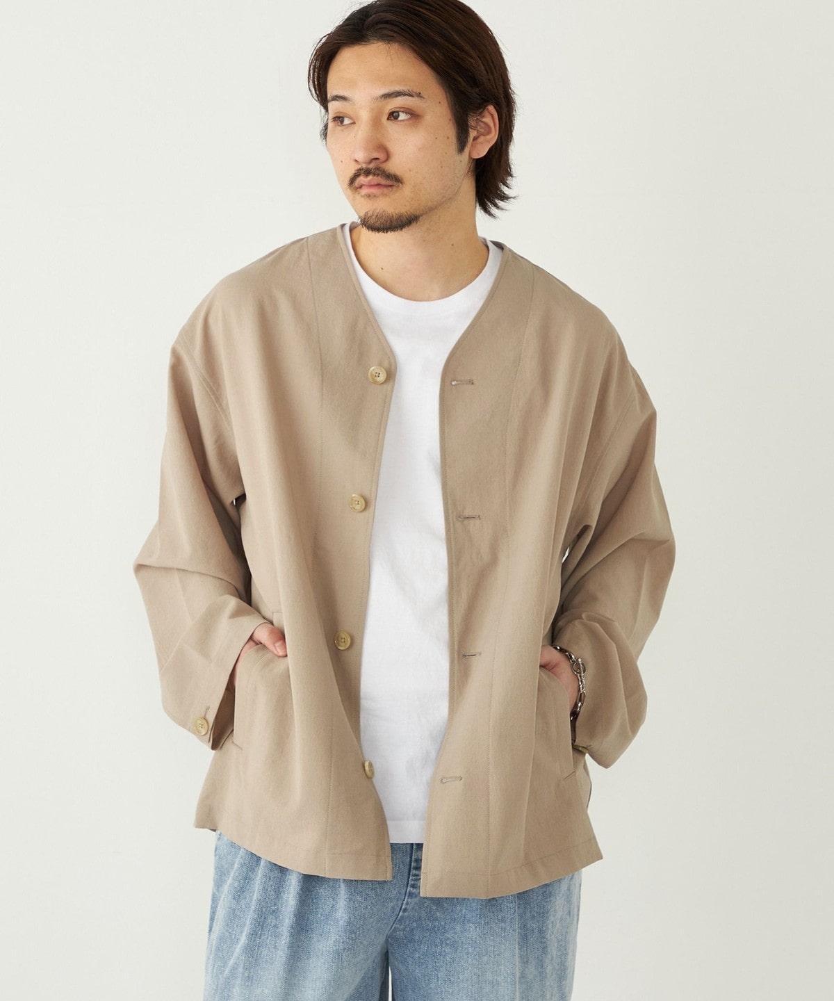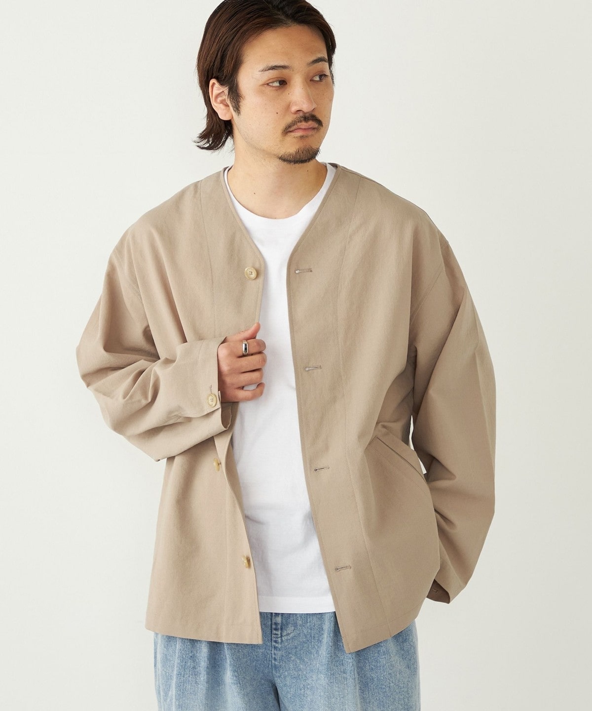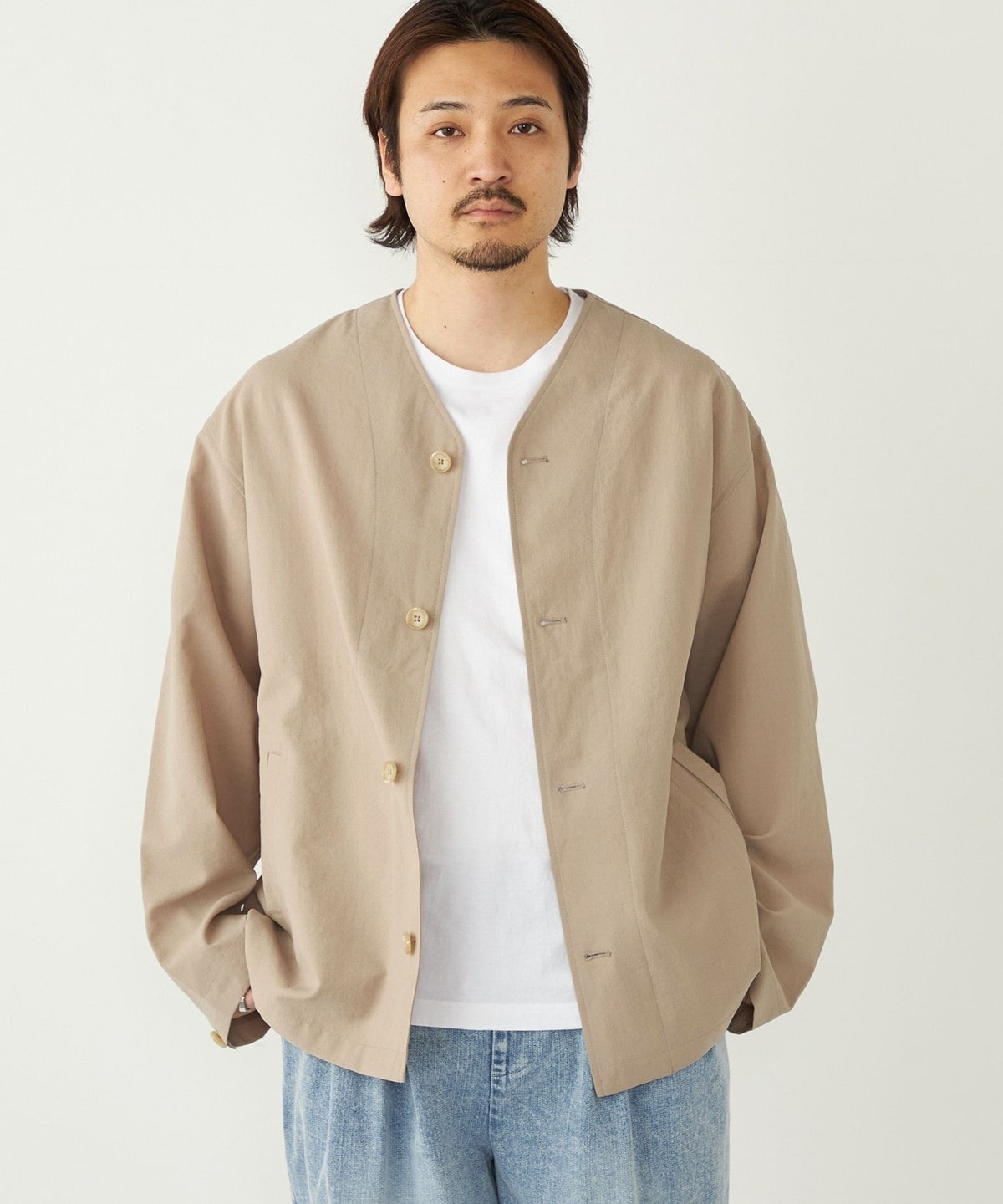 春夏のライトアウターとしてはもちろん、気温の低い日はパーカーなどを合わせたコーディネートもおすすめです。