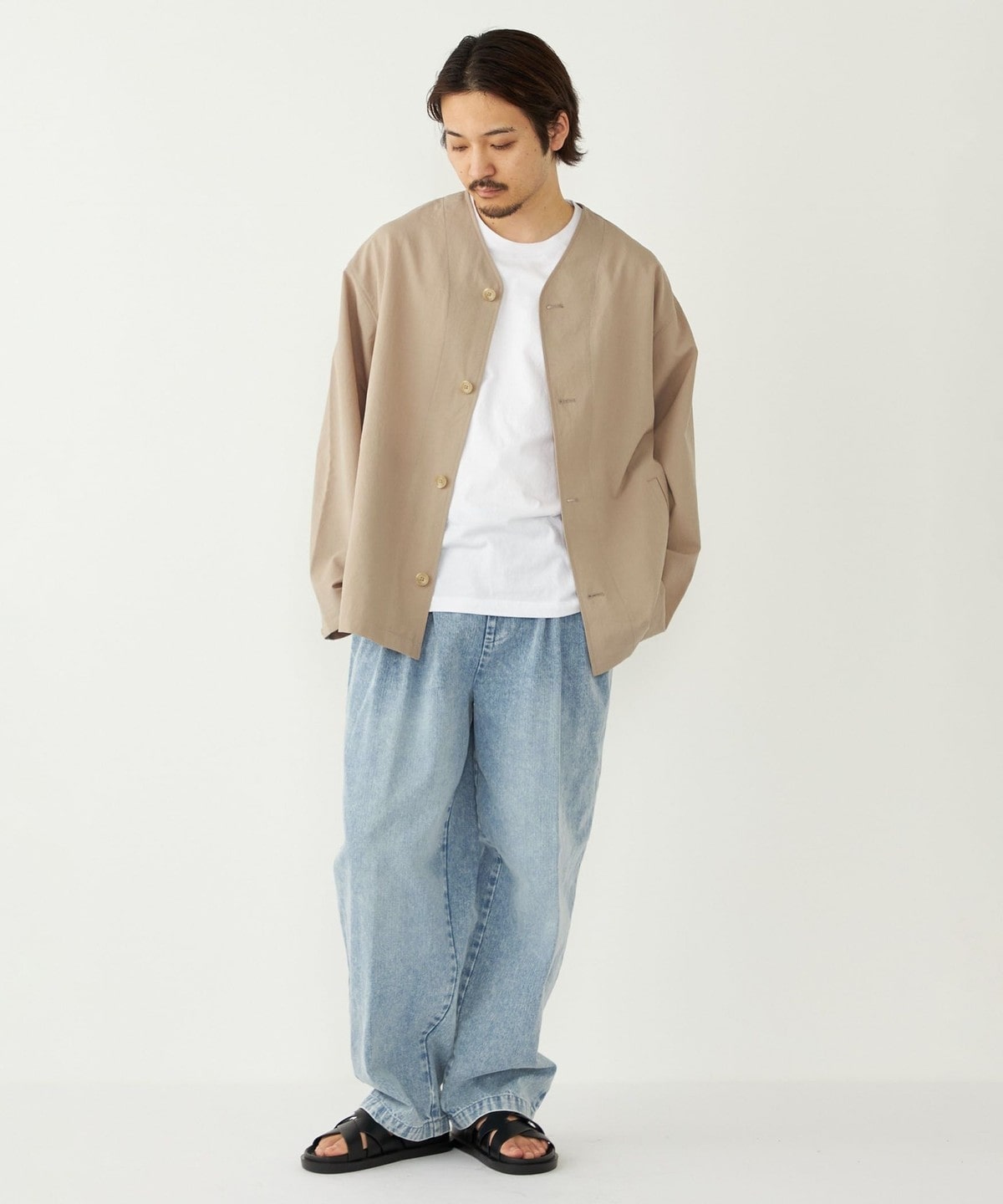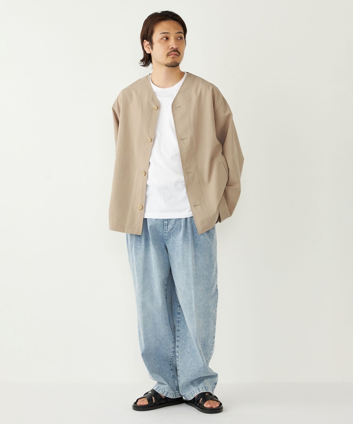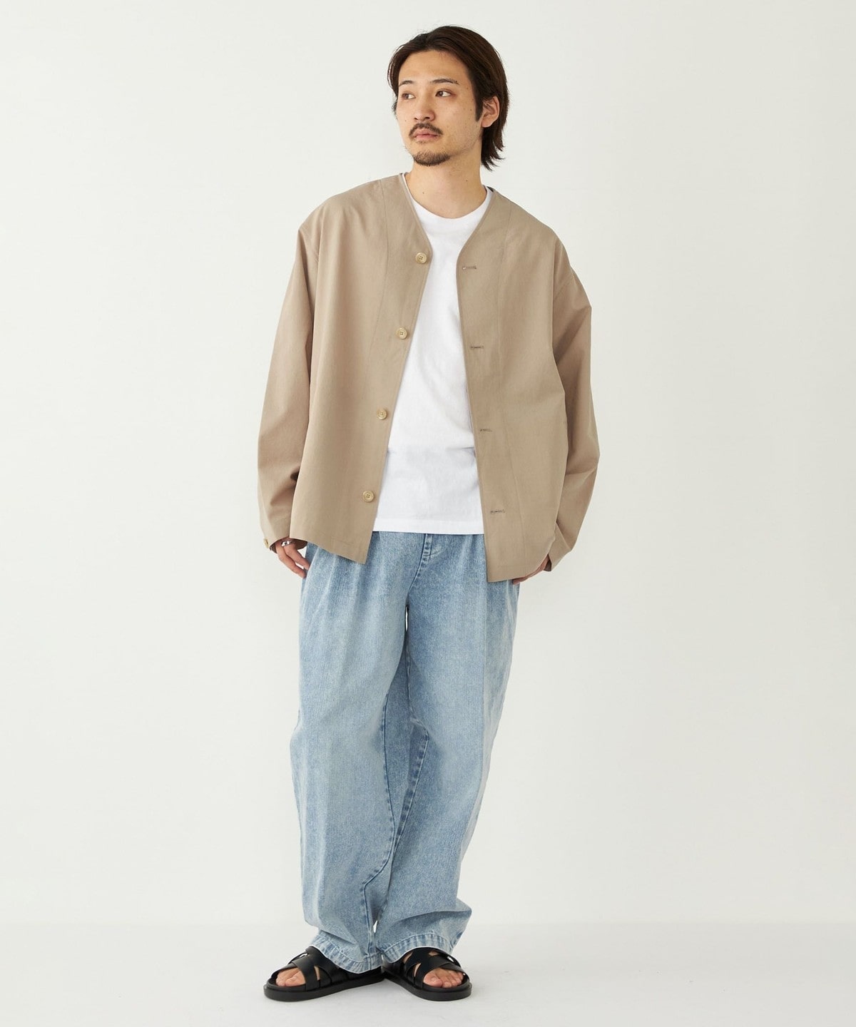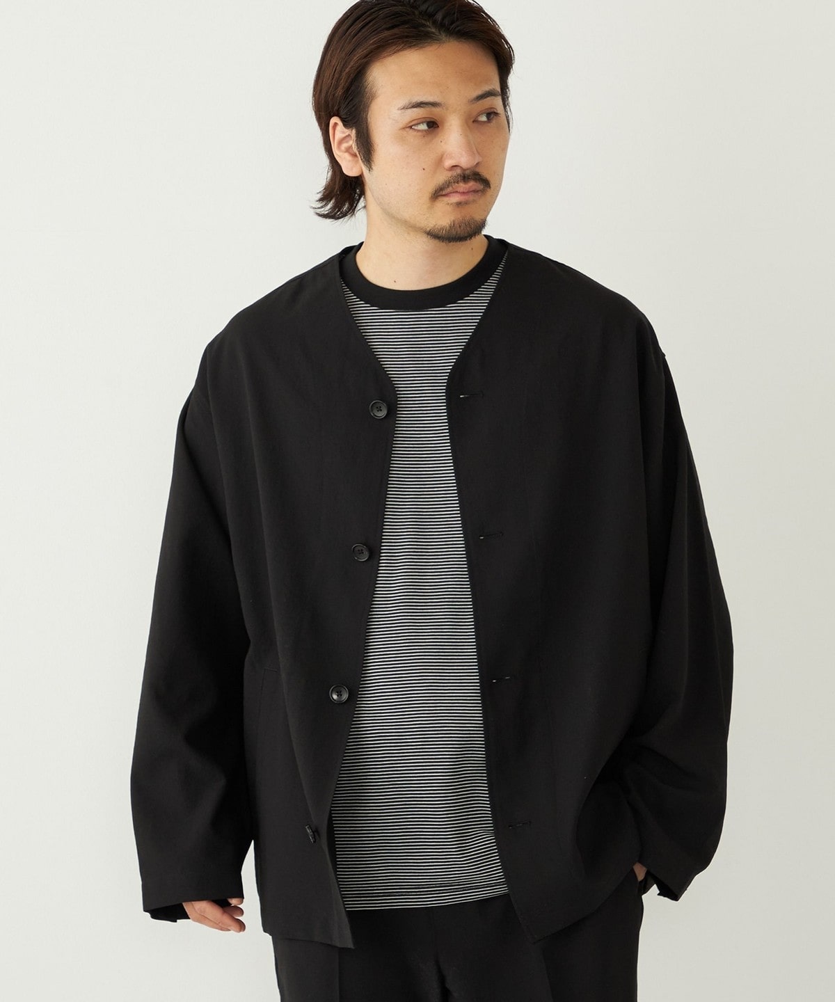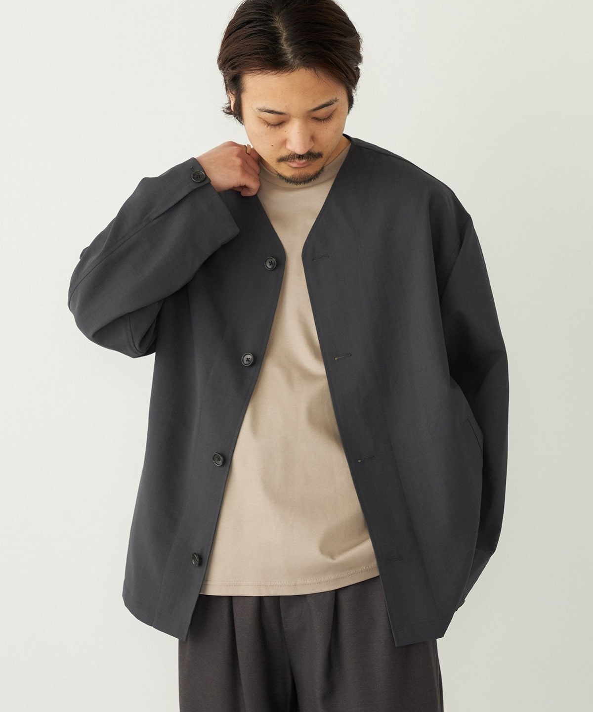 春夏のライトアウターとしてはもちろん、気温の低い日はパーカーなどを合わせたコーディネートもおすすめです。
