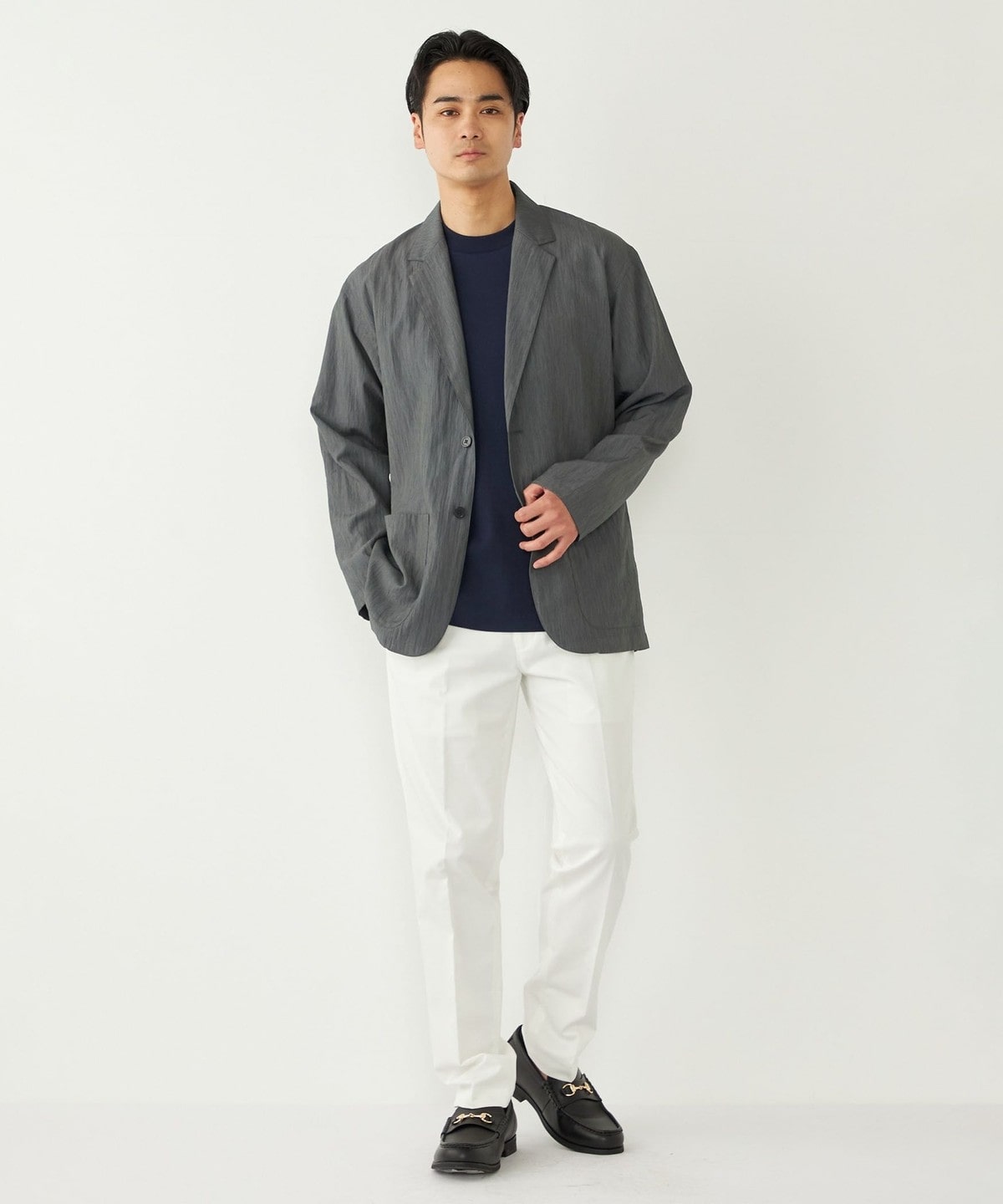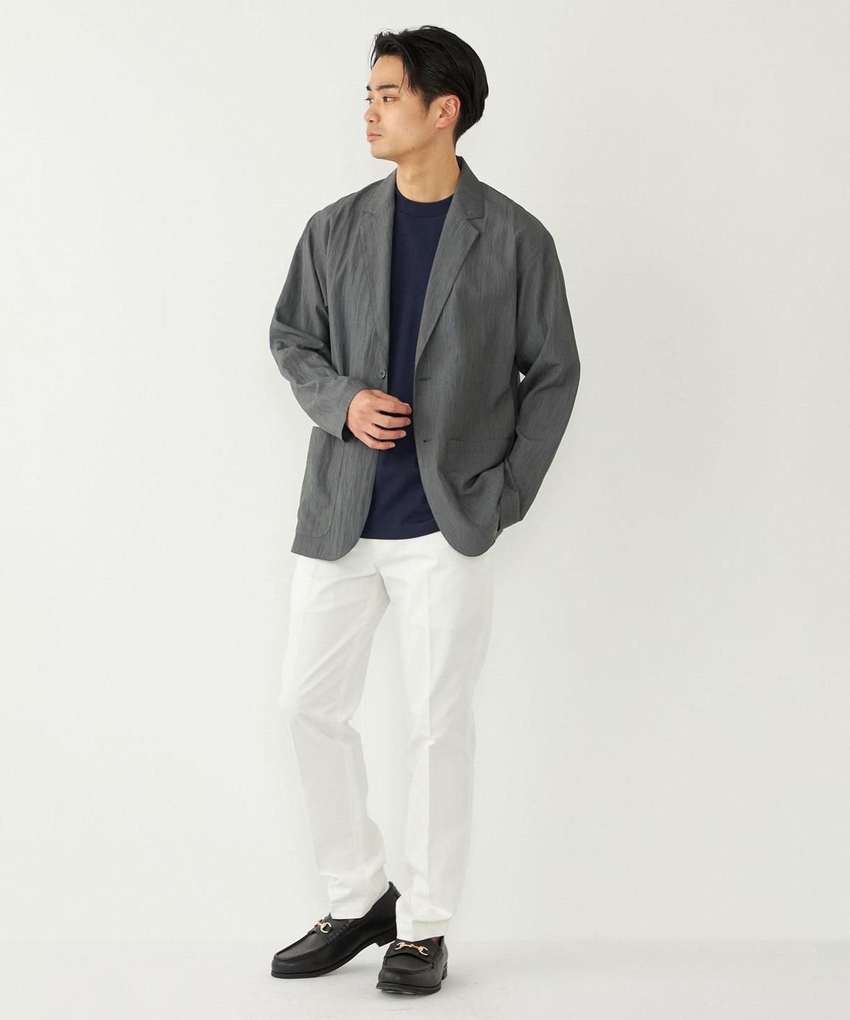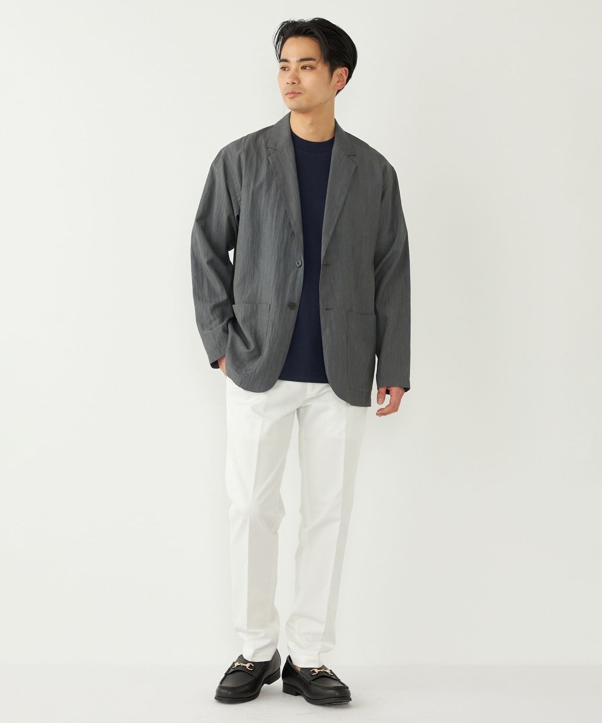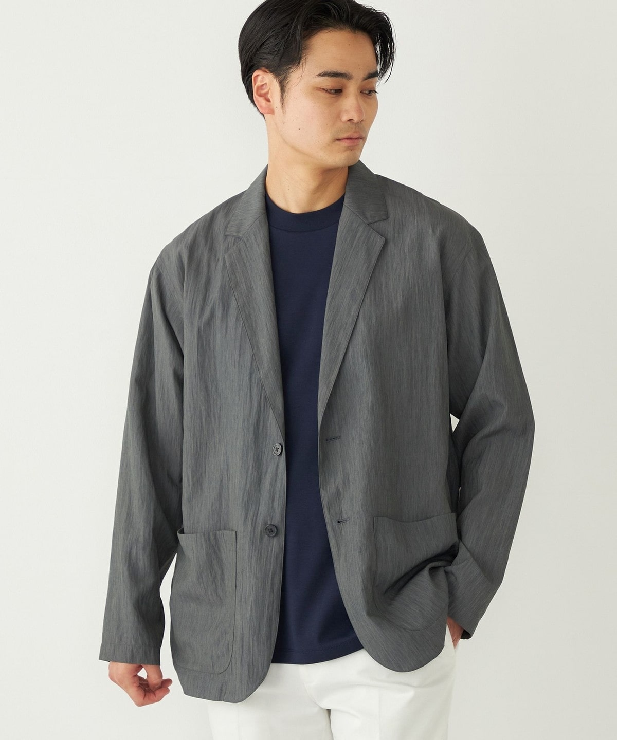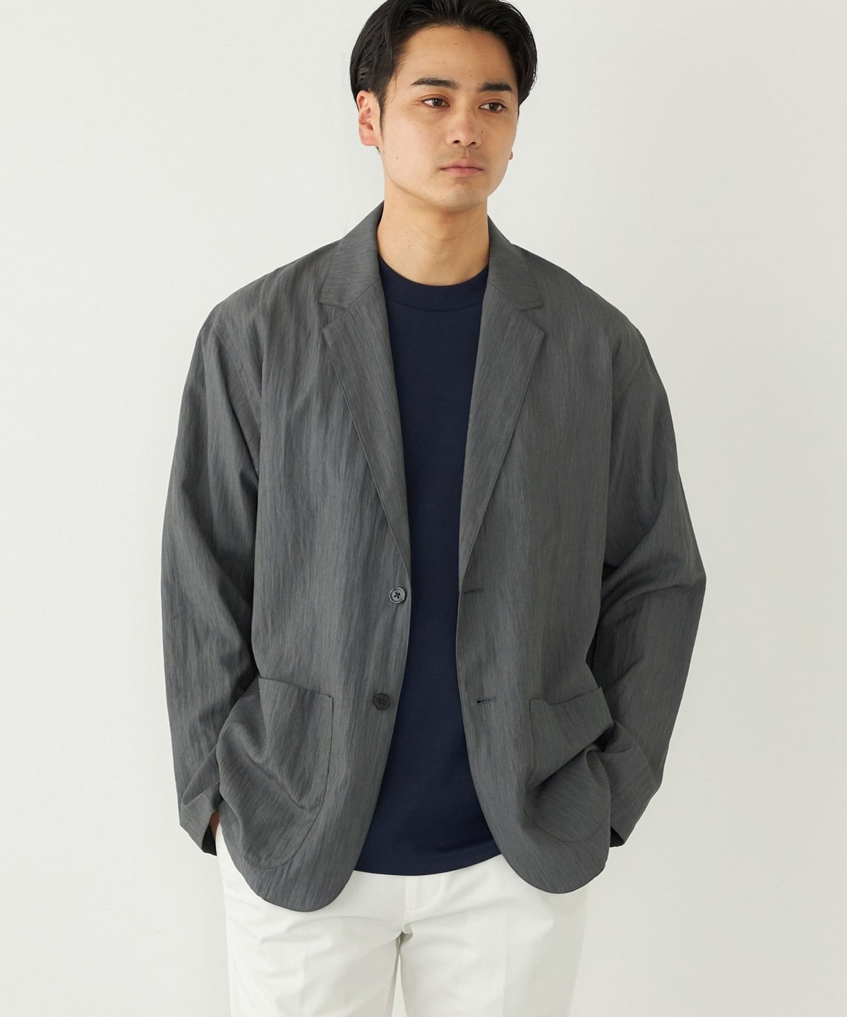 程よいカジュアル感で、オンオフ問わず春夏のジャケットスタイルに重宝する1着です。