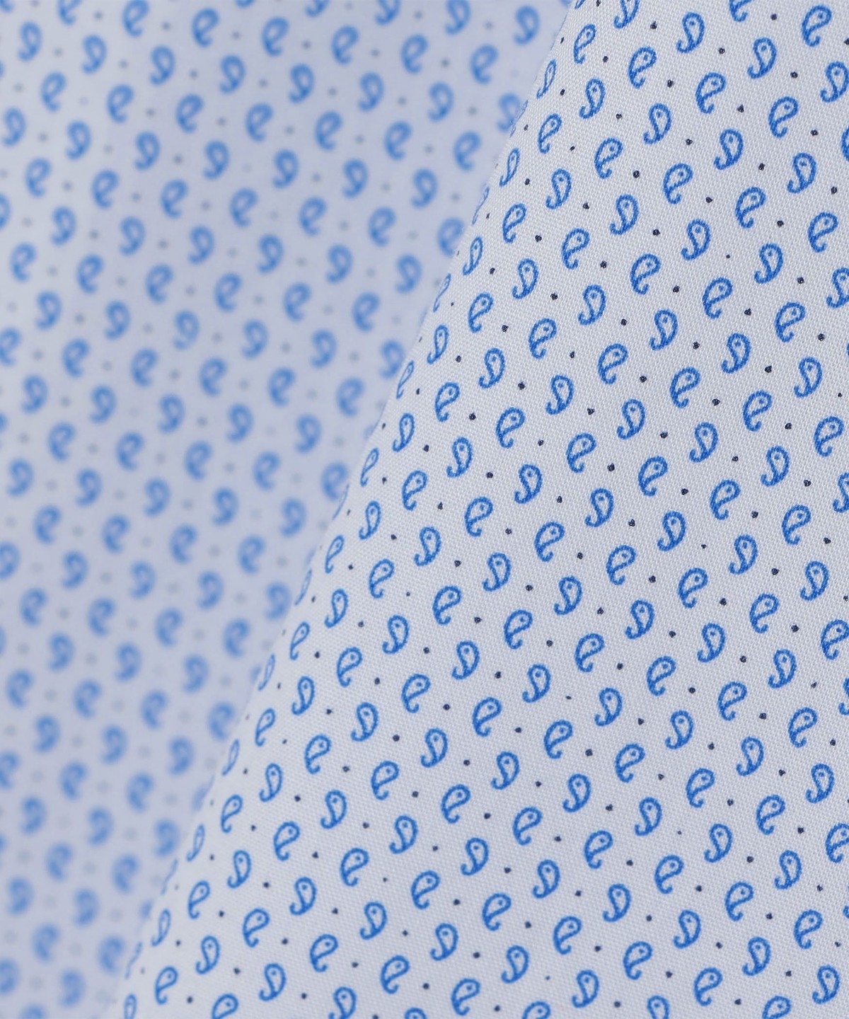 小ぶりな柄をプリントしたワイドカラーシャツ。