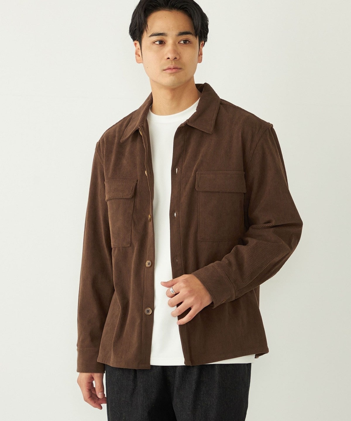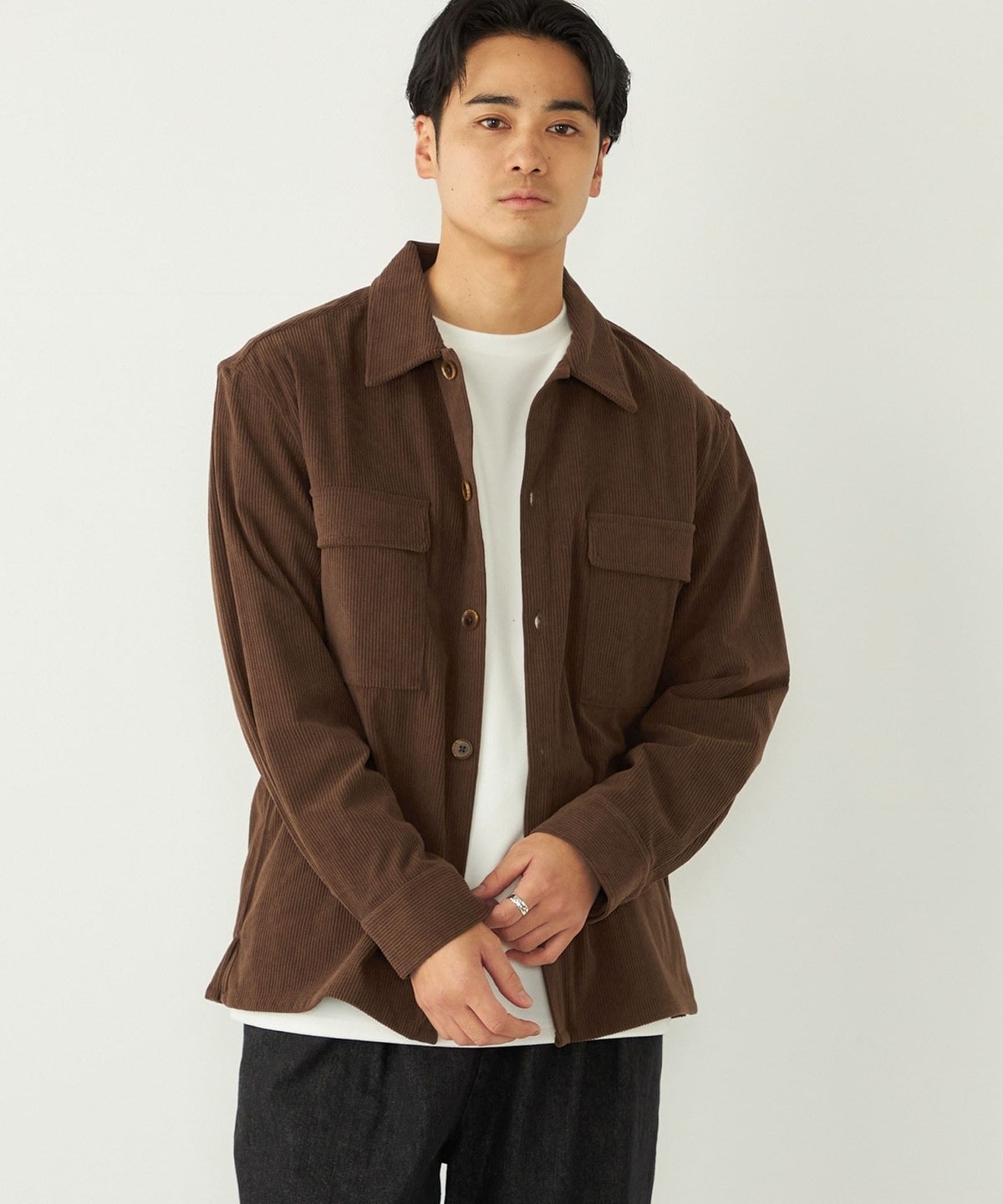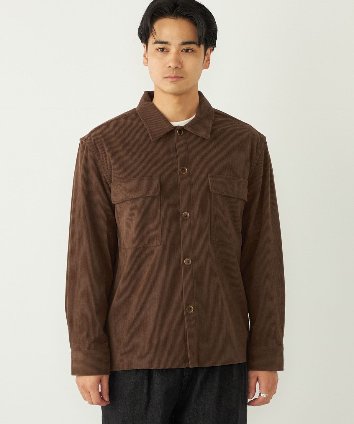 3. SHIPS Colors:〈洗濯機可能〉コーデュロイ CPO シャツジャケット ブラウン