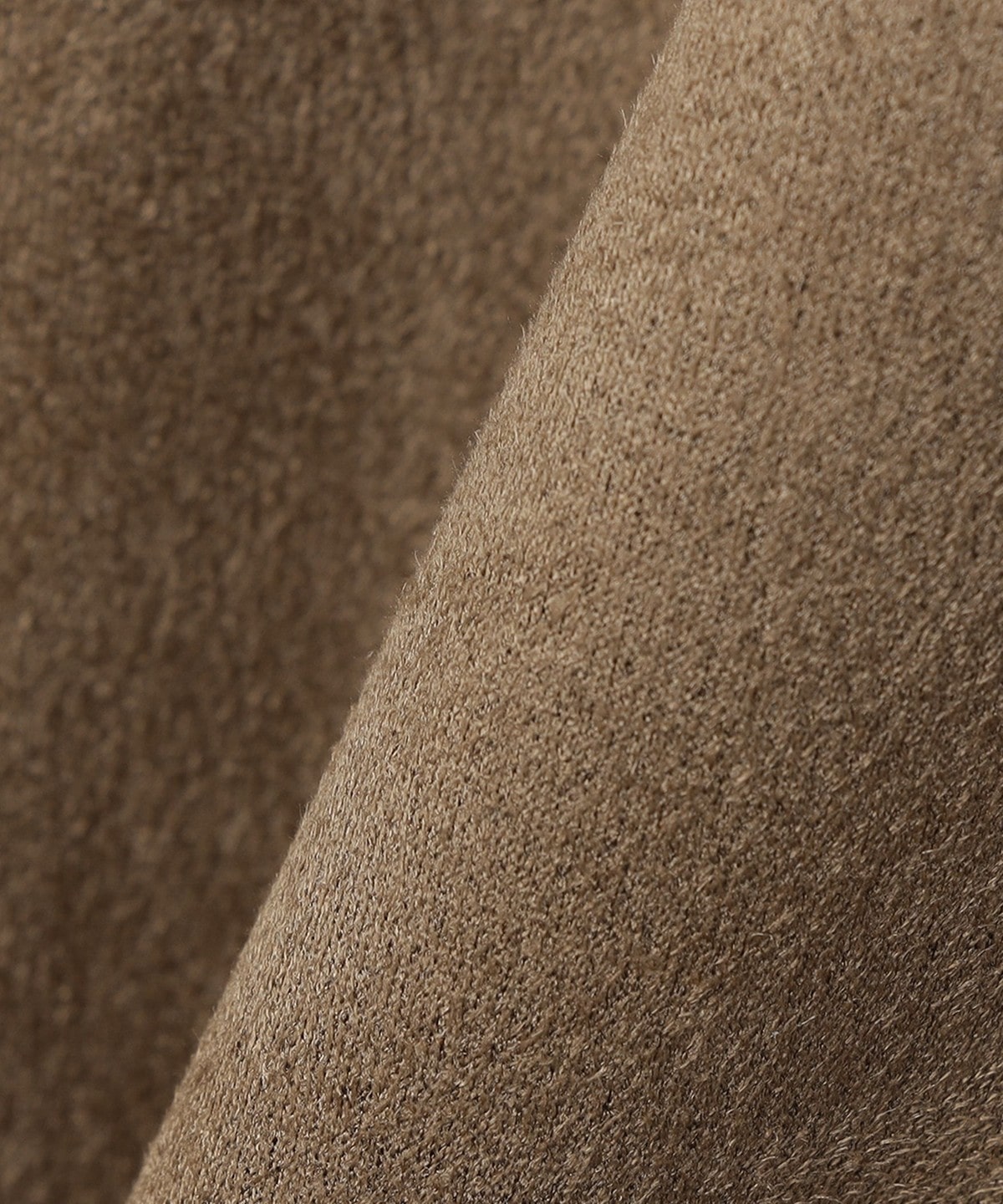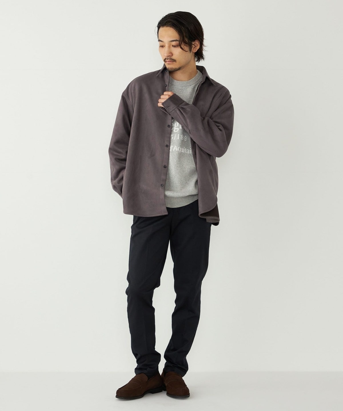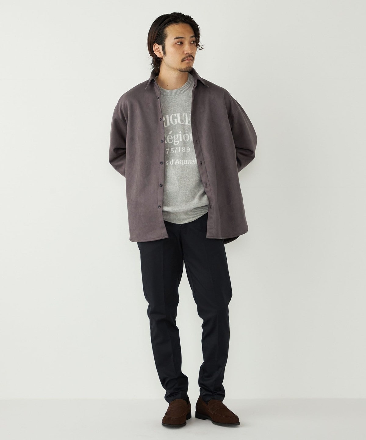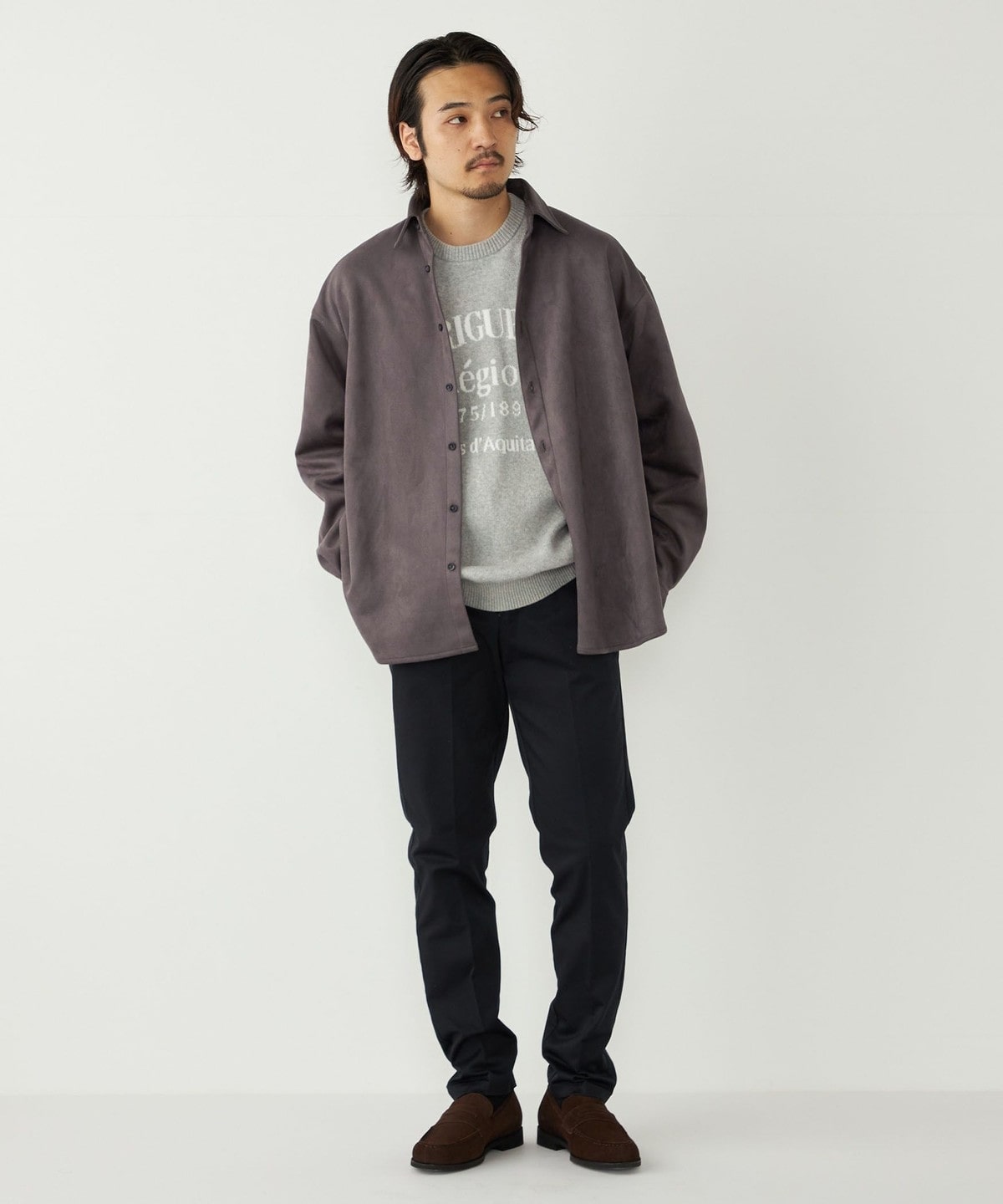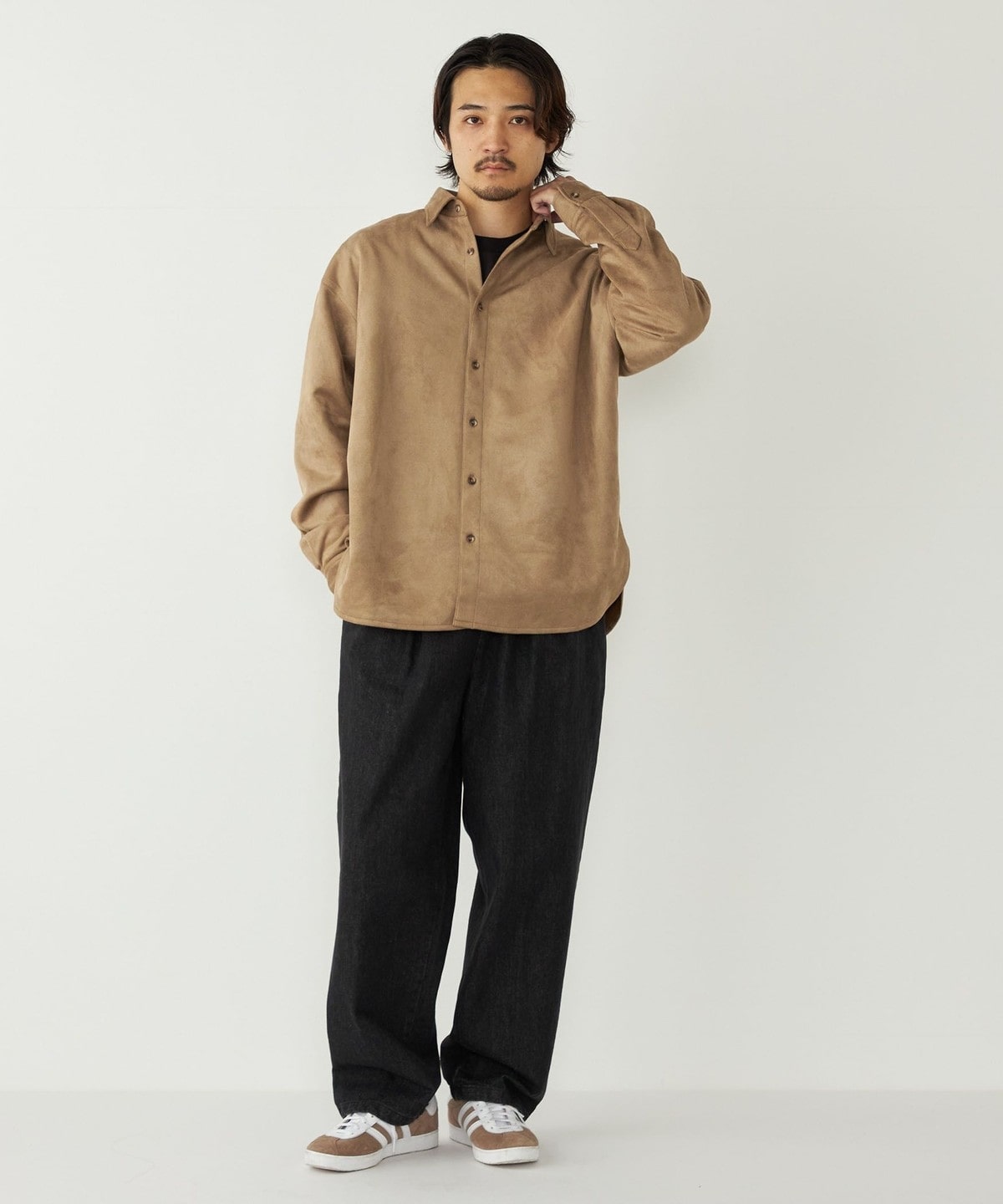 スエード調の生地感と、適度なルーズシルエットで、羽織るだけでコーディネートをこなれた雰囲気に仕上げてくれる1枚。