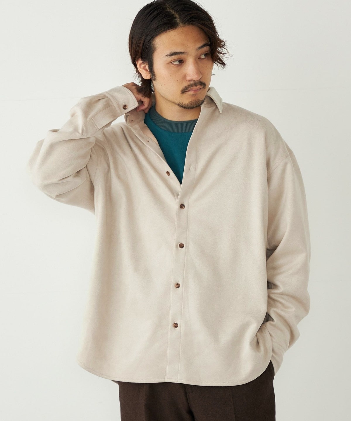 2. SHIPS Colors:〈洗濯機可能〉ポリエステル フェイクスエード ルーズ シャツ ベージュ