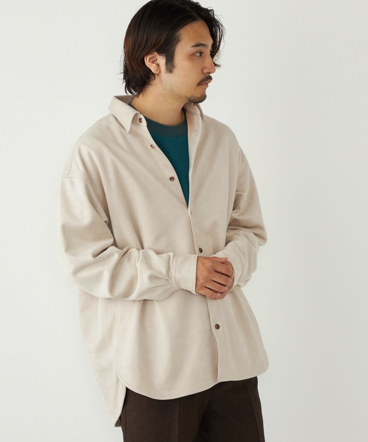 1. SHIPS Colors:〈洗濯機可能〉ポリエステル フェイクスエード ルーズ シャツ ナチュラル
