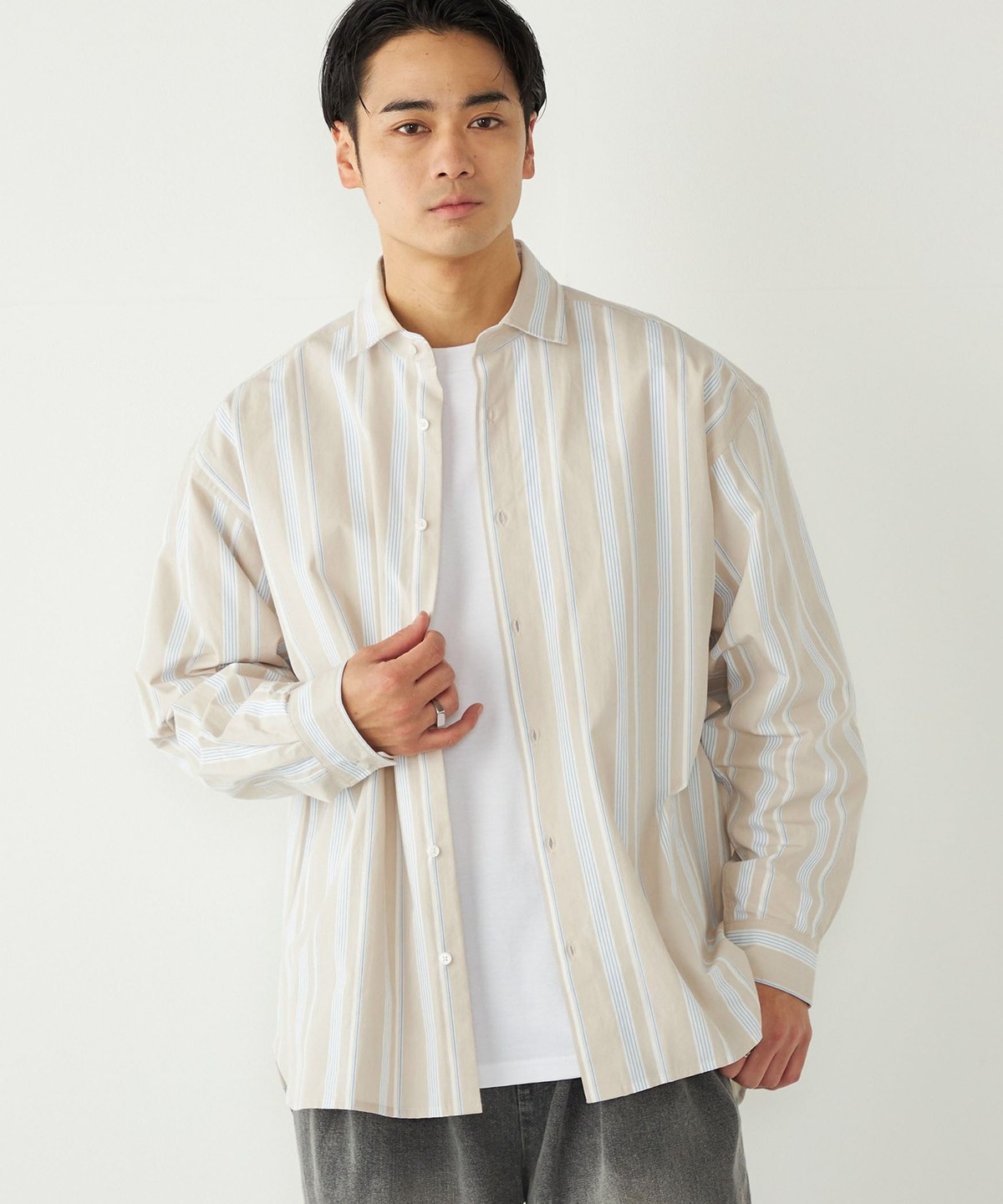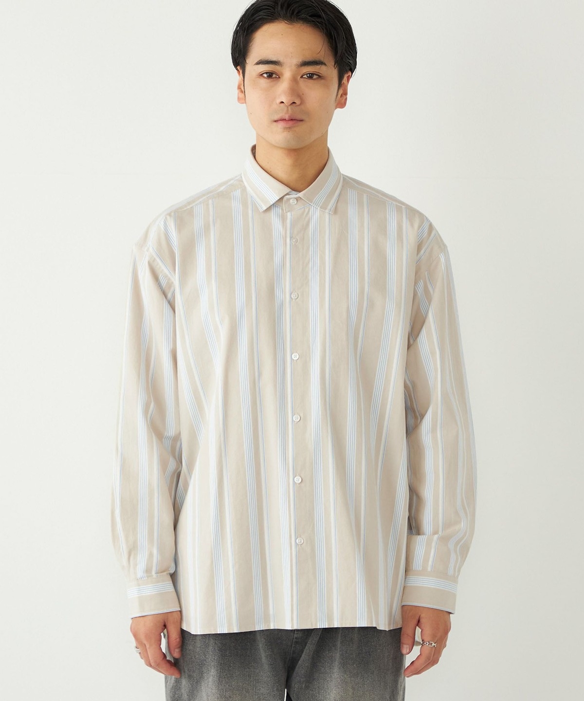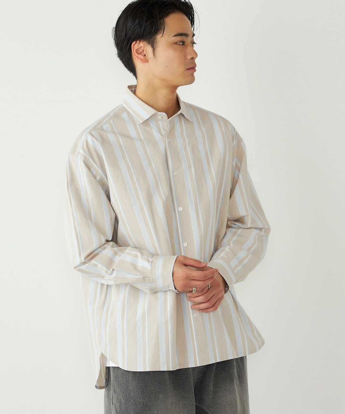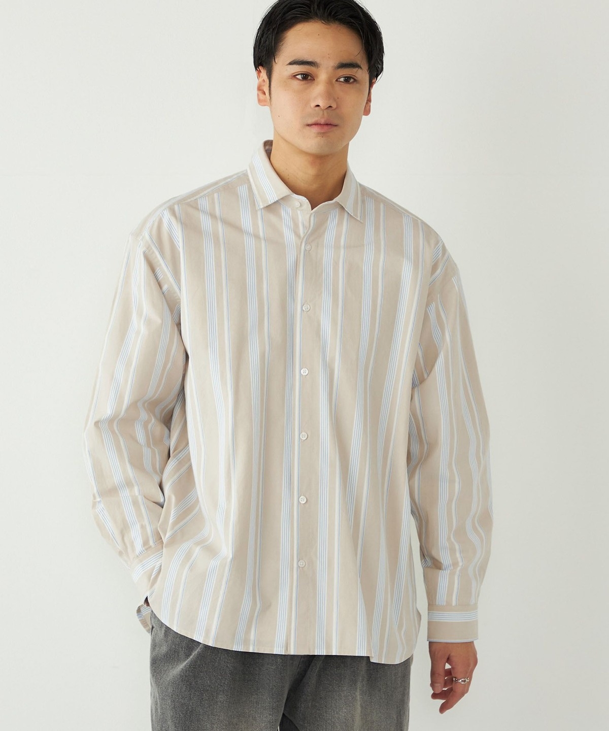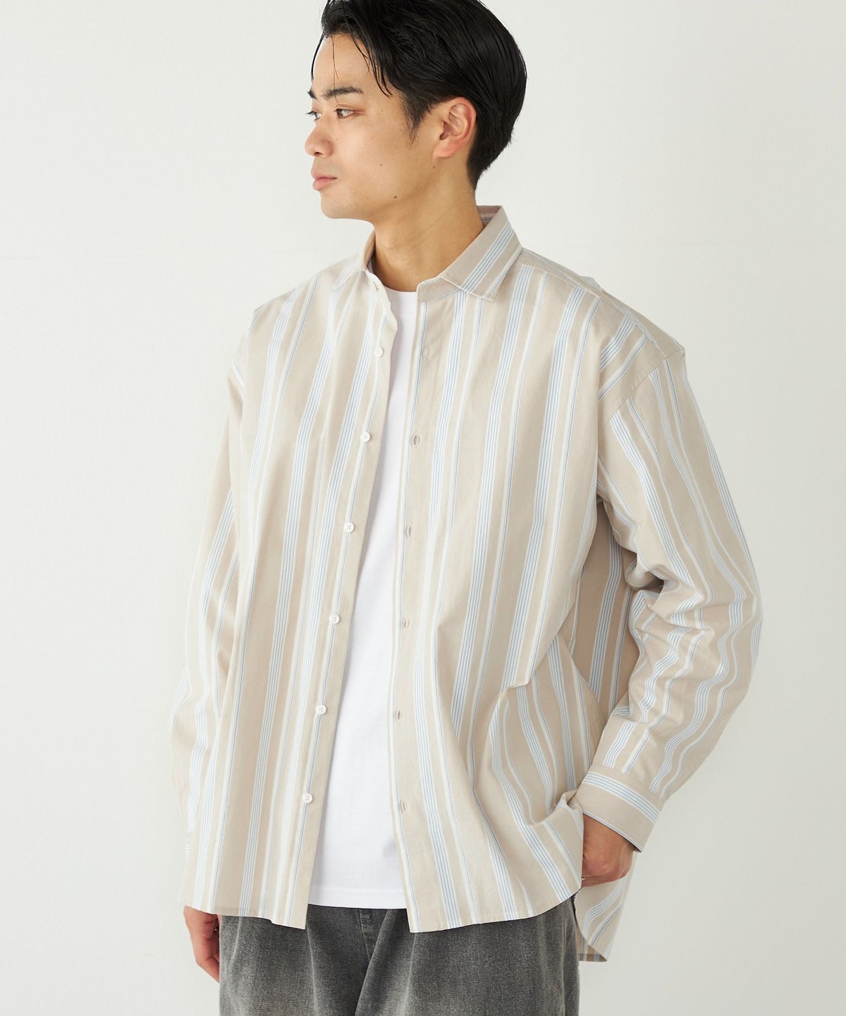 3. 《予約》SHIPS Colors:ストライプ リラックスフィット シャツ◆ ベージュ