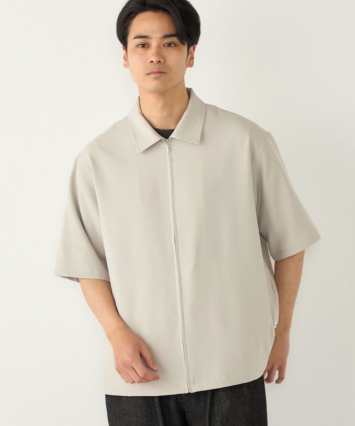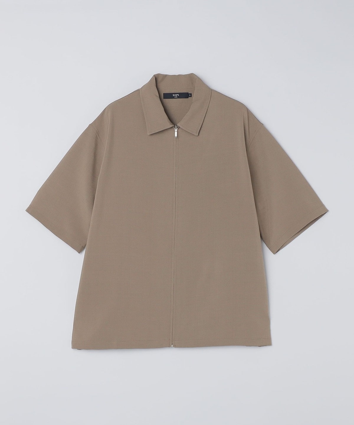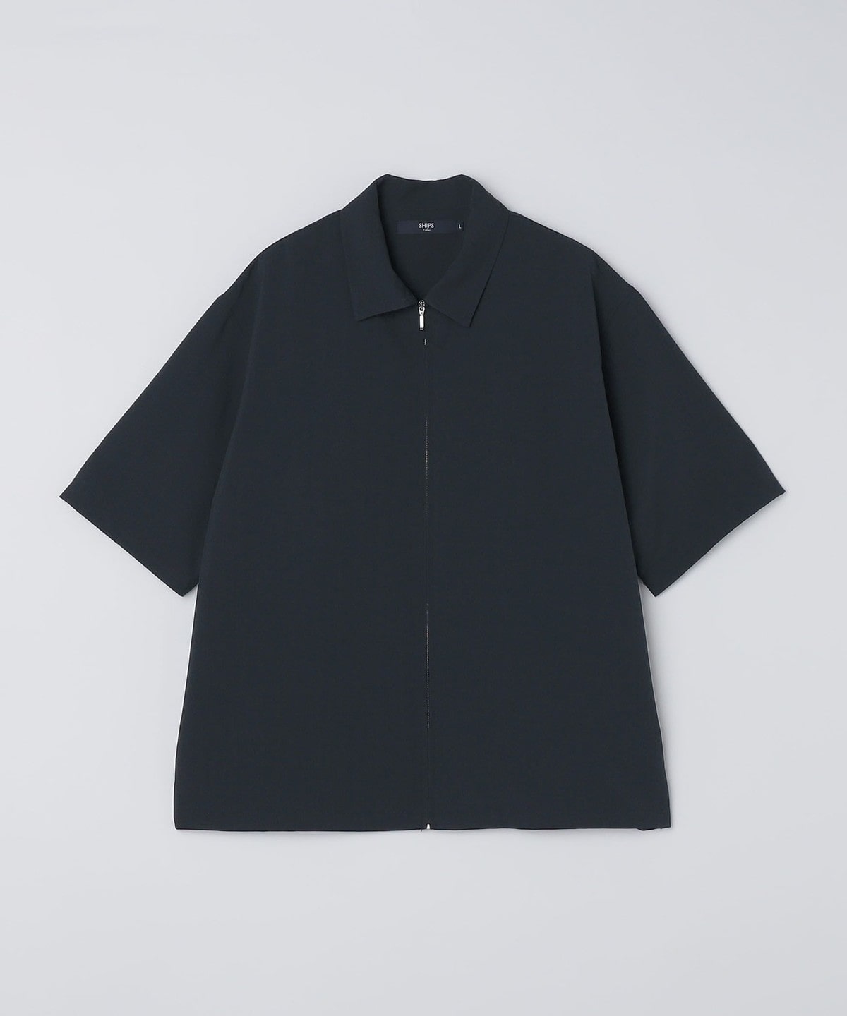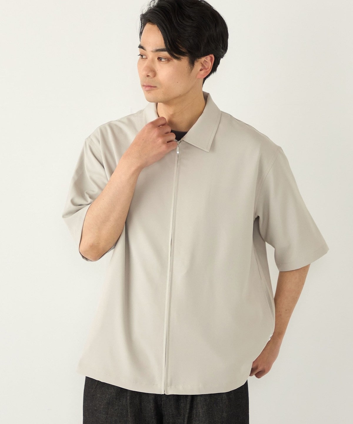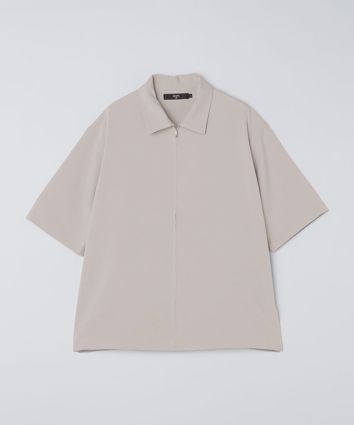 イージーケア性も魅力の合繊素材を使用したジップアップシャツ。