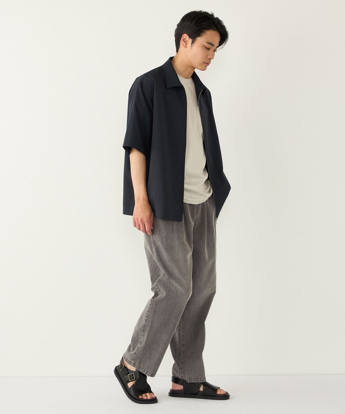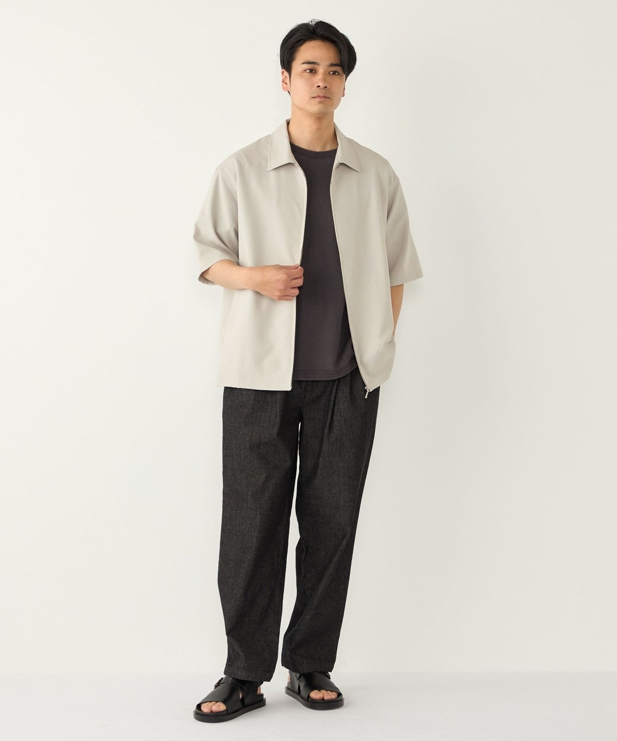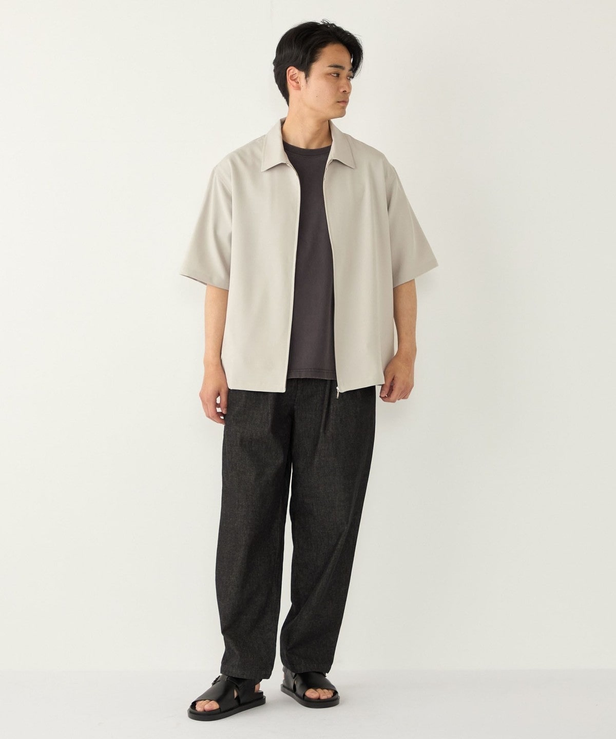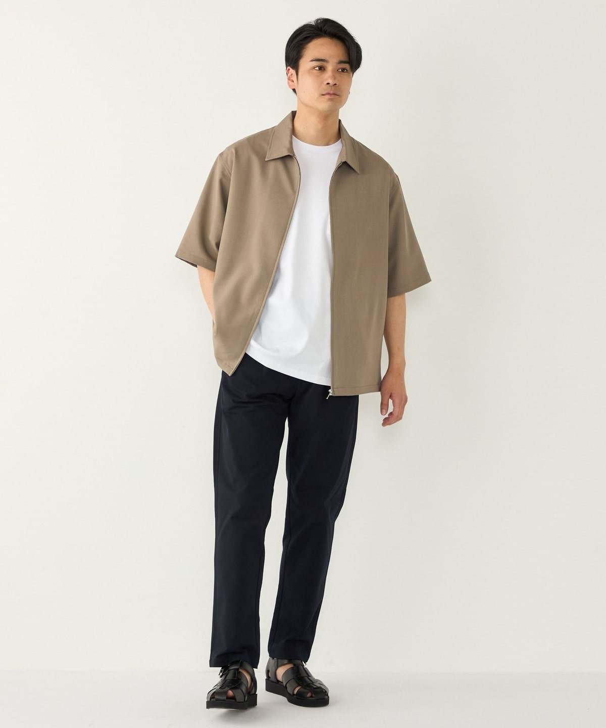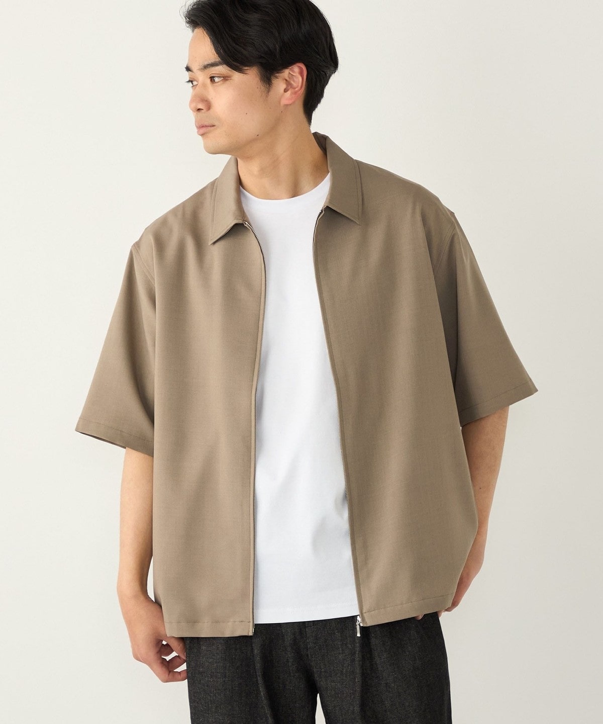 肩幅やそで丈を長めにとった5分袖のようなディテールに、ジップアップ型を採用することでトレンド感のある1枚。