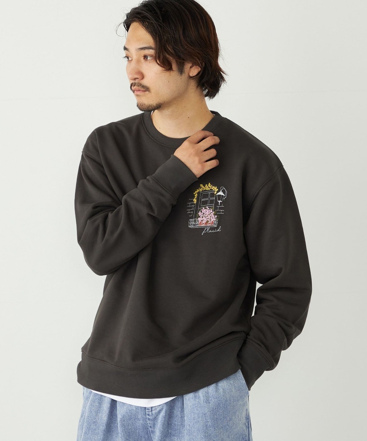 1. SHIPS Colors:エンブロイダリー スウェット◇ ダークグレー