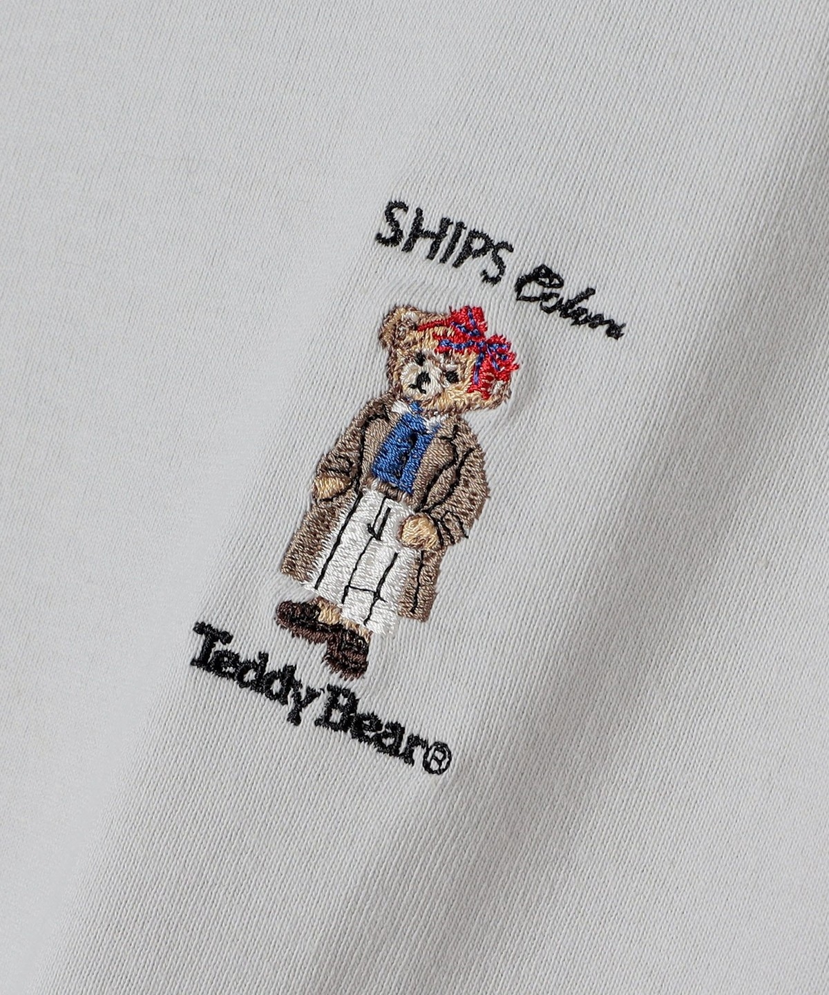 《一部追加・新色予約》SHIPS Colors:TeddyBear(R) 1ポイント 刺繍 ロンT◆