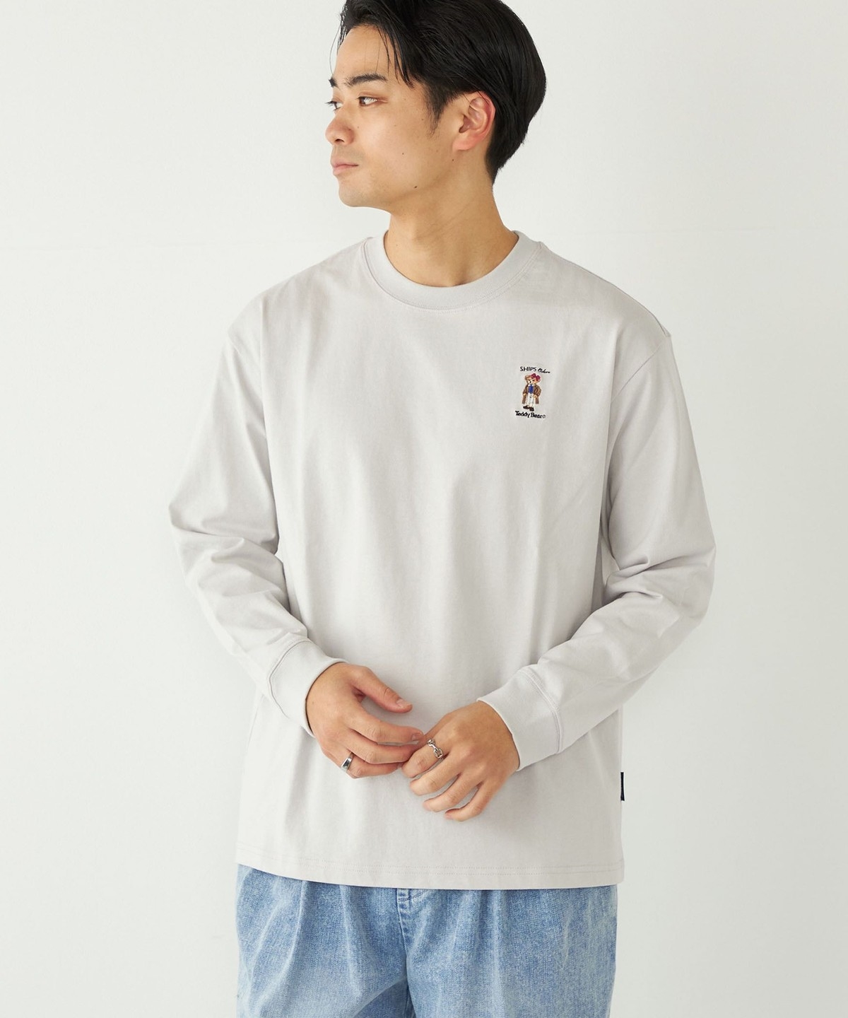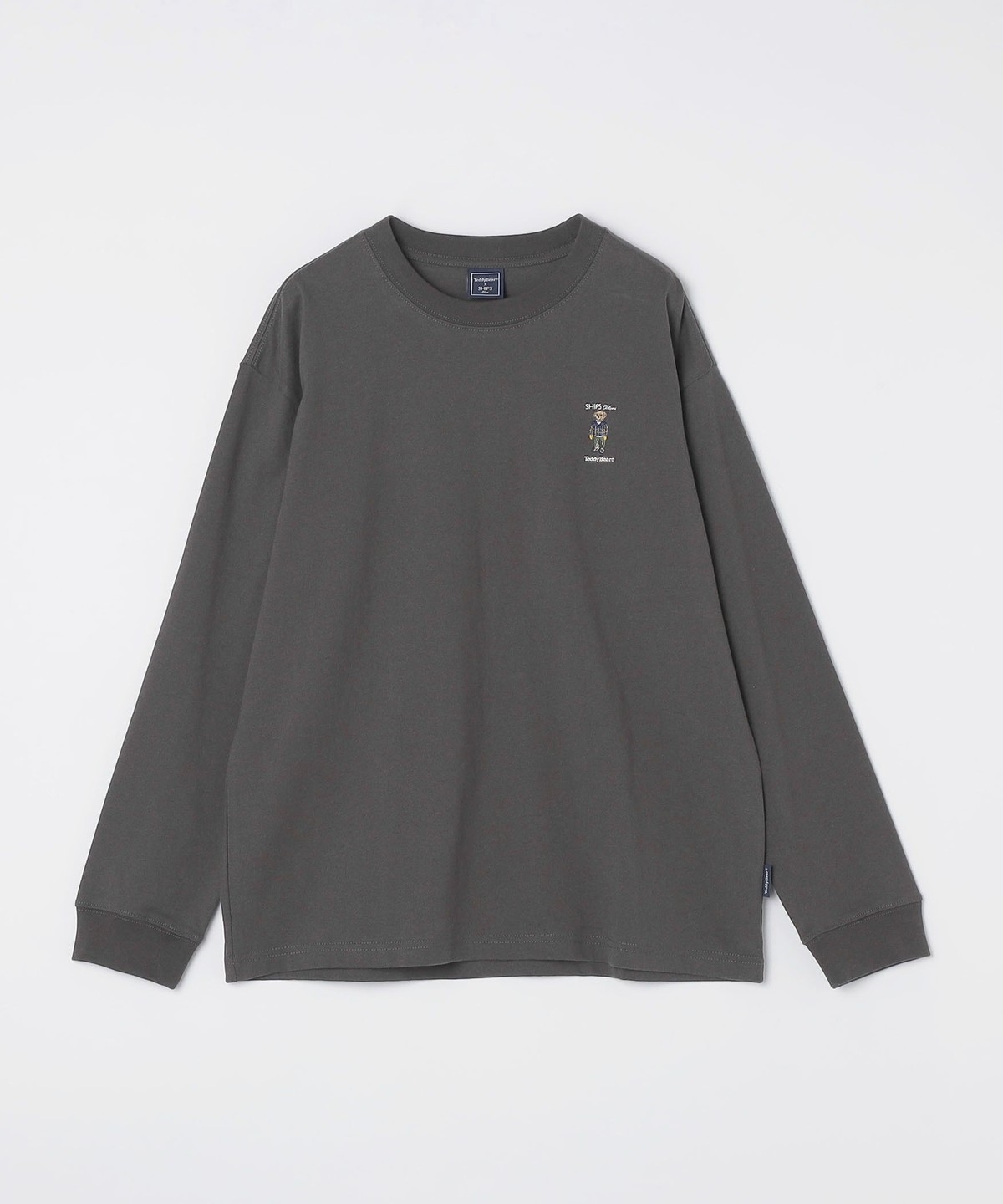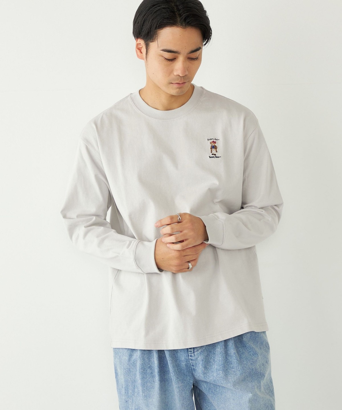左胸にテディベアの刺繍を施した、シンプルなロンT。