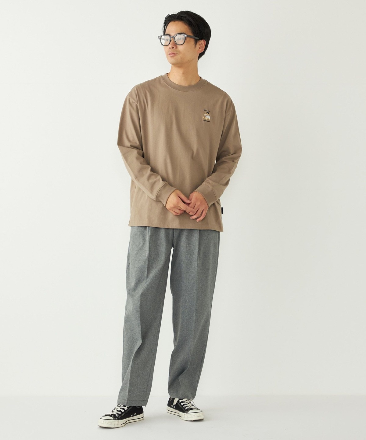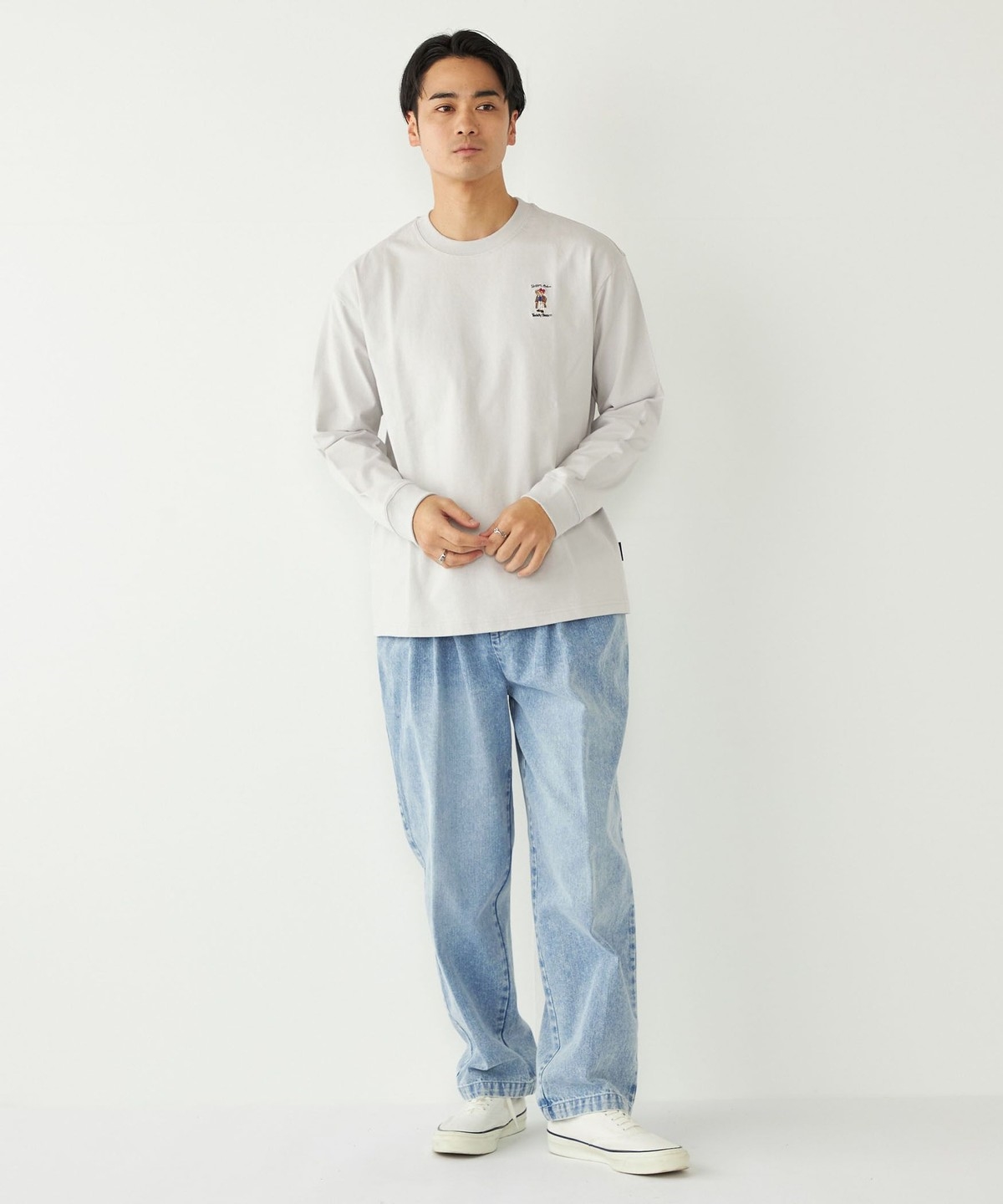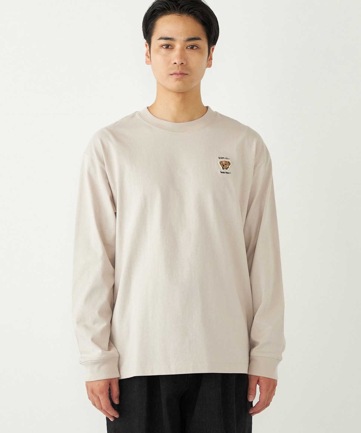左胸にテディベアの刺繍を施した、シンプルなロンT。
