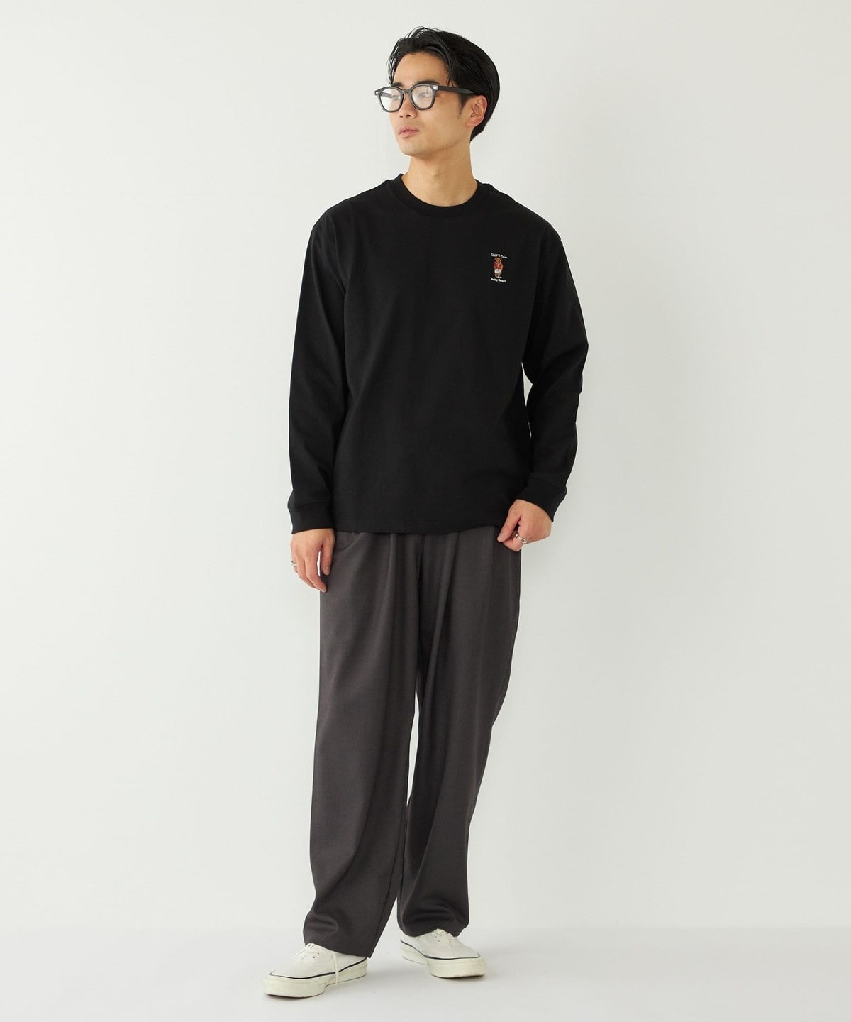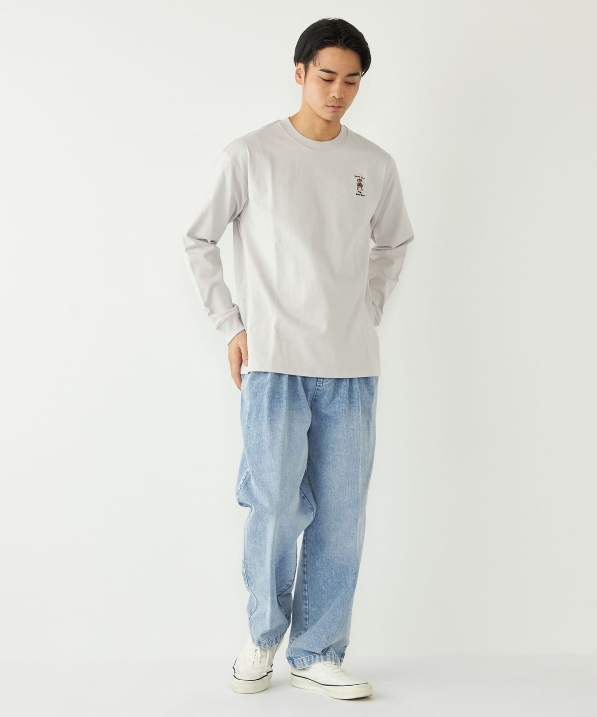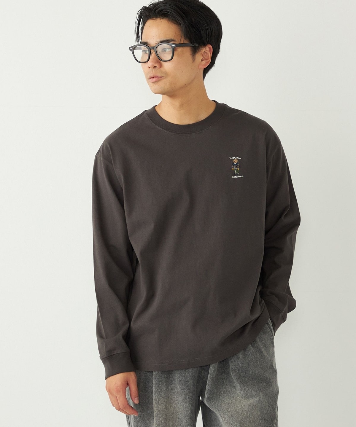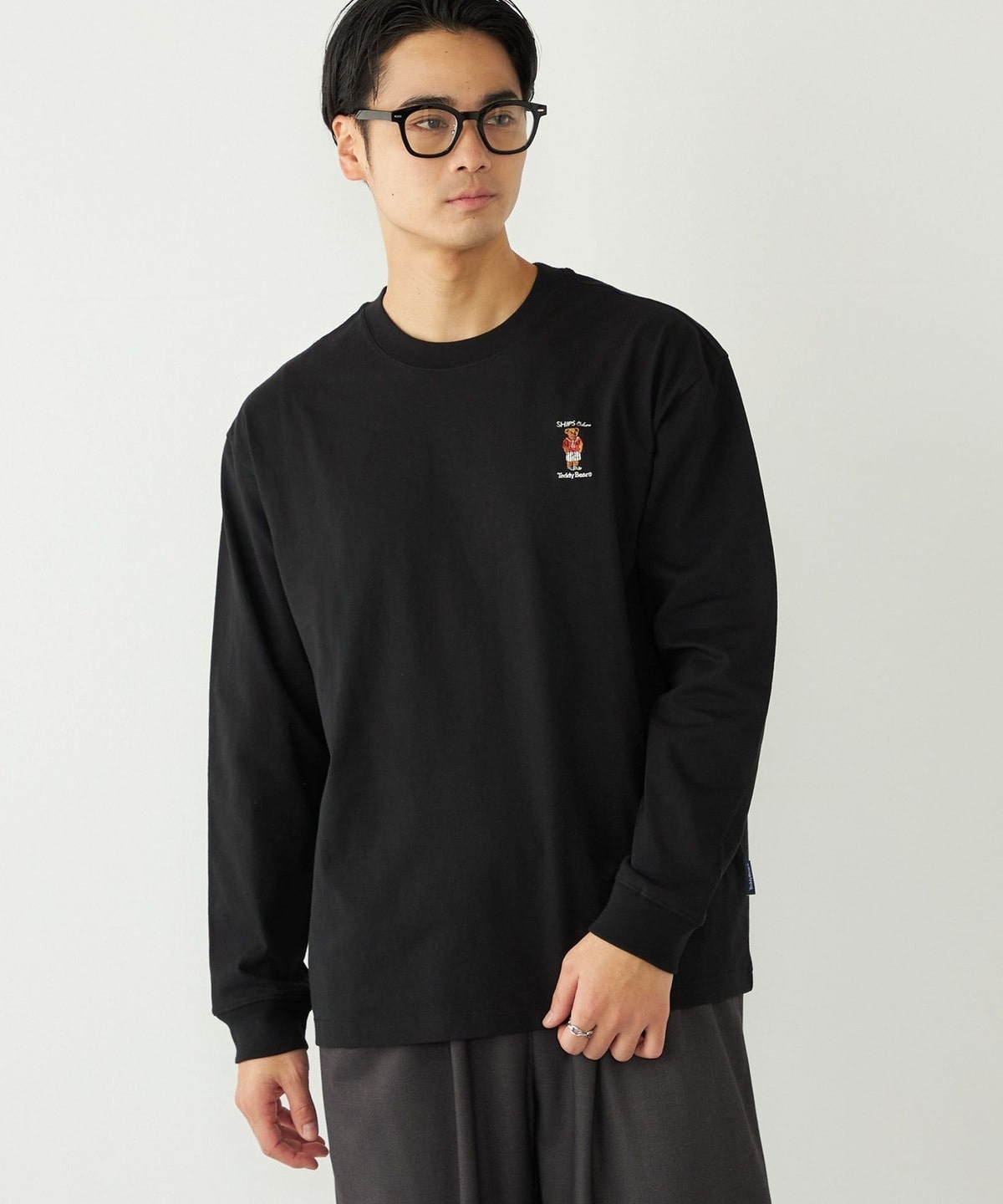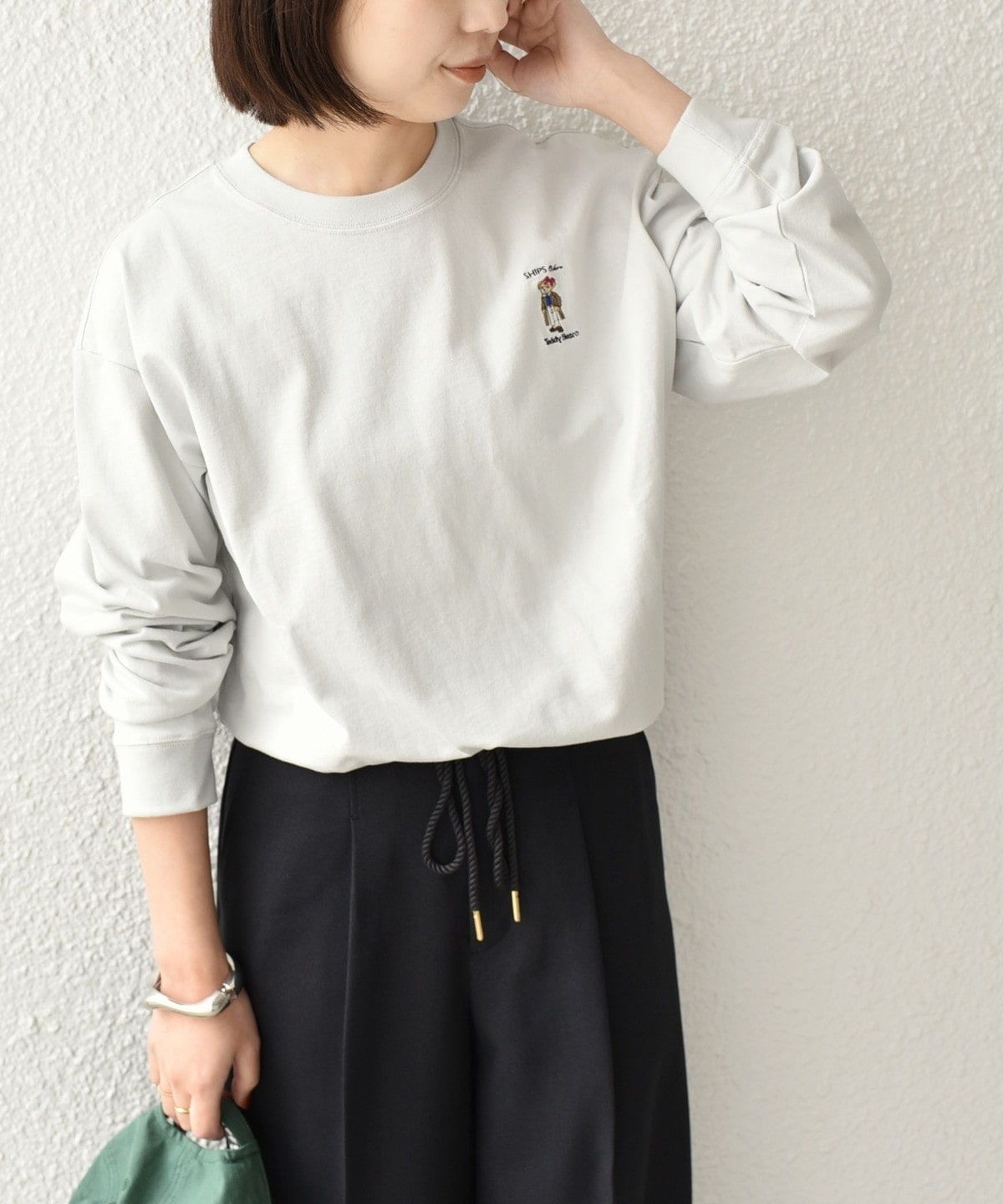 左胸にテディベアの刺繍を施した、シンプルなロンT。