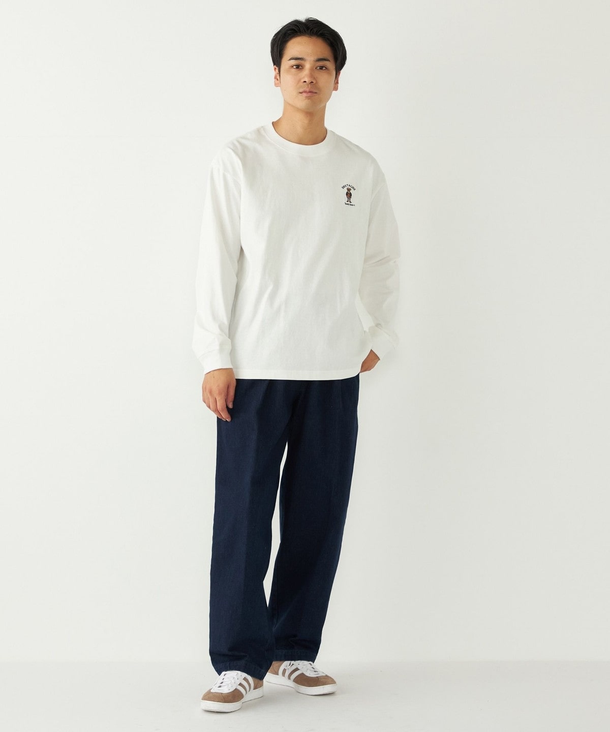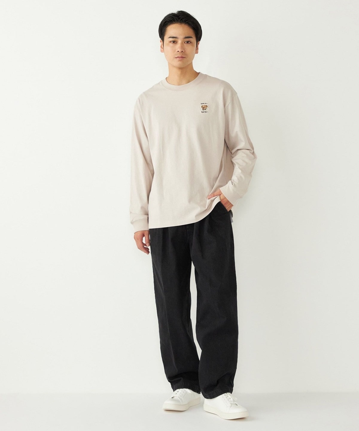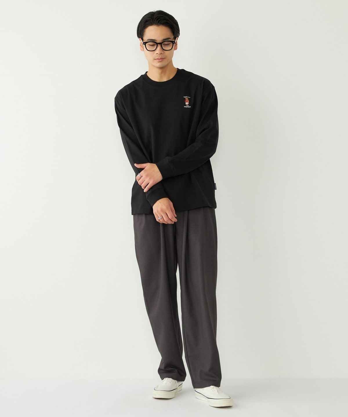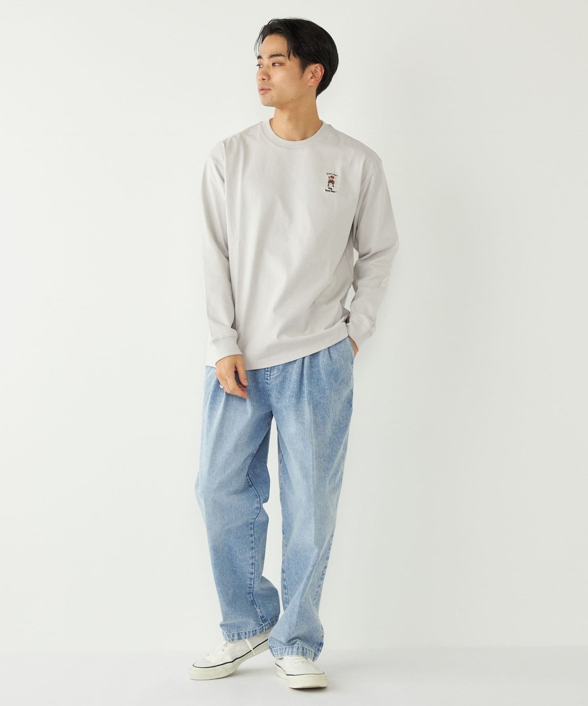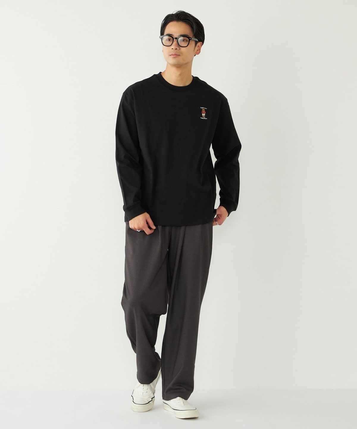 左胸にテディベアの刺繍を施した、シンプルなロンT。