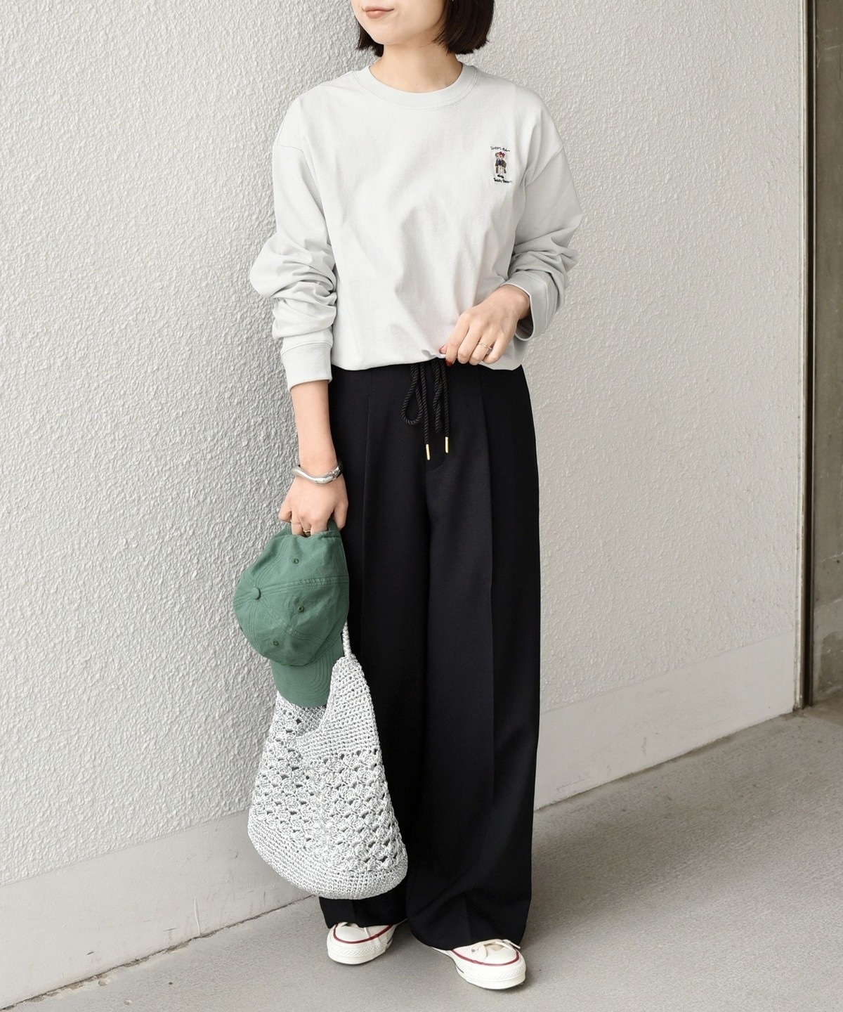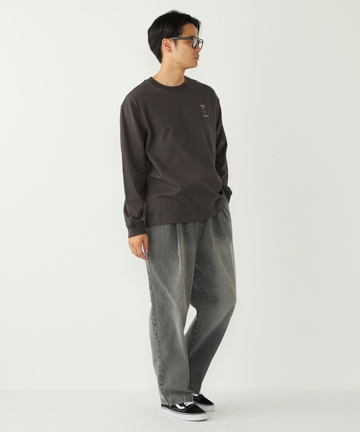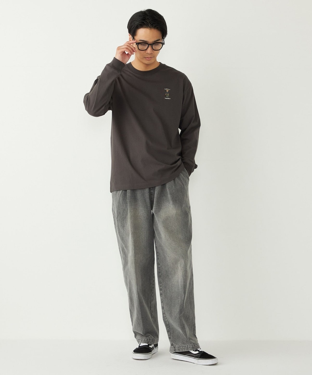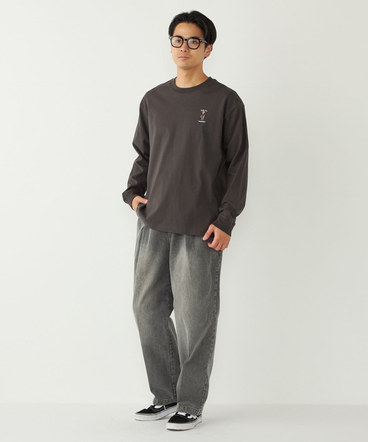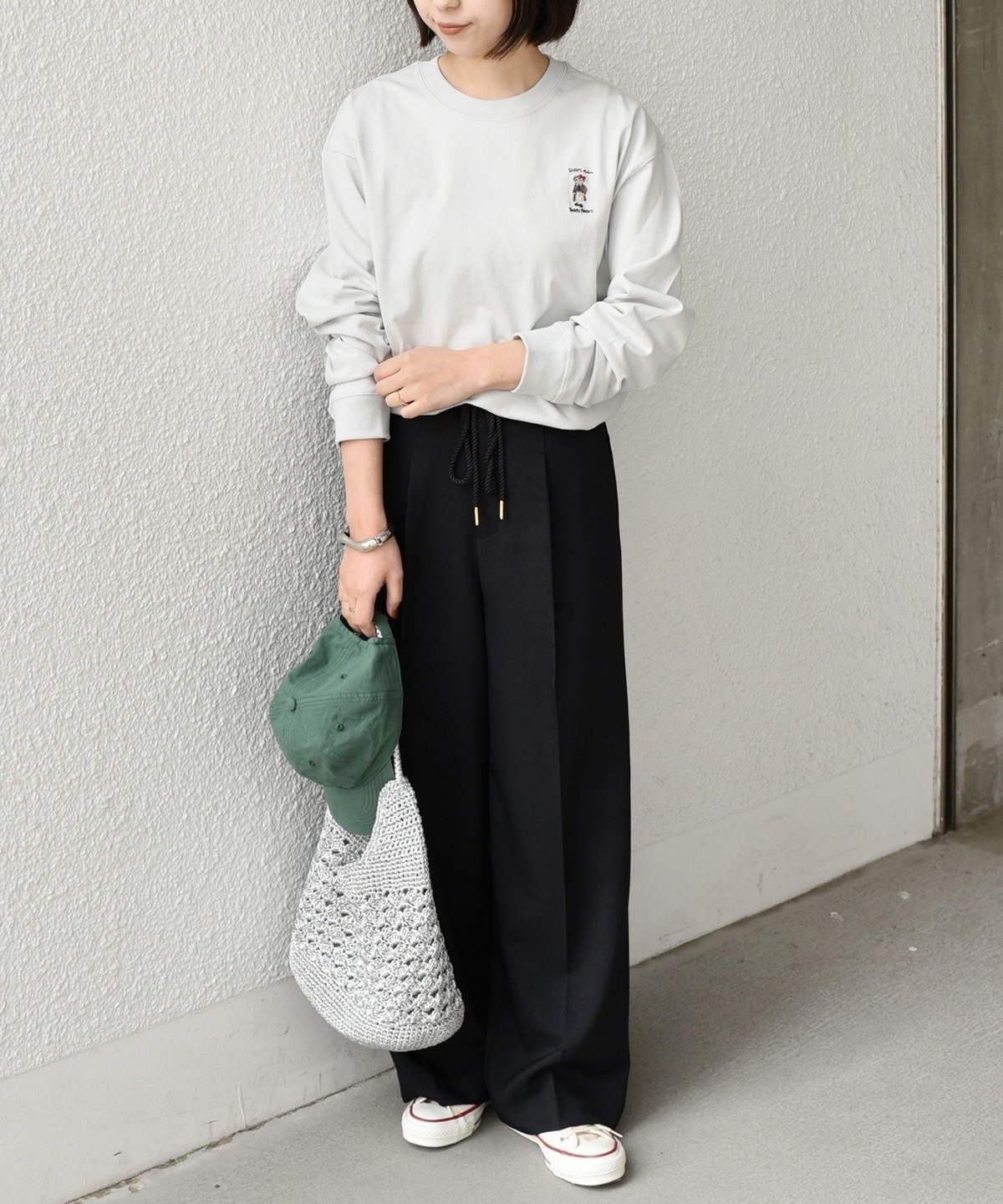 左胸にテディベアの刺繍を施した、シンプルなロンT。