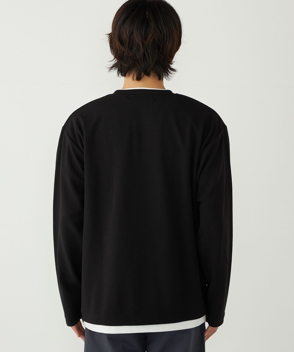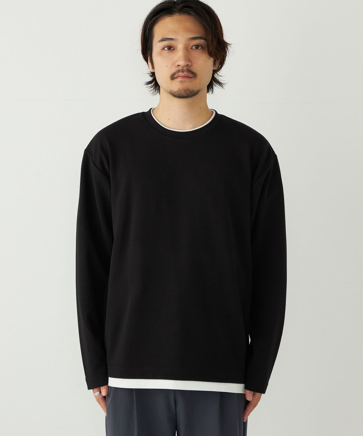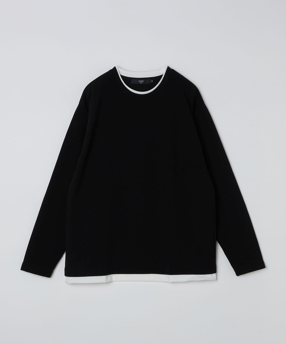 1. SHIPS Colors:フクレ ジャカード フェイクレイヤード ロンT ブラック