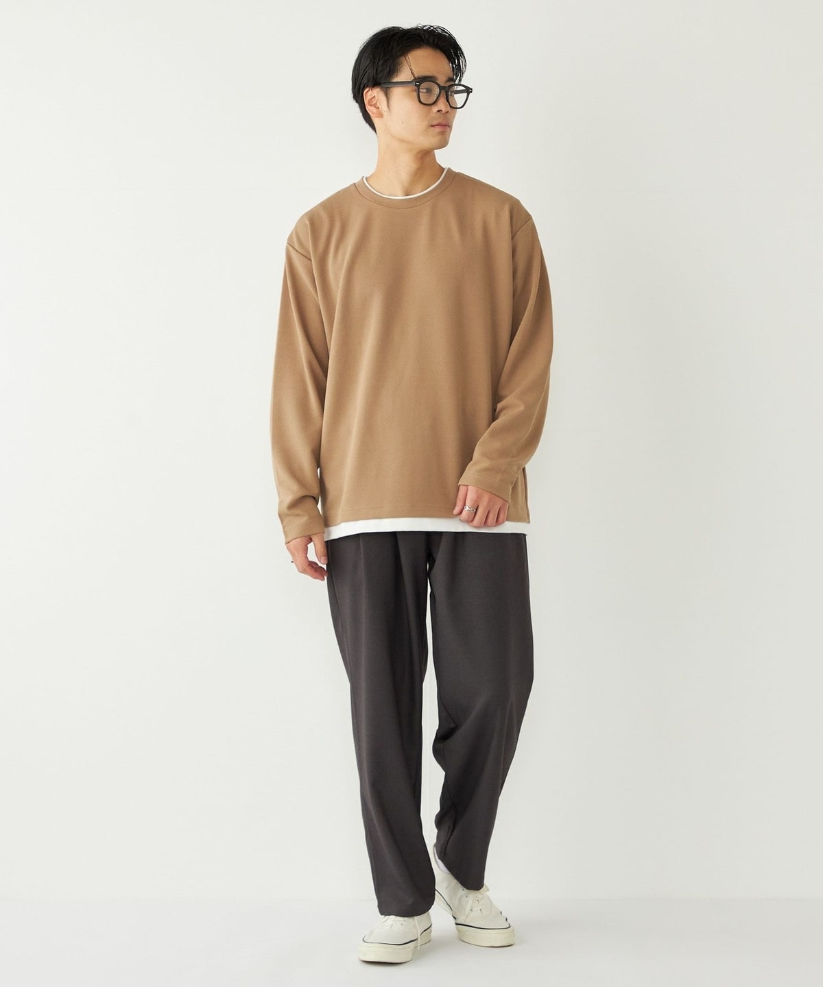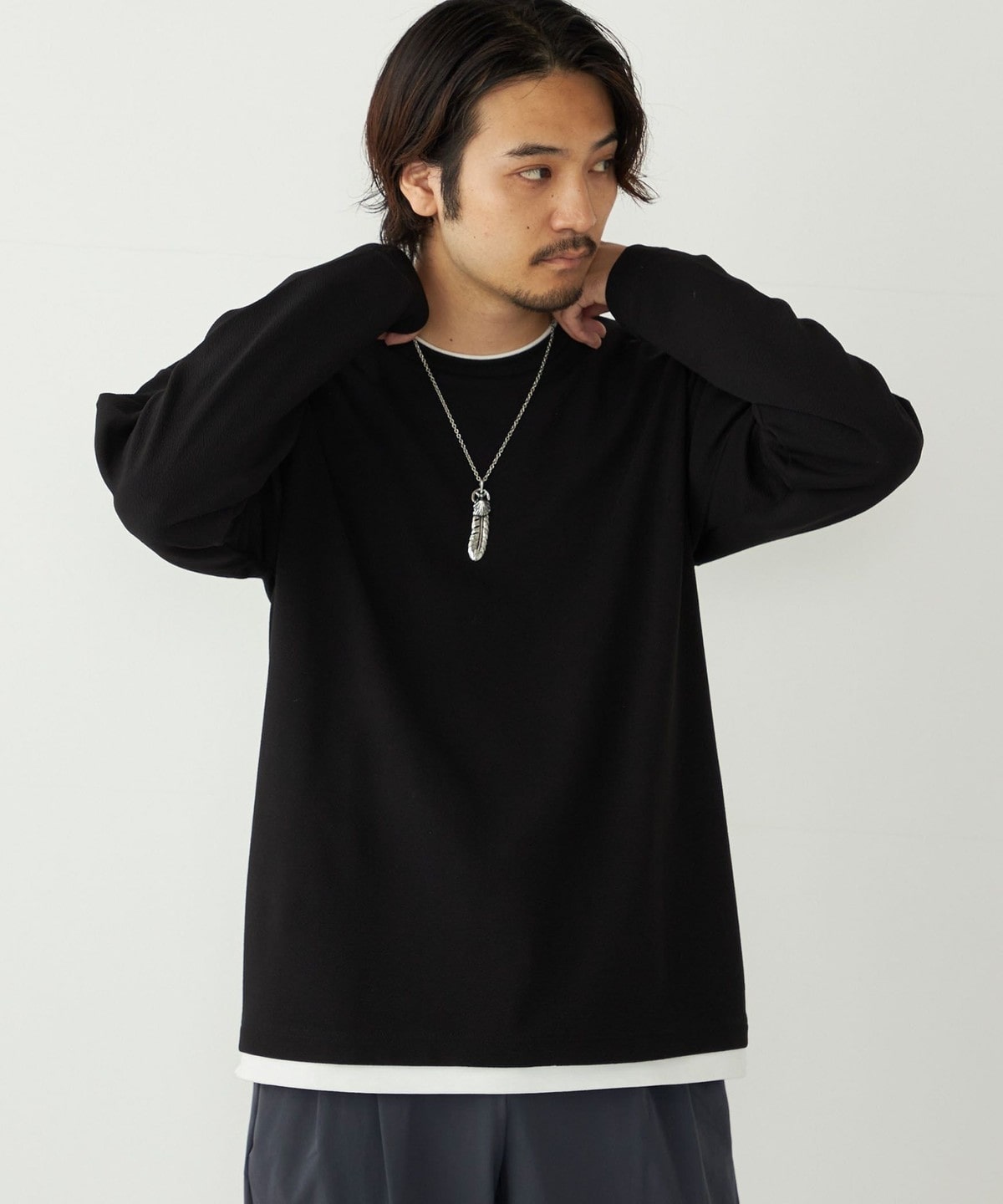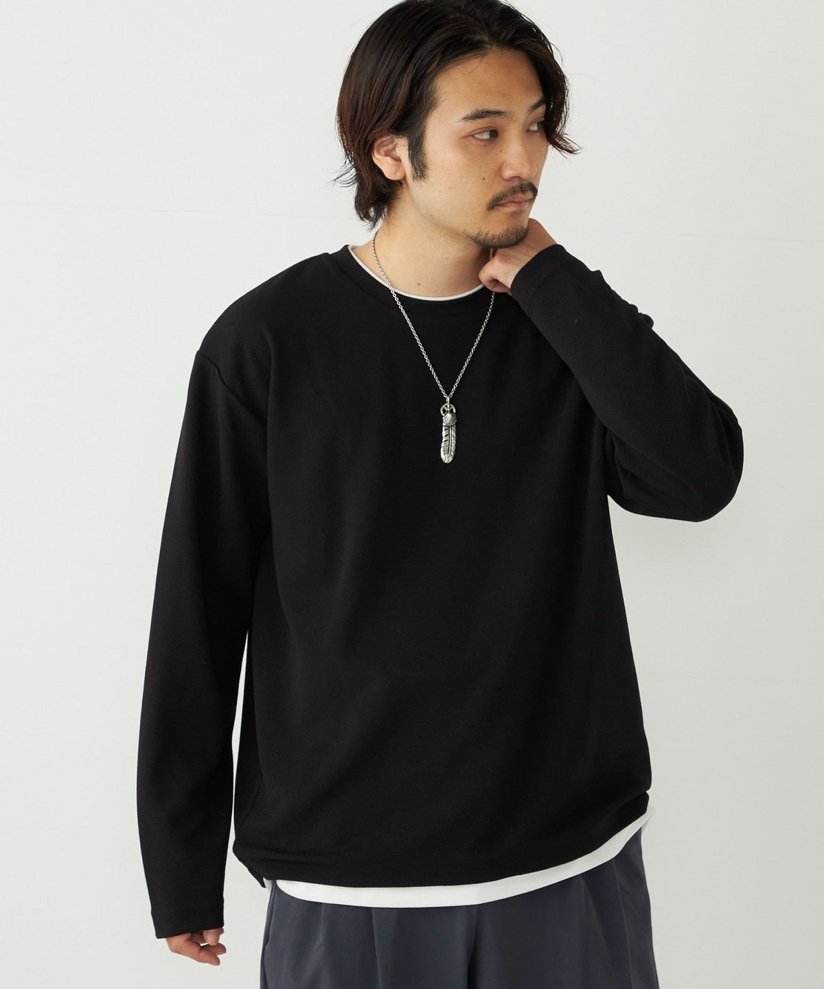 生地の独特な表情が魅力の、フェイクレイヤードのロンT。