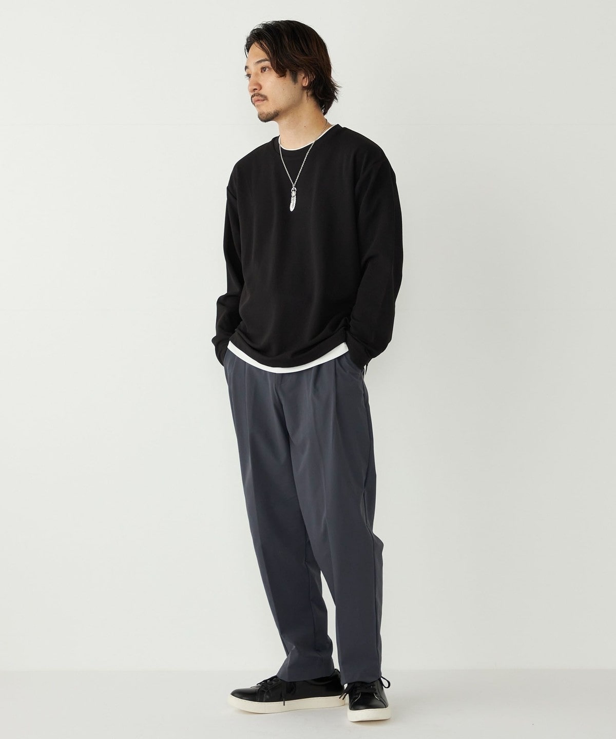 一枚でのご着用で簡単にレイヤードしたようなスタイリングをお楽しみいただけます。