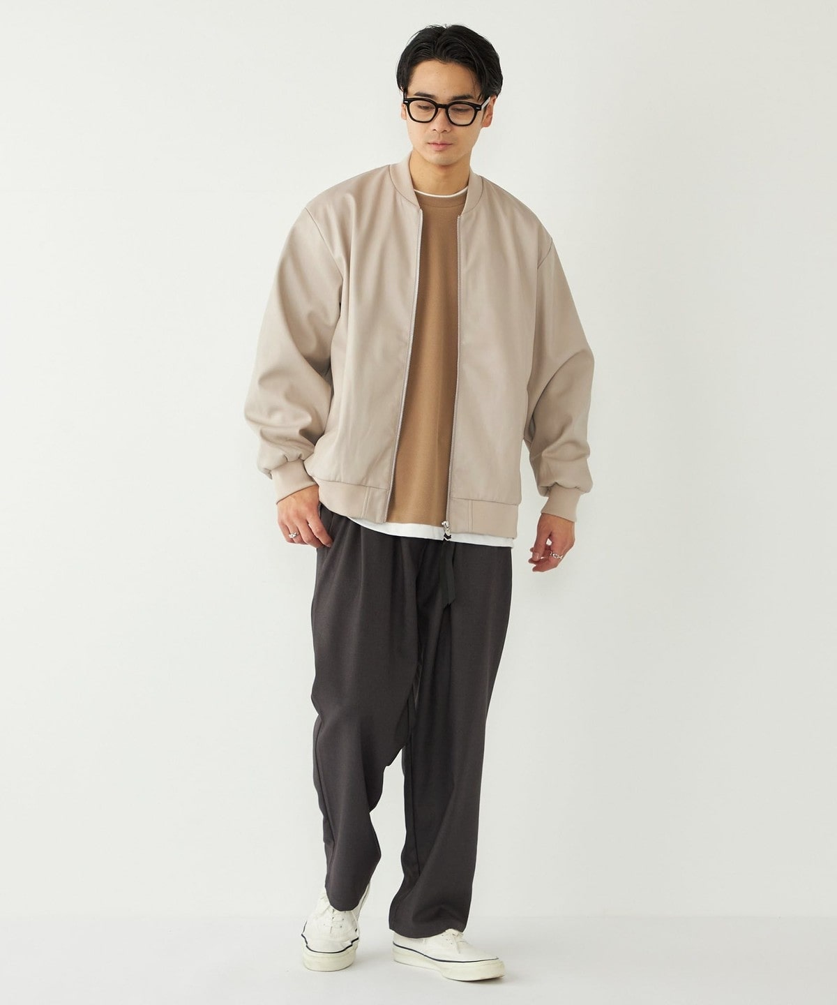 重ね着したような奥行きのある着こなしが気軽にかなう1枚は、一枚着だけでなくアウターのインナーとしてもおすすめです。