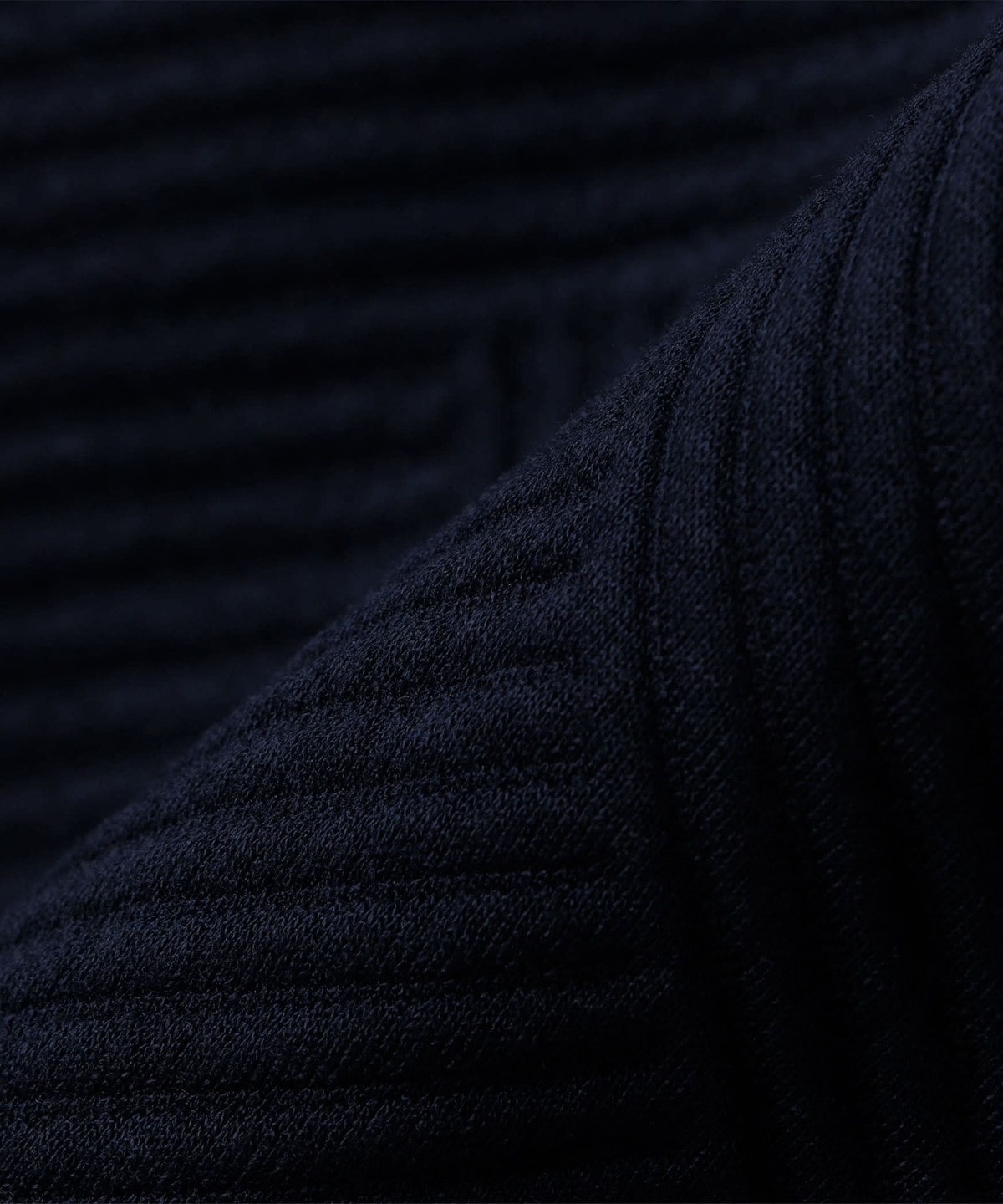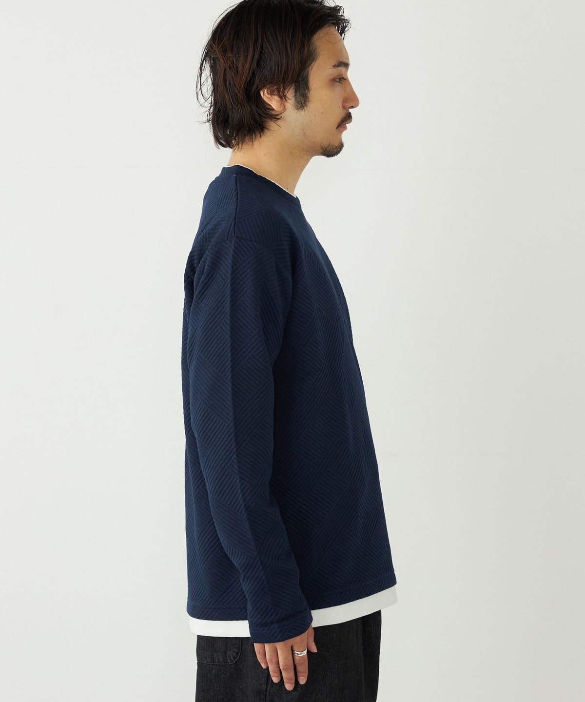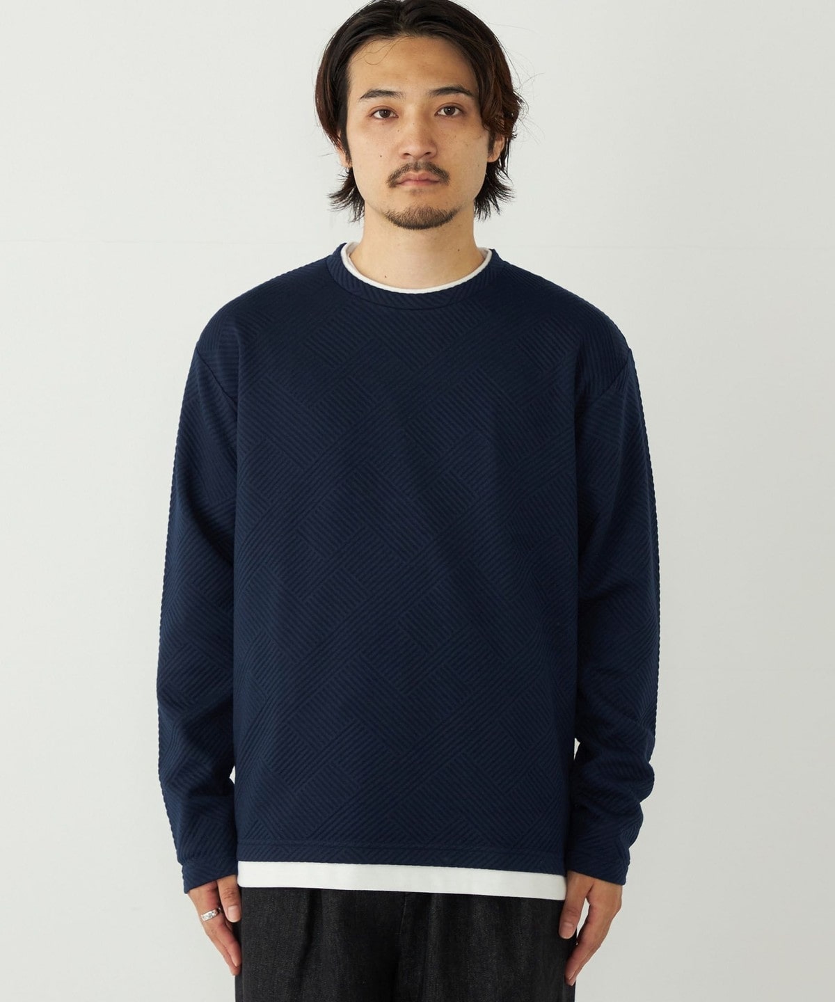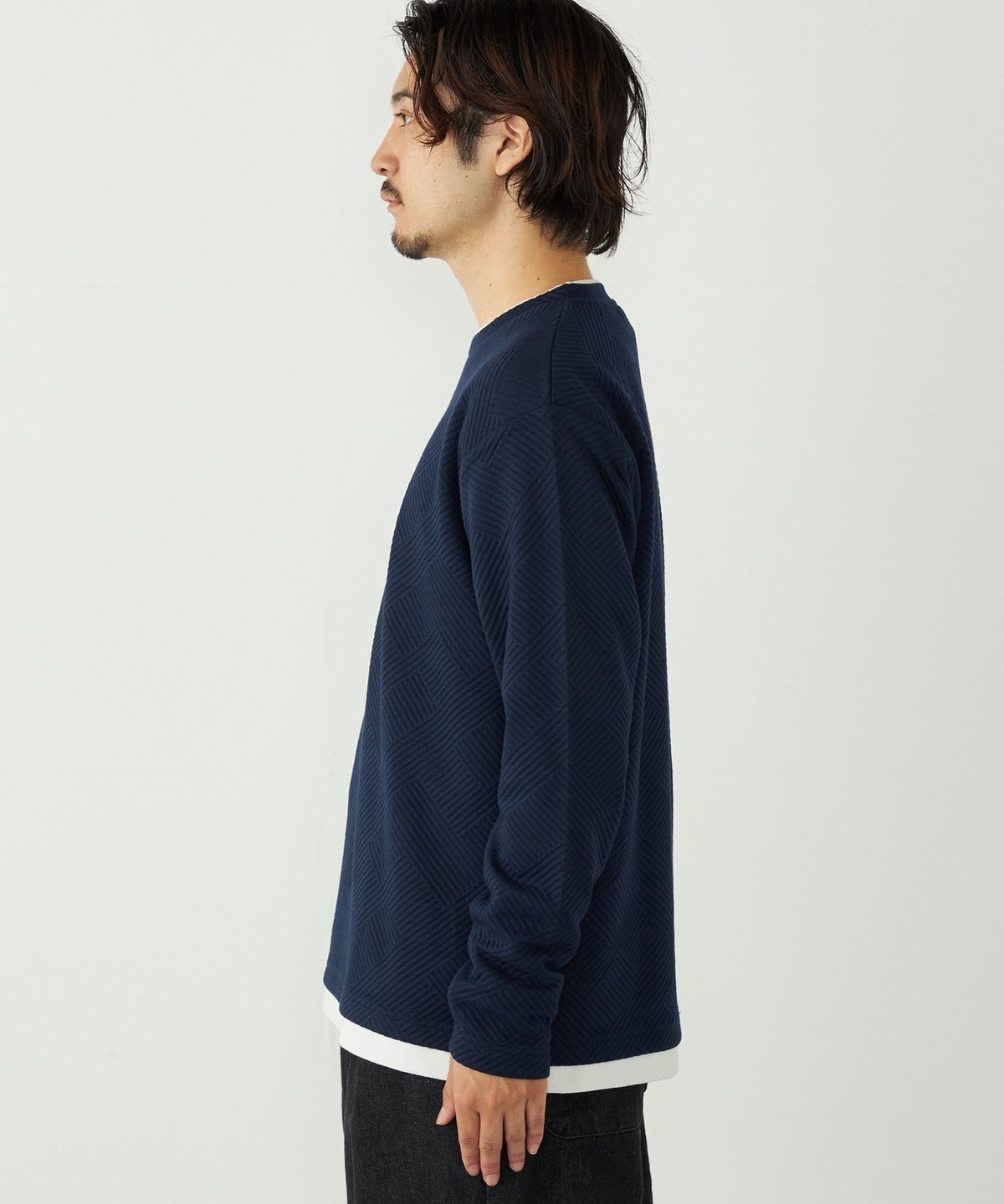 リンクス編みで総柄を表現したフェイクレイヤードのロンT。