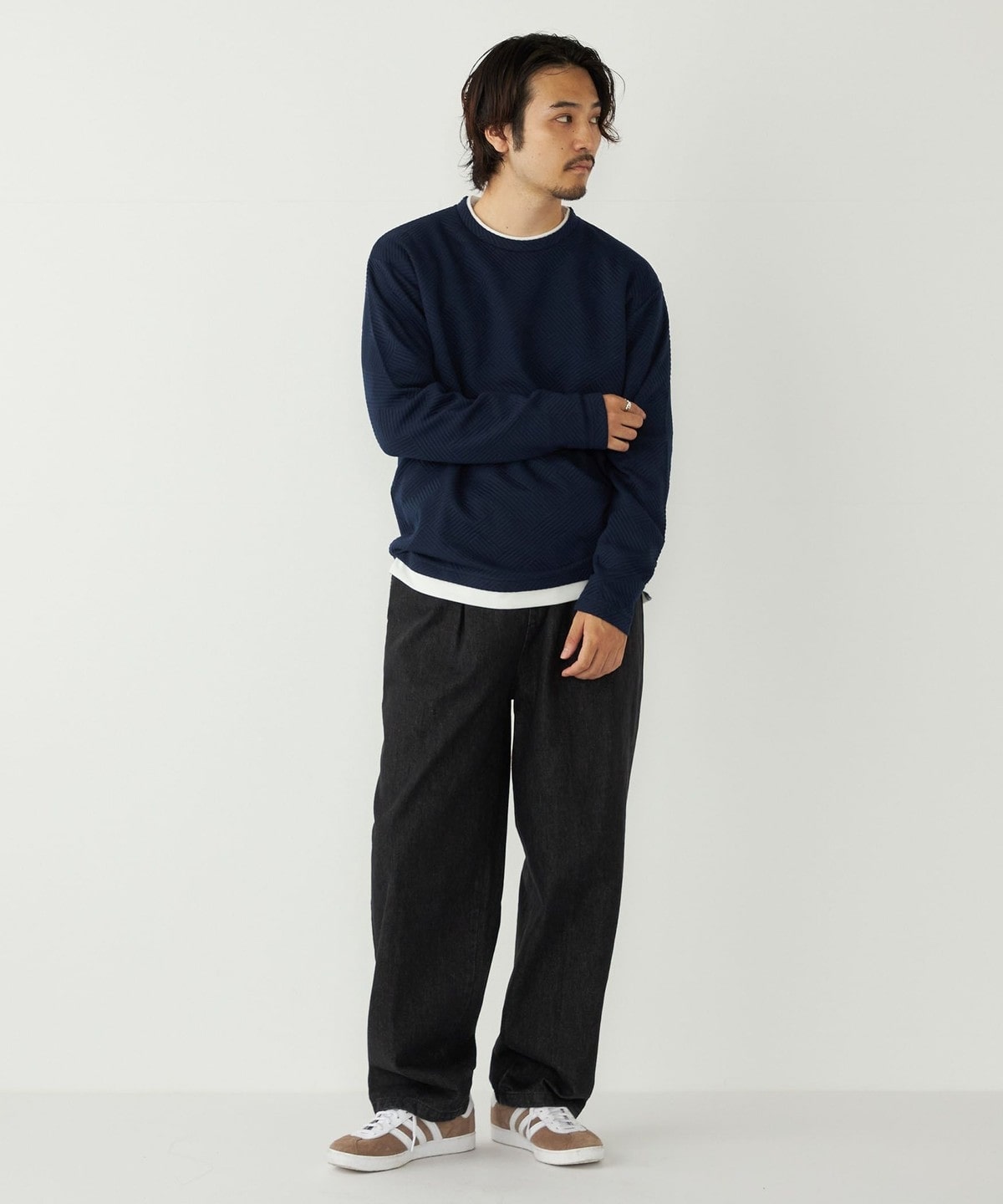 総柄のジャカード生地は凹凸のみで柄を表現しているので、普段のスタイリングに取り入れていただきやすい1枚。