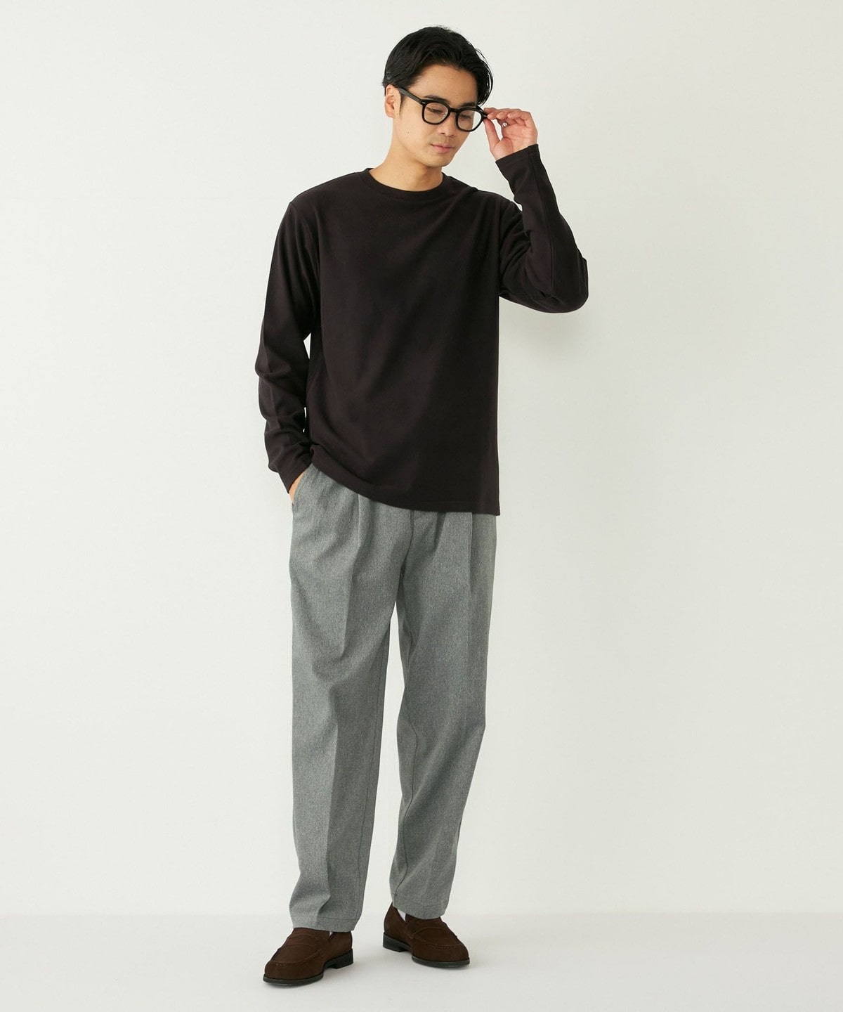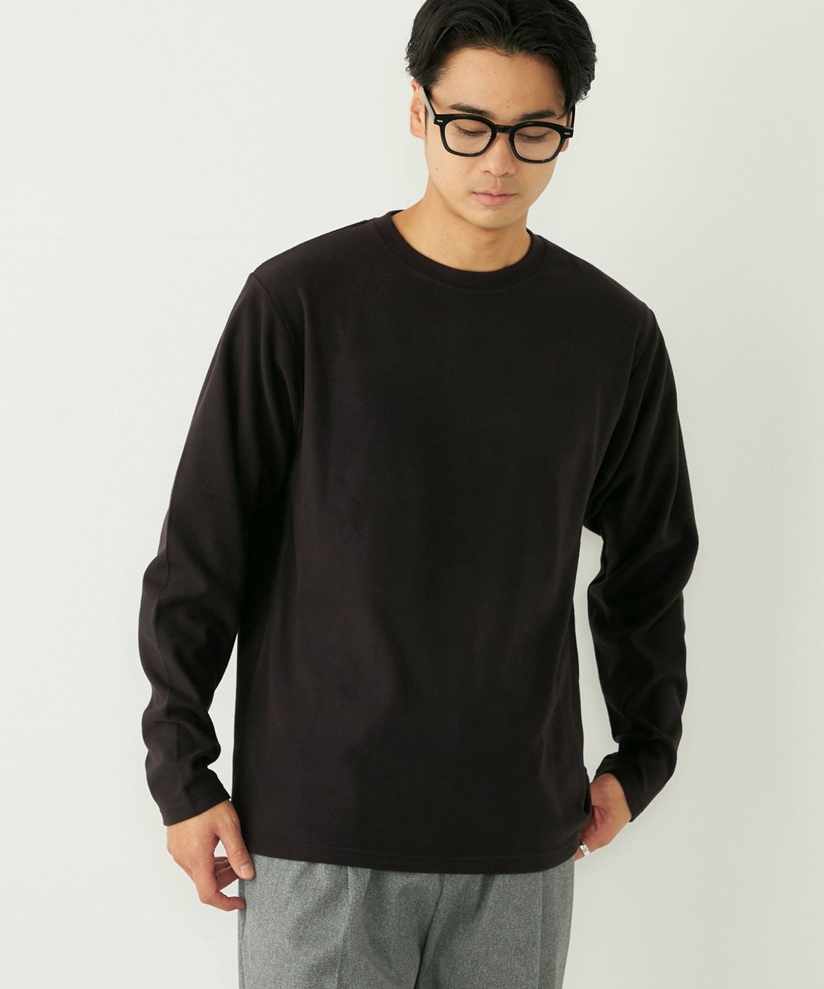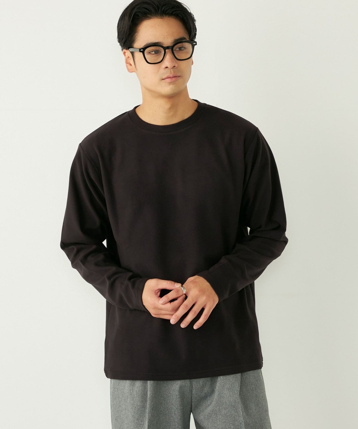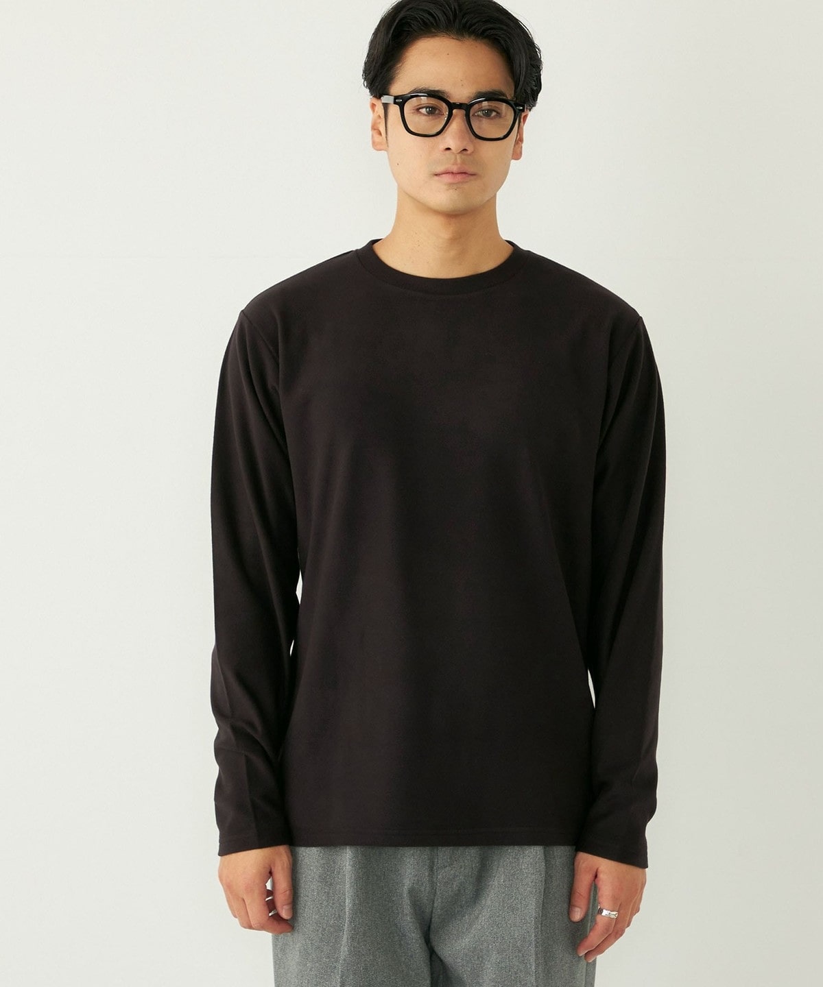 3. SHIPS Colors:〈吸水速乾〉スムース 微起毛 クルーネック ロンT ブラック