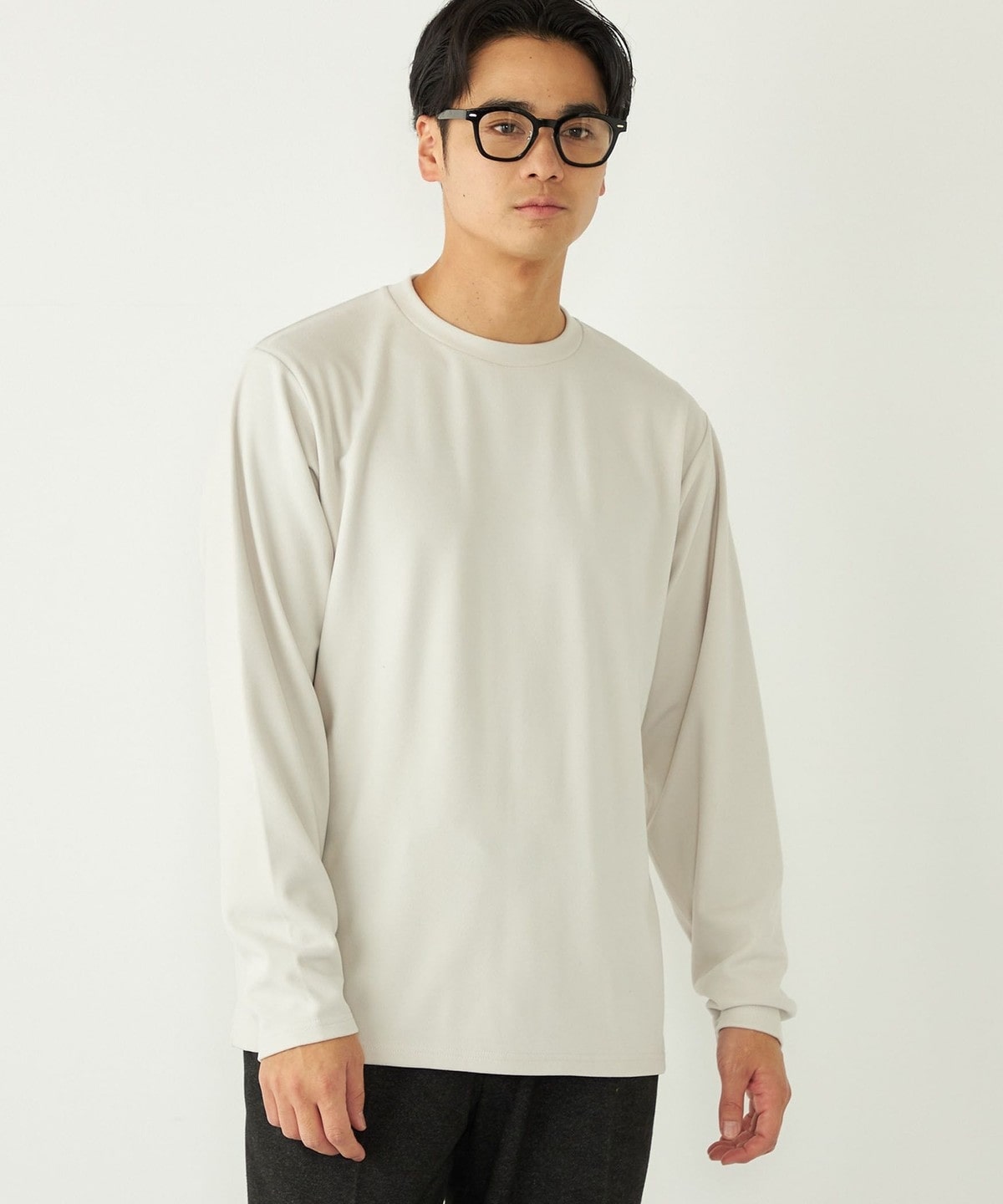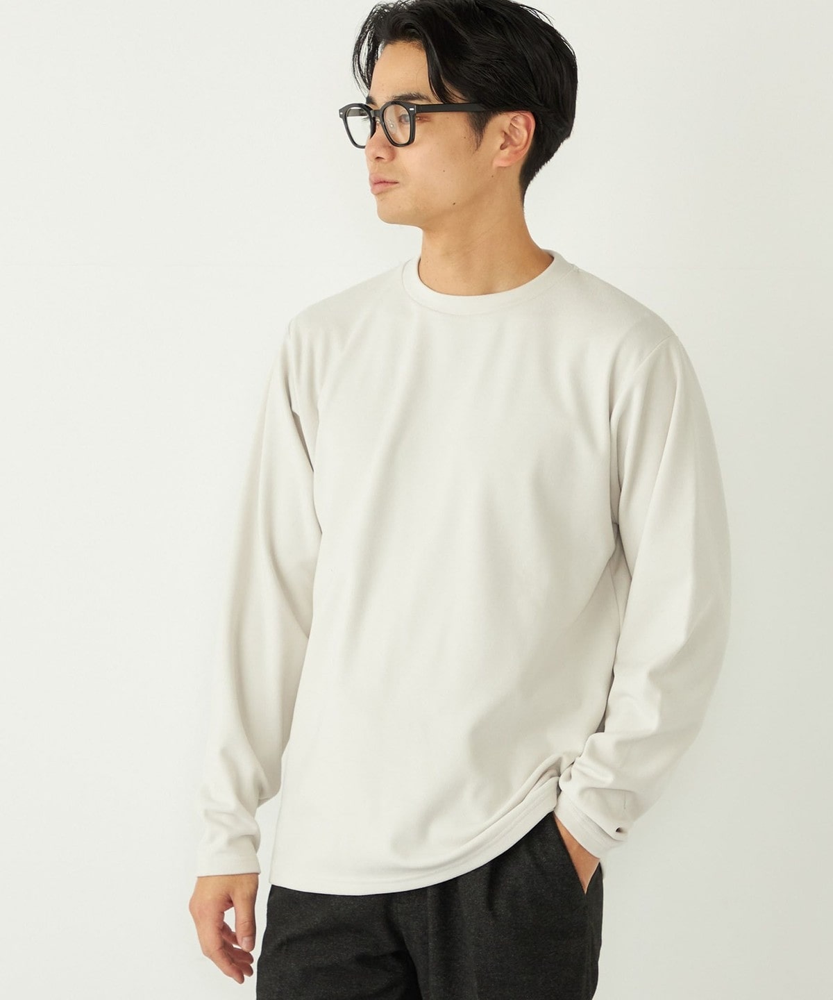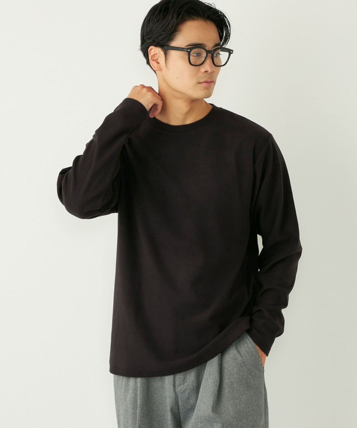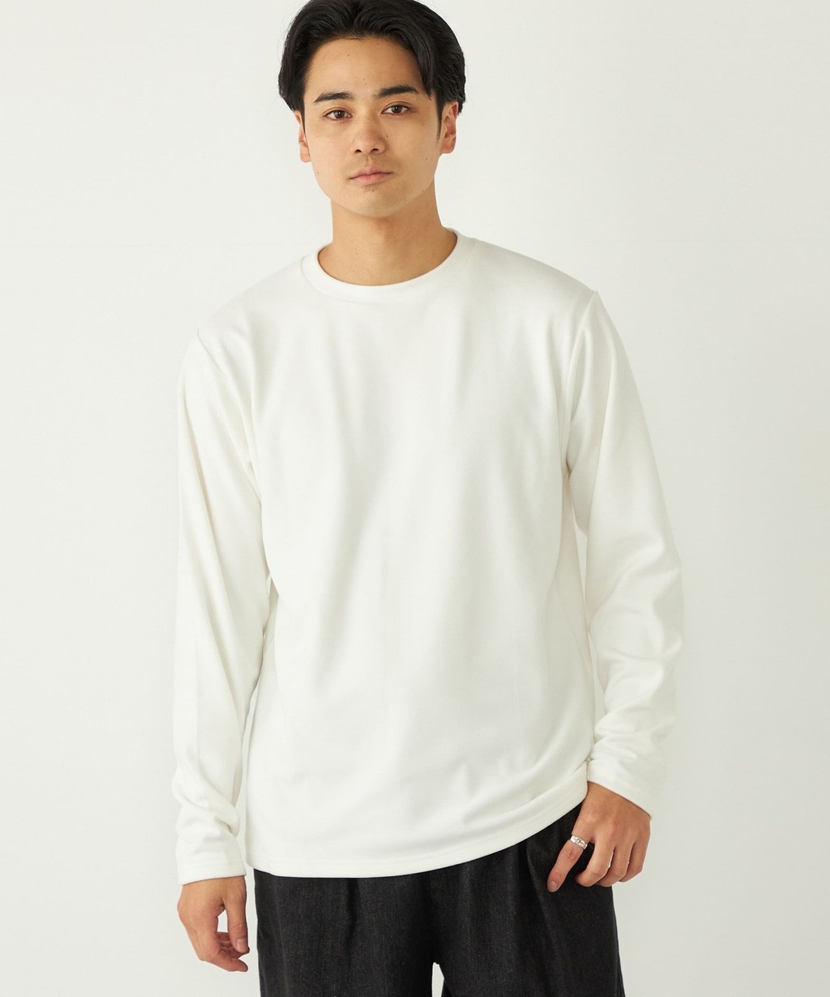 肌触りの良いスムース編みに微起毛を施し、ウォーム感のある生地感に。