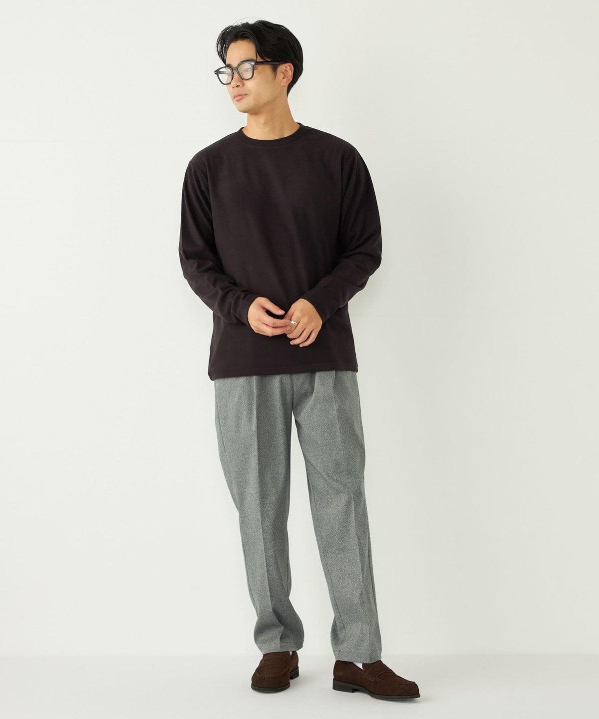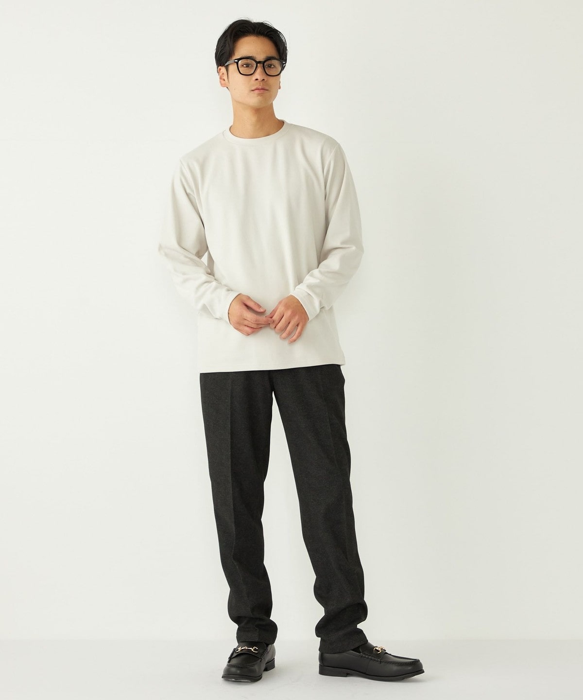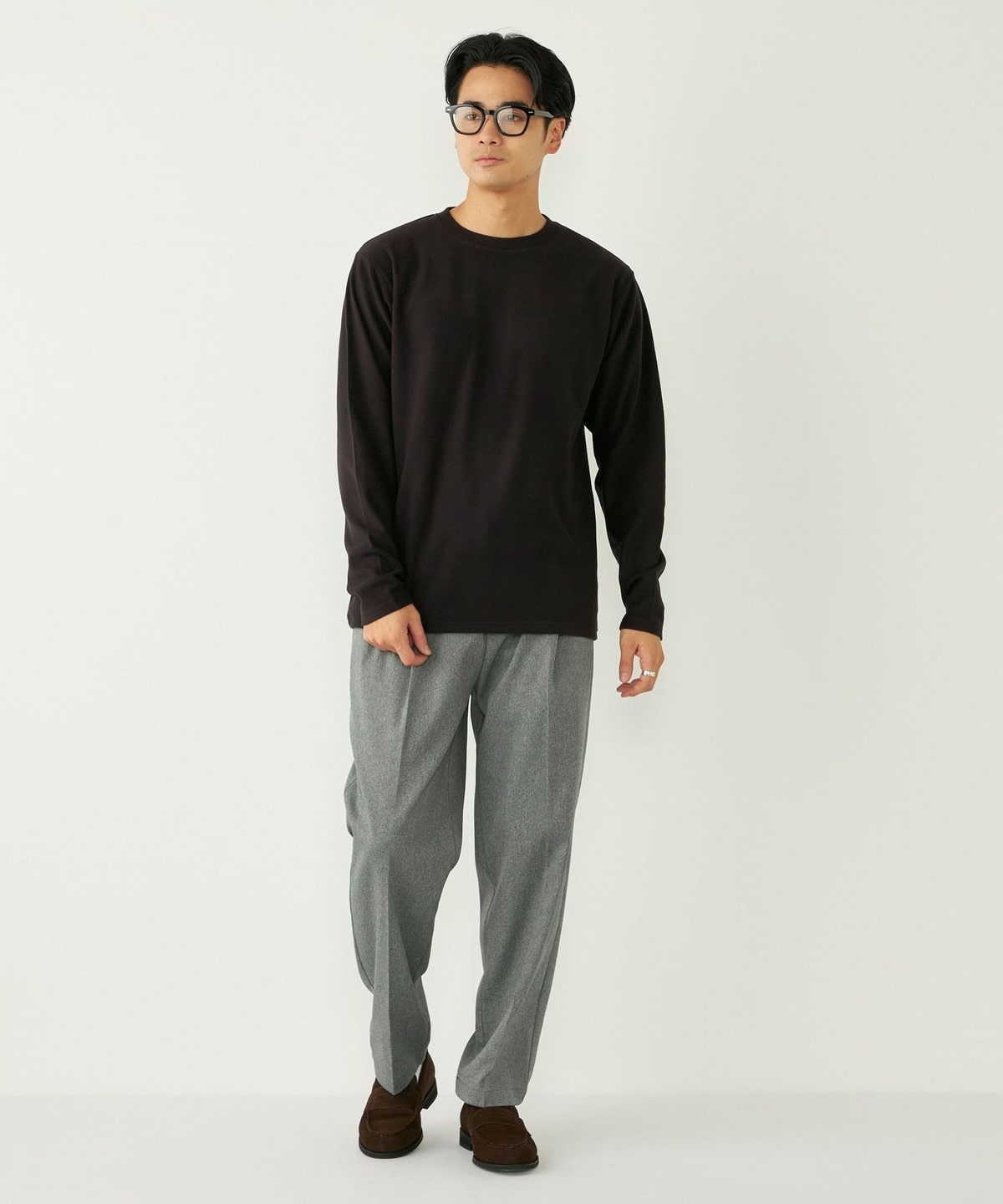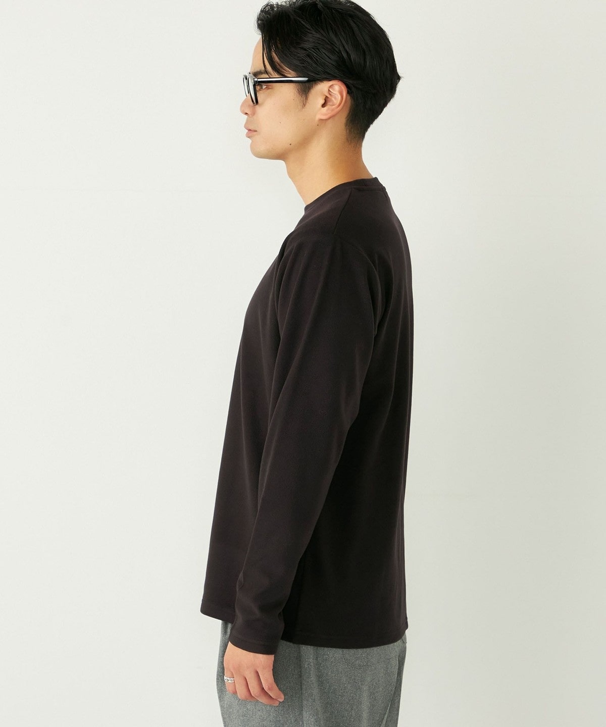 肌触りの良いスムース編みに微起毛を施し、ウォーム感のある生地感に。