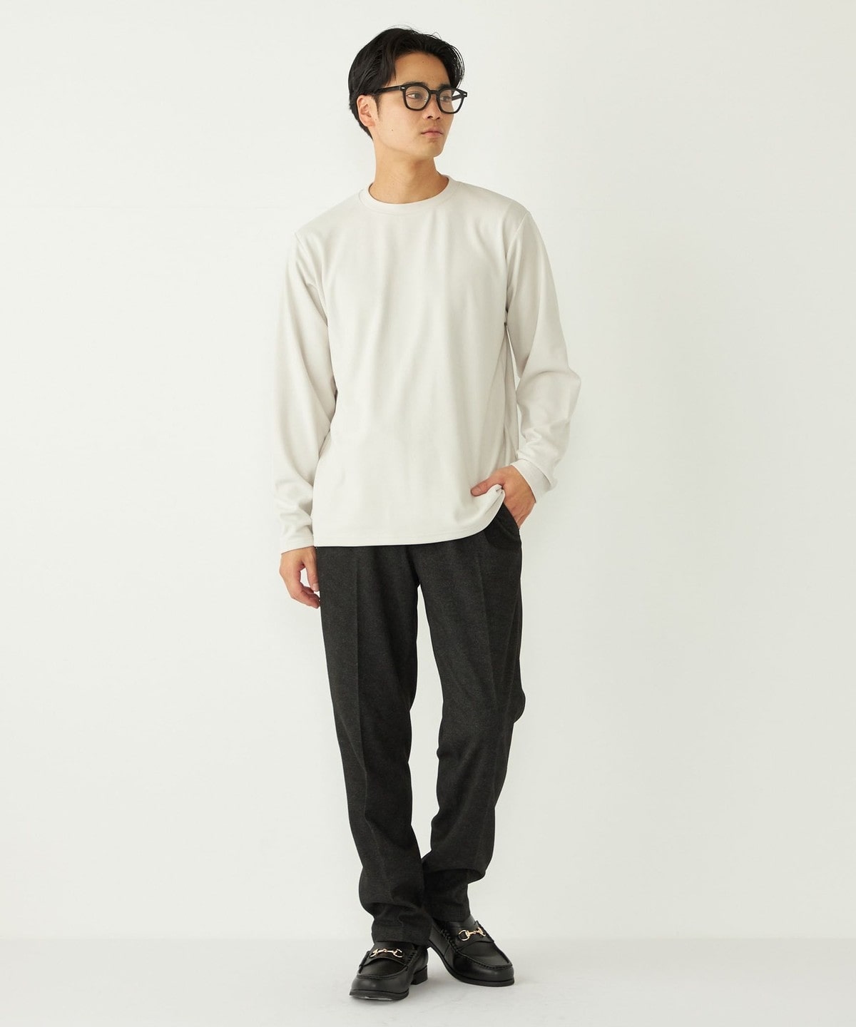 1. SHIPS Colors:〈吸水速乾〉スムース 微起毛 クルーネック ロンT オフホワイト
