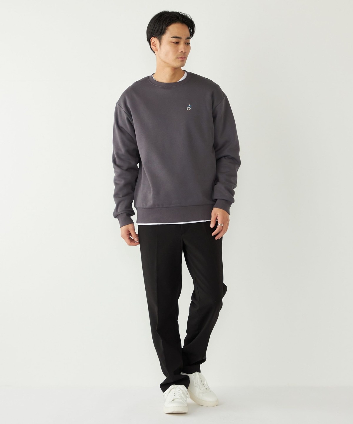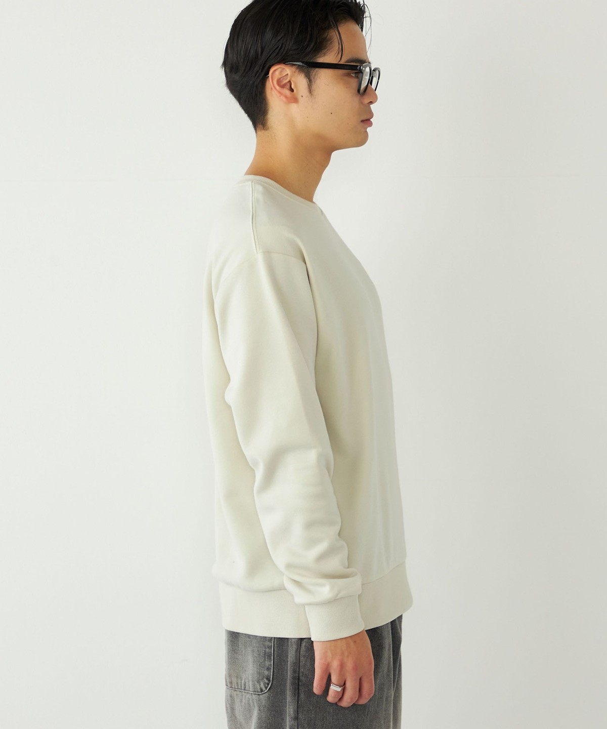 ポリエステルにコットンを混紡しており、ベーシックなスウェットの表情も併せ持った1枚です。