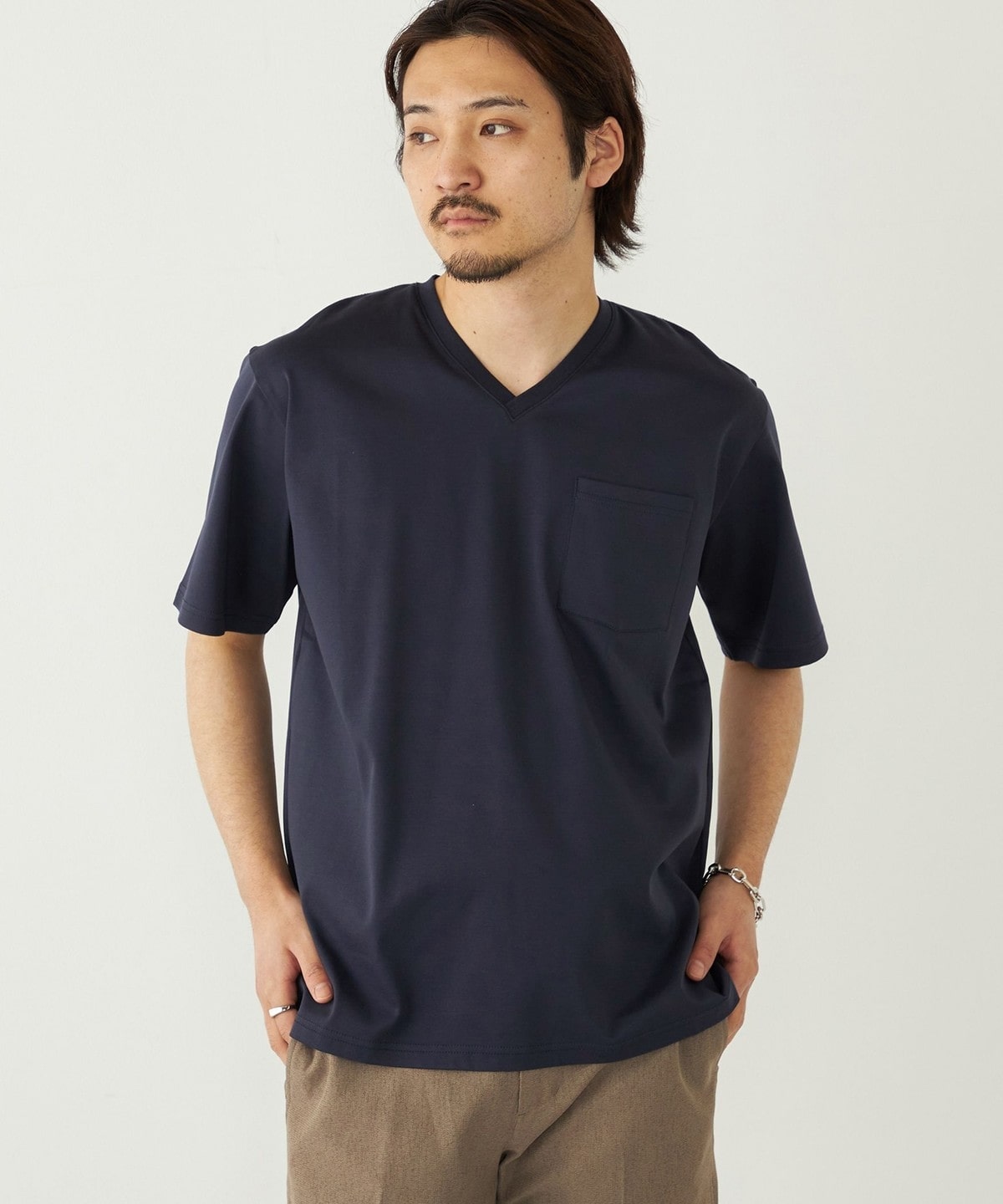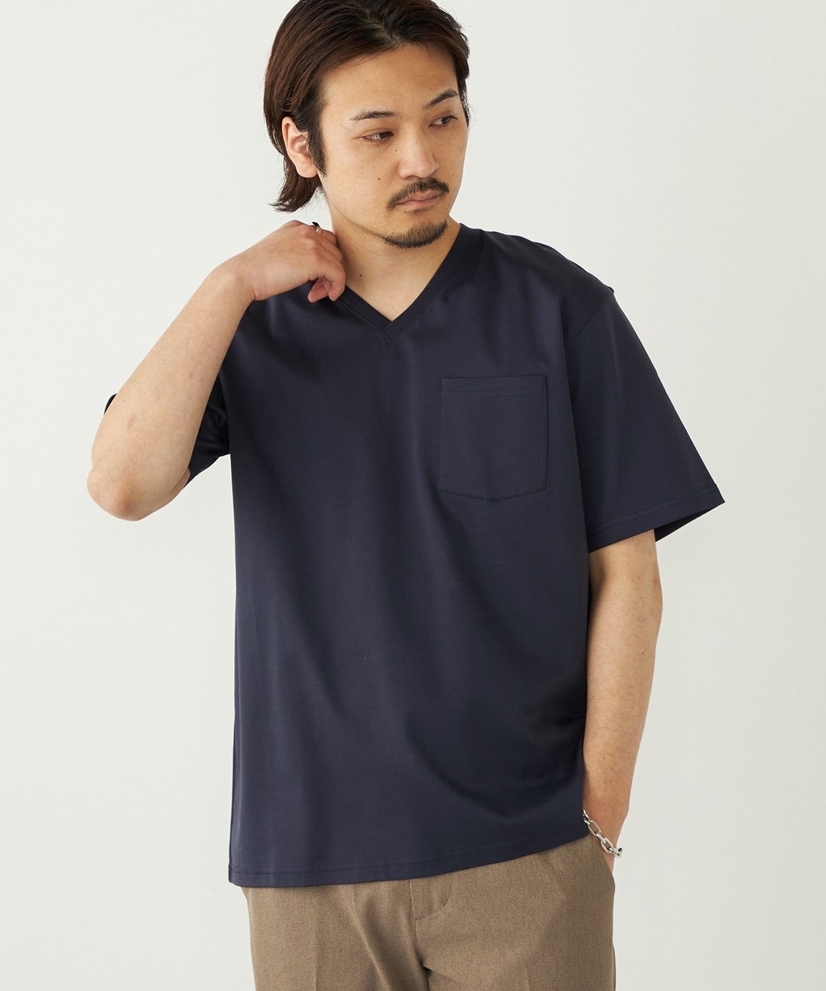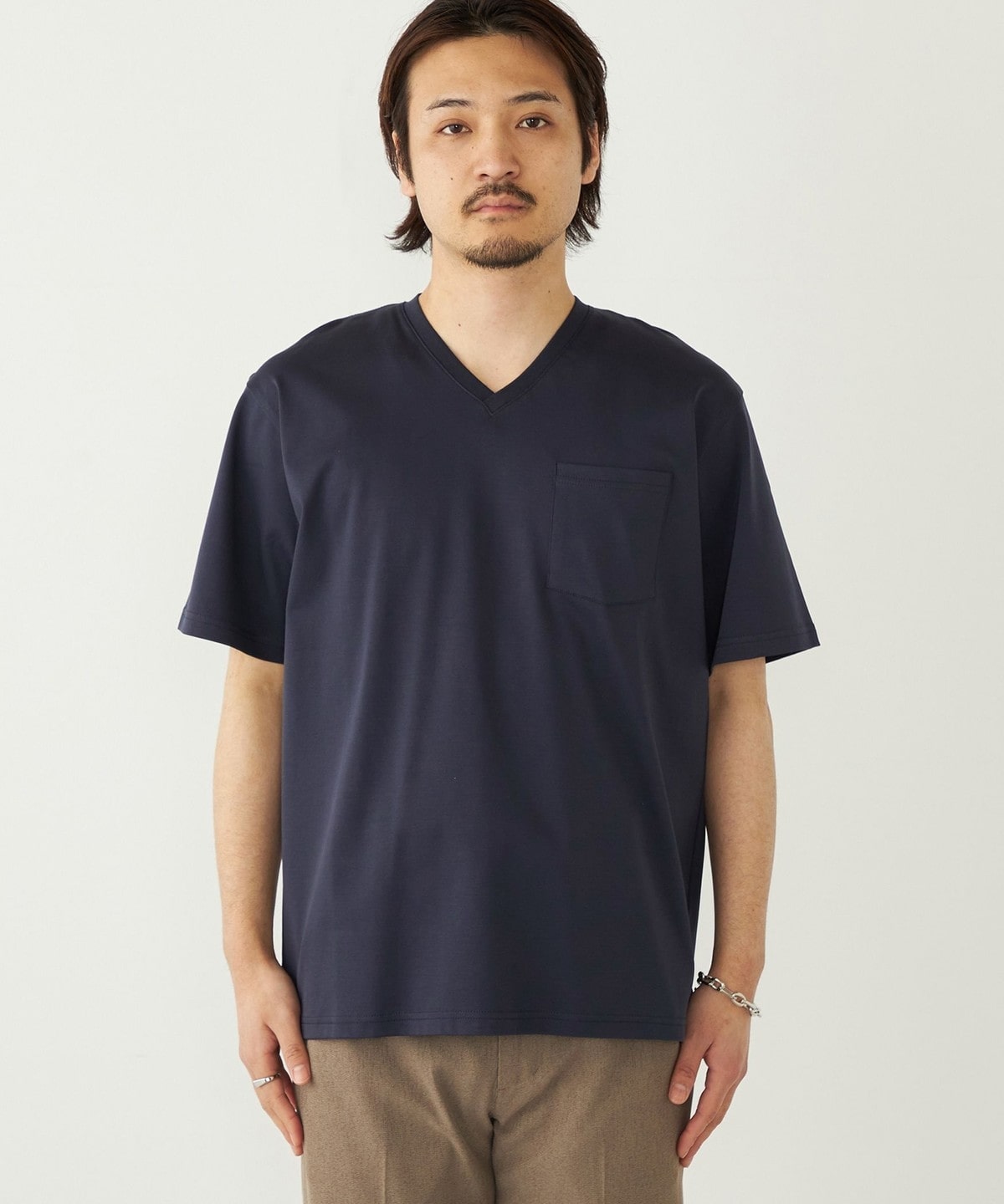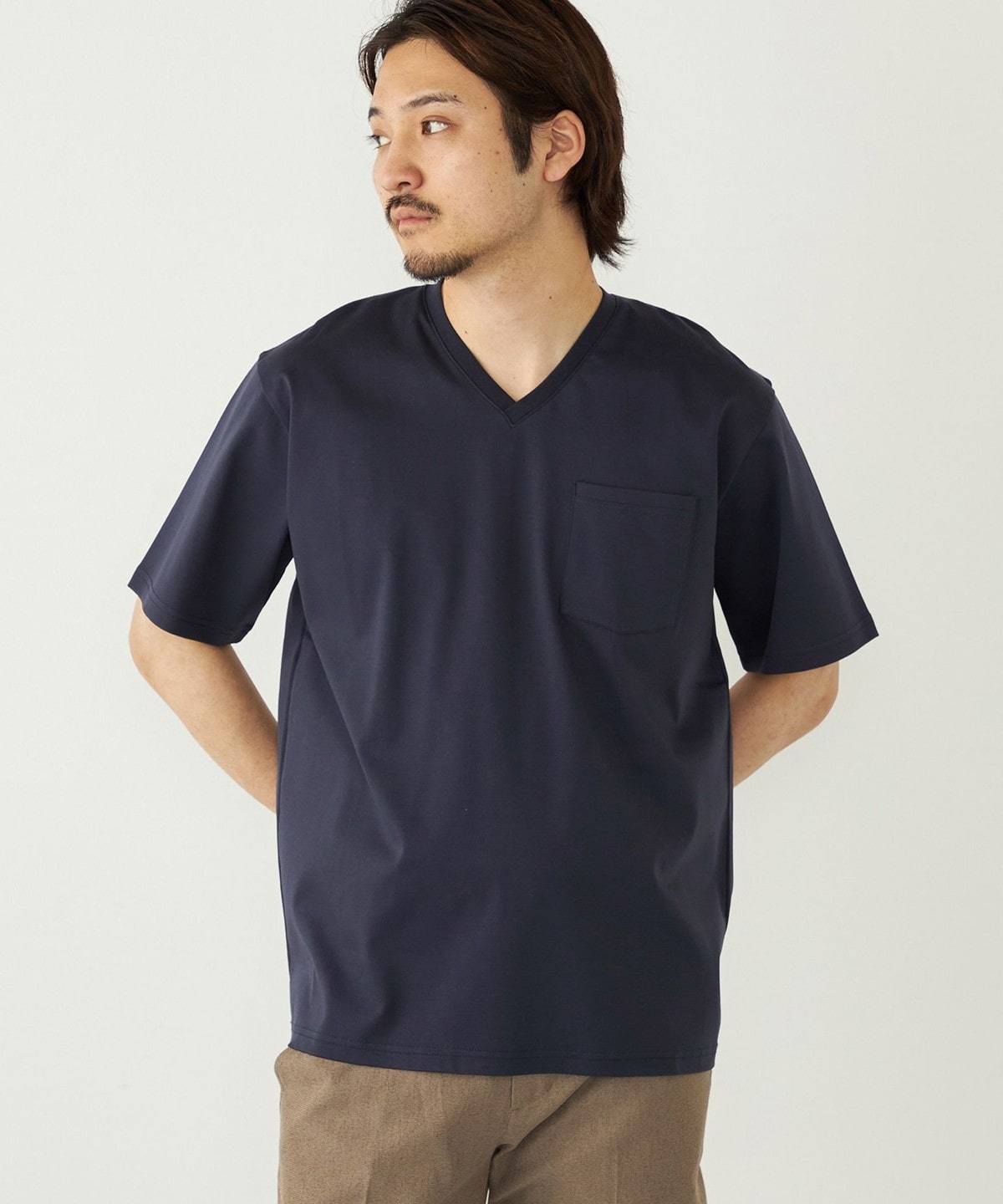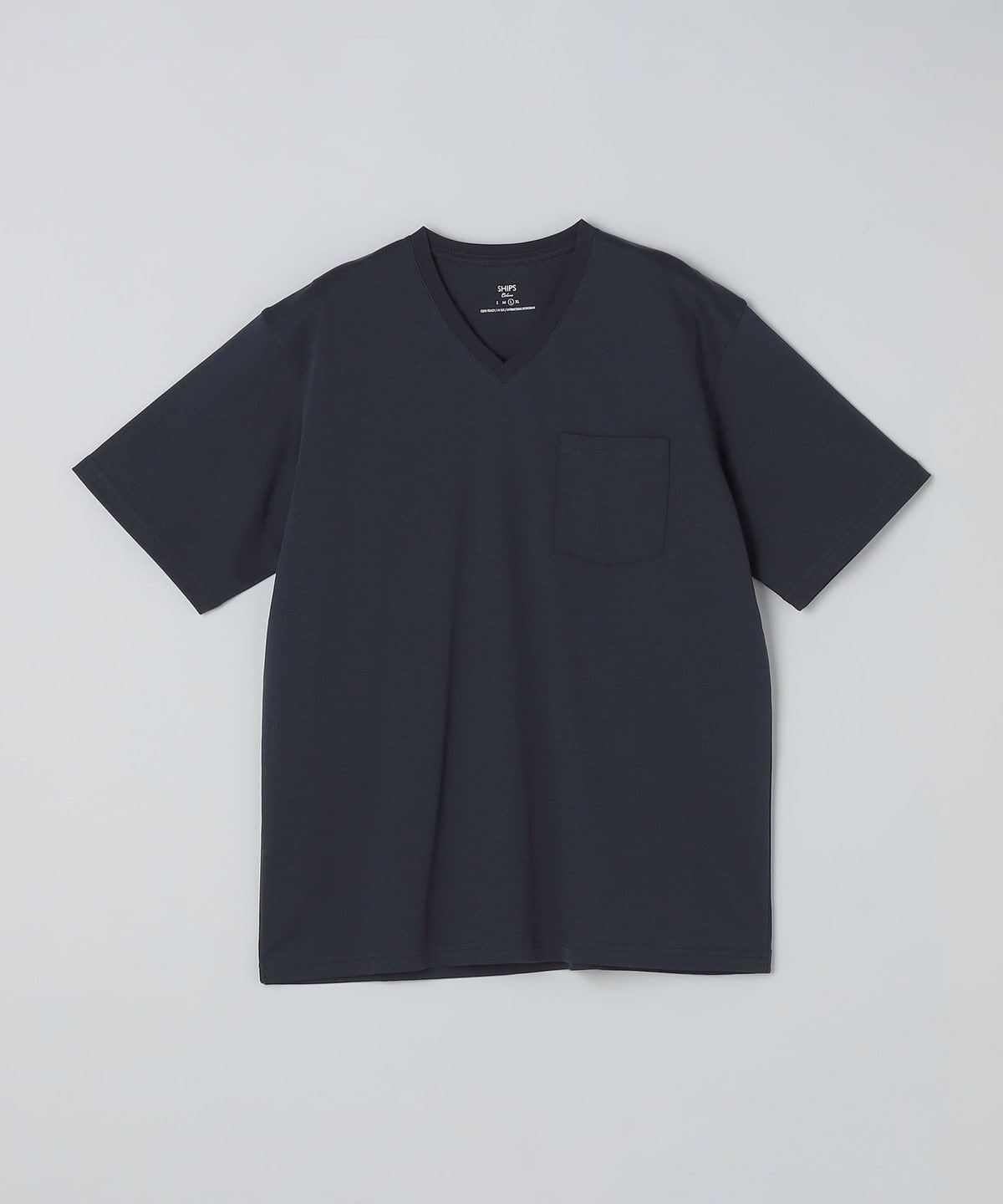 1. 《予約》SHIPS Colors:〈抗菌防臭・UVカット〉シルケット コットン Vネック T◆ ネイビー
