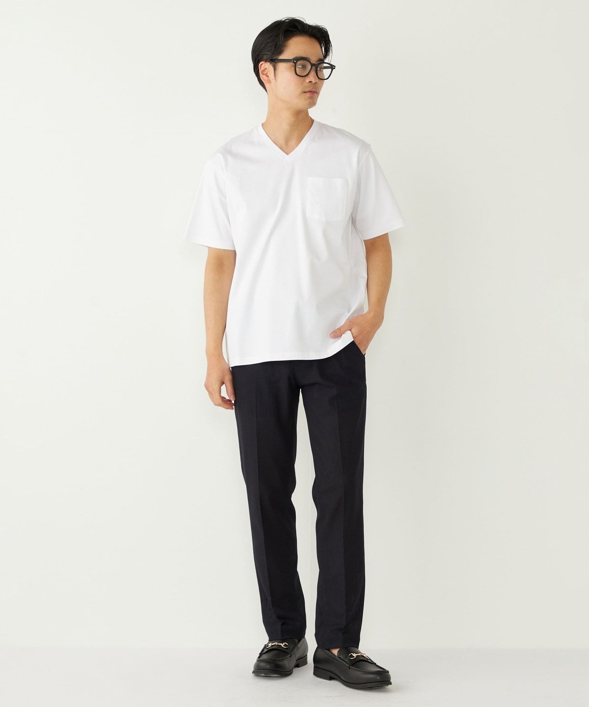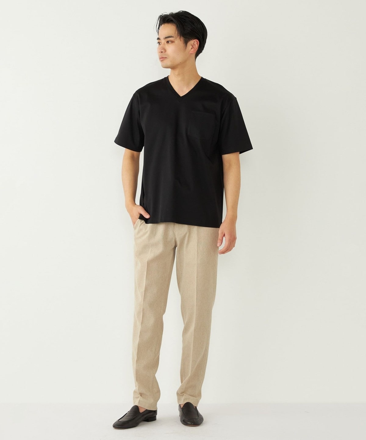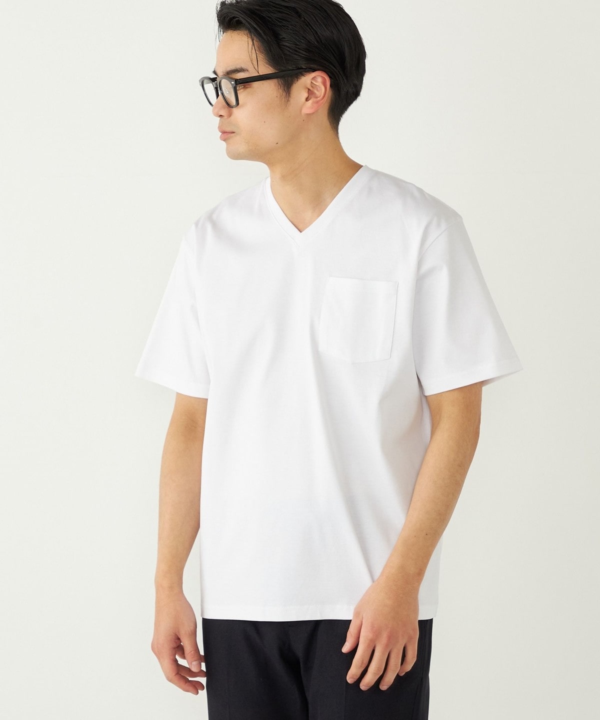 25. 《予約》SHIPS Colors:〈抗菌防臭・UVカット〉シルケット コットン Vネック T◆