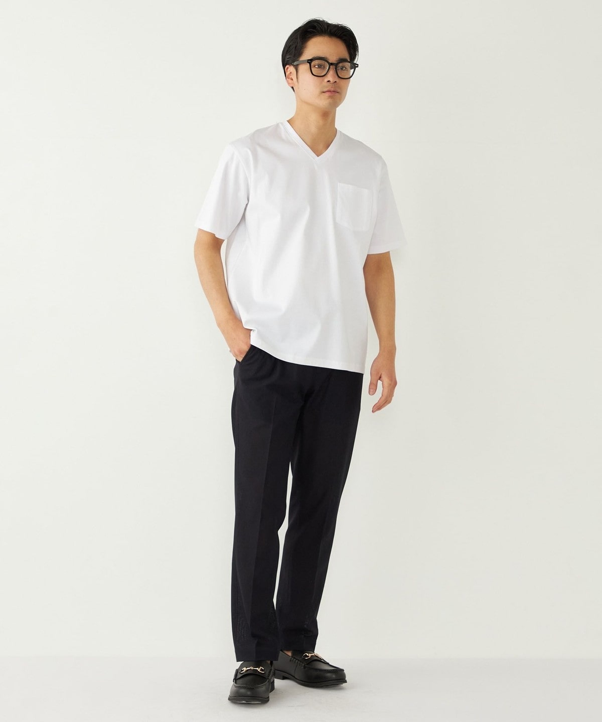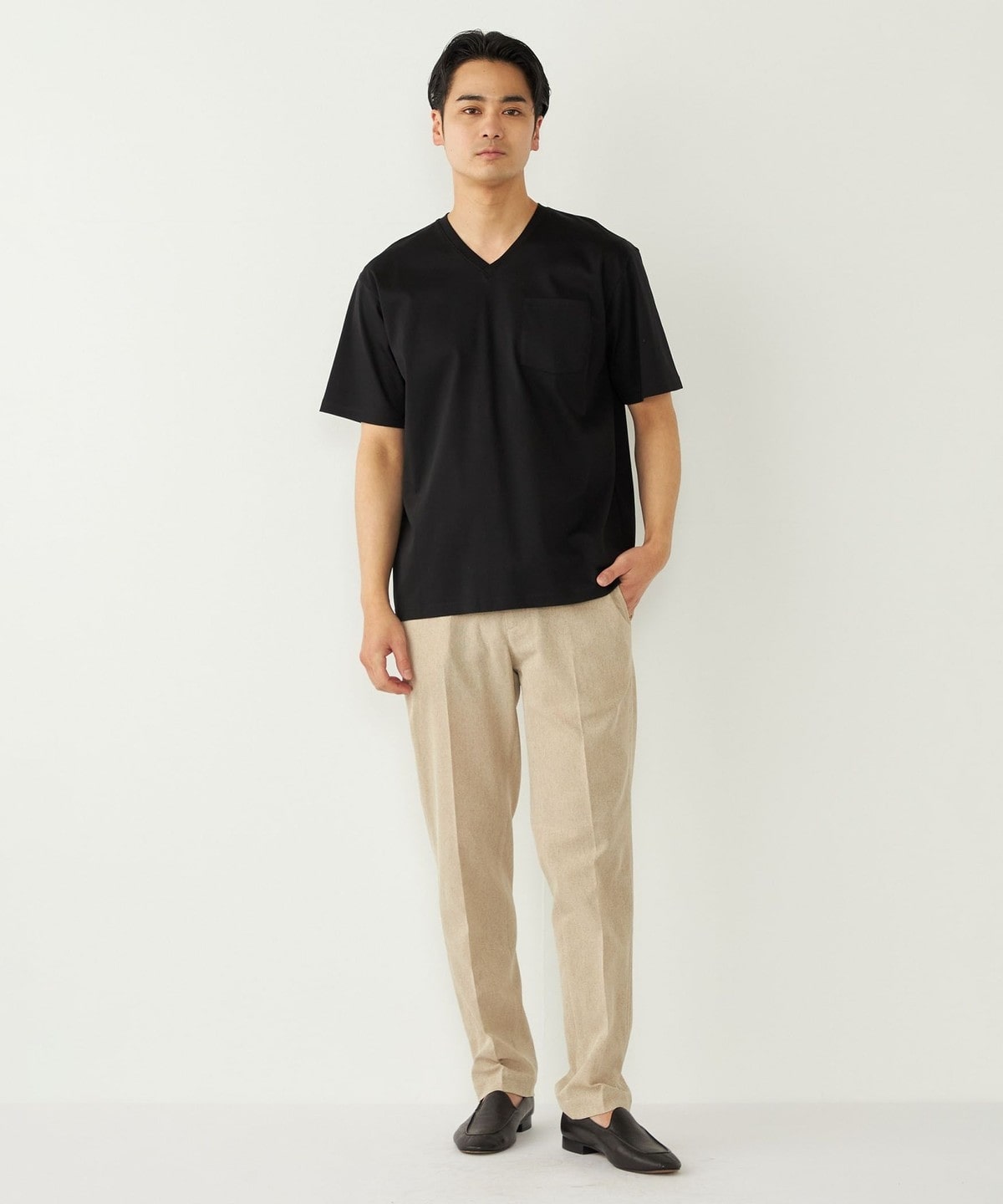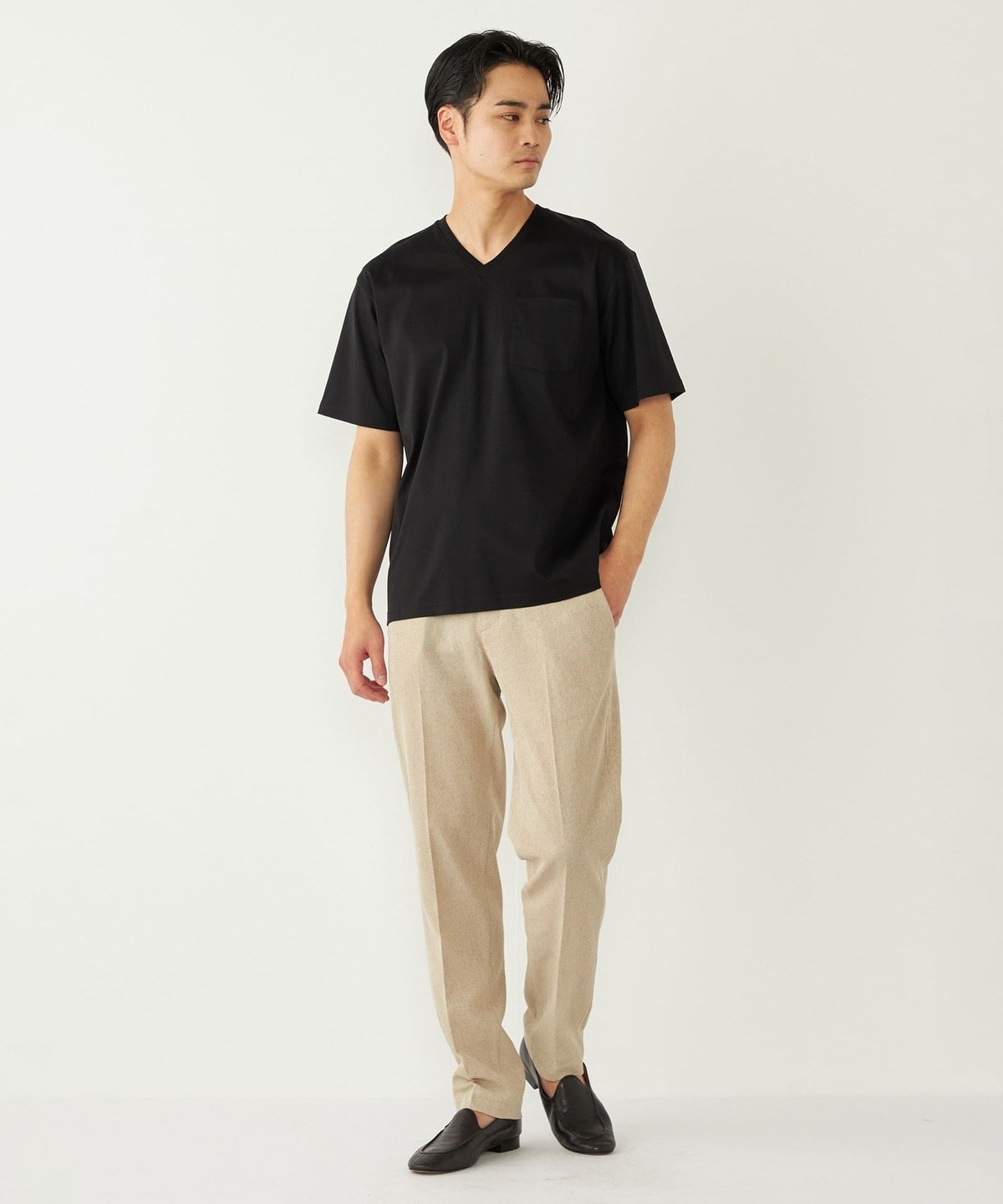 25. 《予約》SHIPS Colors:〈抗菌防臭・UVカット〉シルケット コットン Vネック T◆