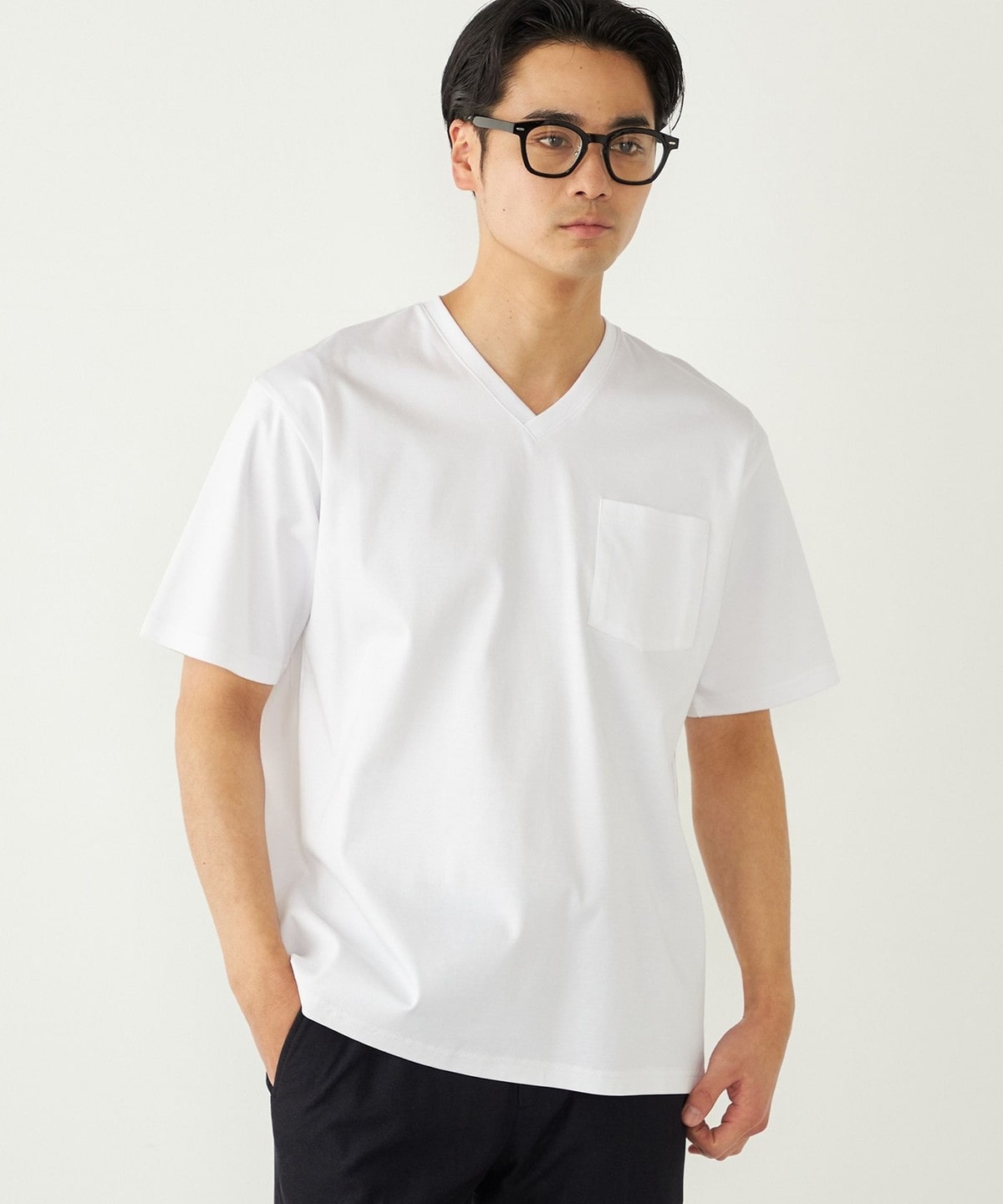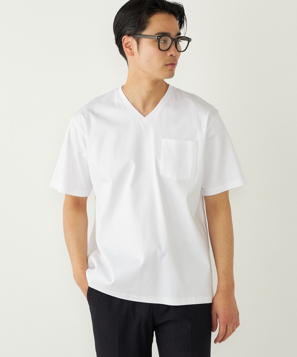 31. 《予約》SHIPS Colors:〈抗菌防臭・UVカット〉シルケット コットン Vネック T◆