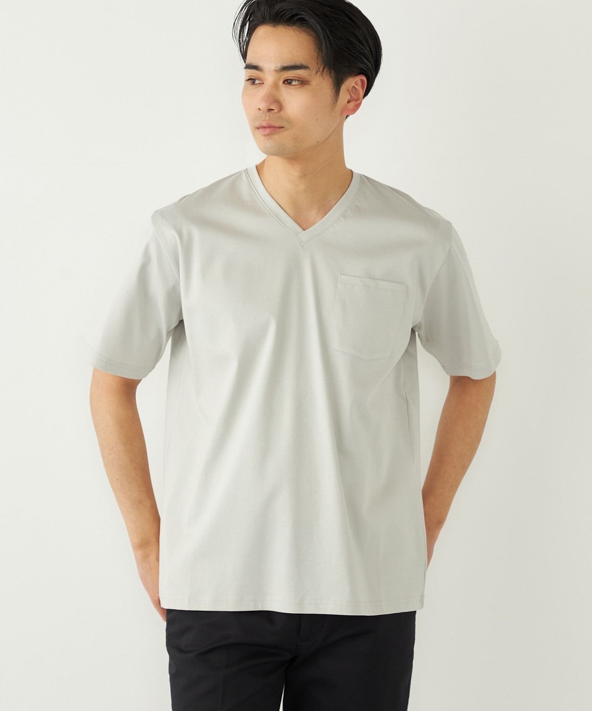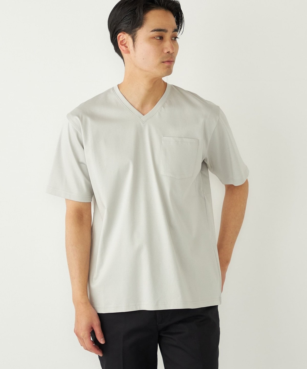 3. 《予約》SHIPS Colors:〈抗菌防臭・UVカット〉シルケット コットン Vネック T◆ グレー