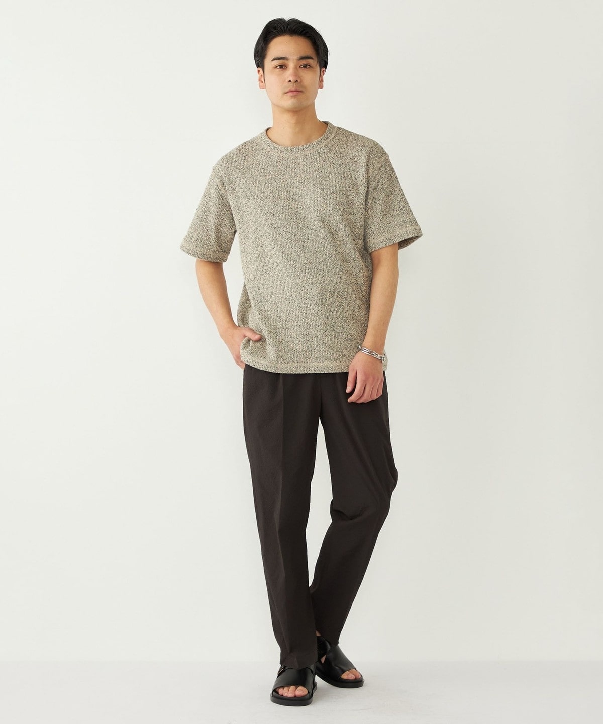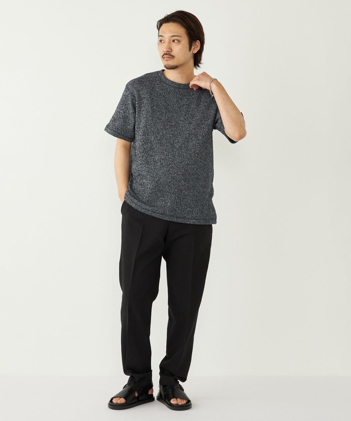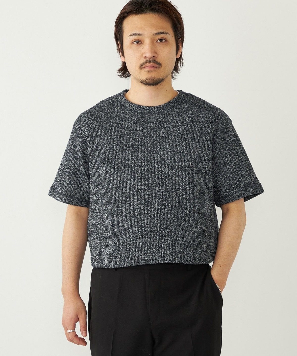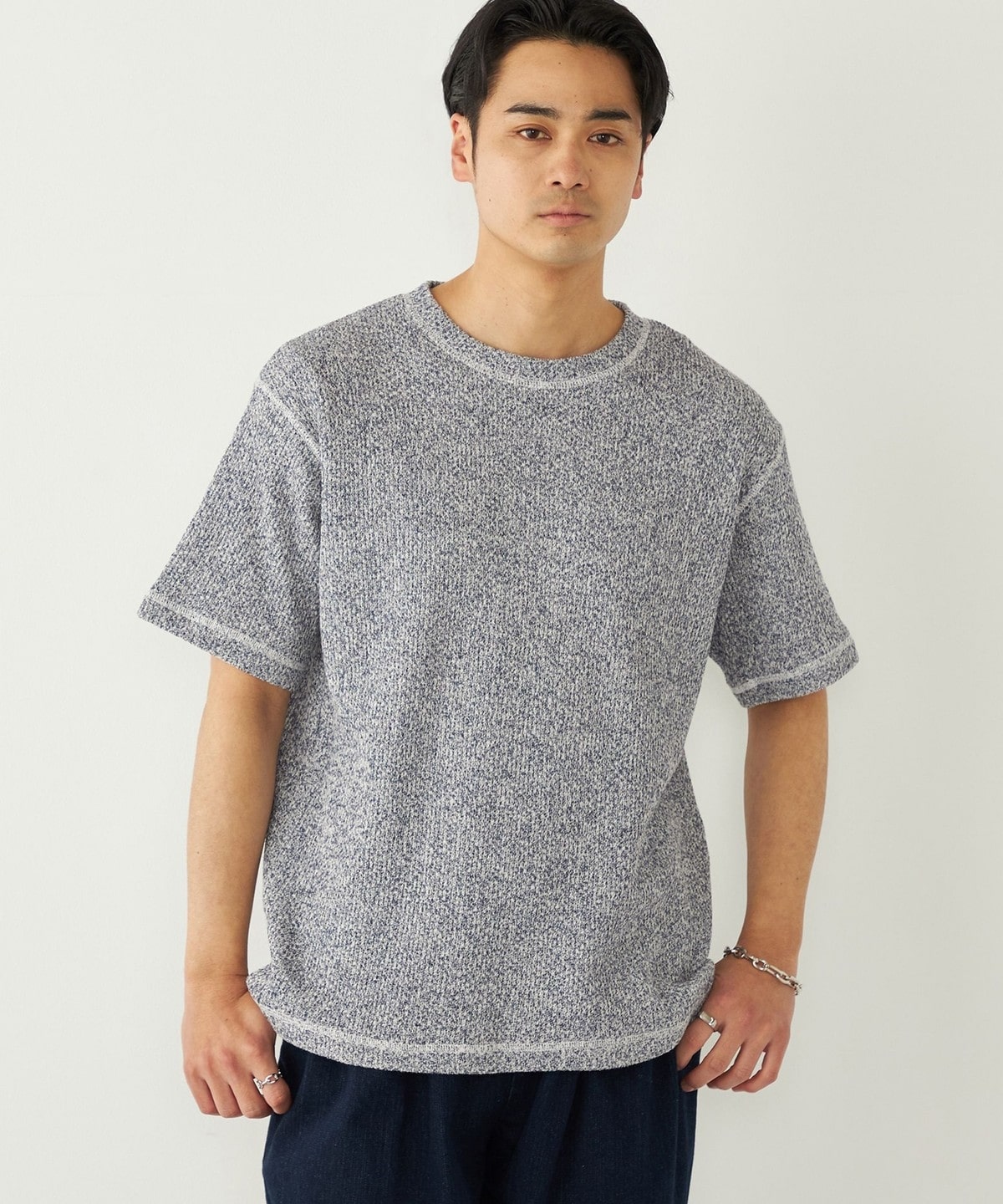 鹿の子編みの生地がニットのような表情も持っています。