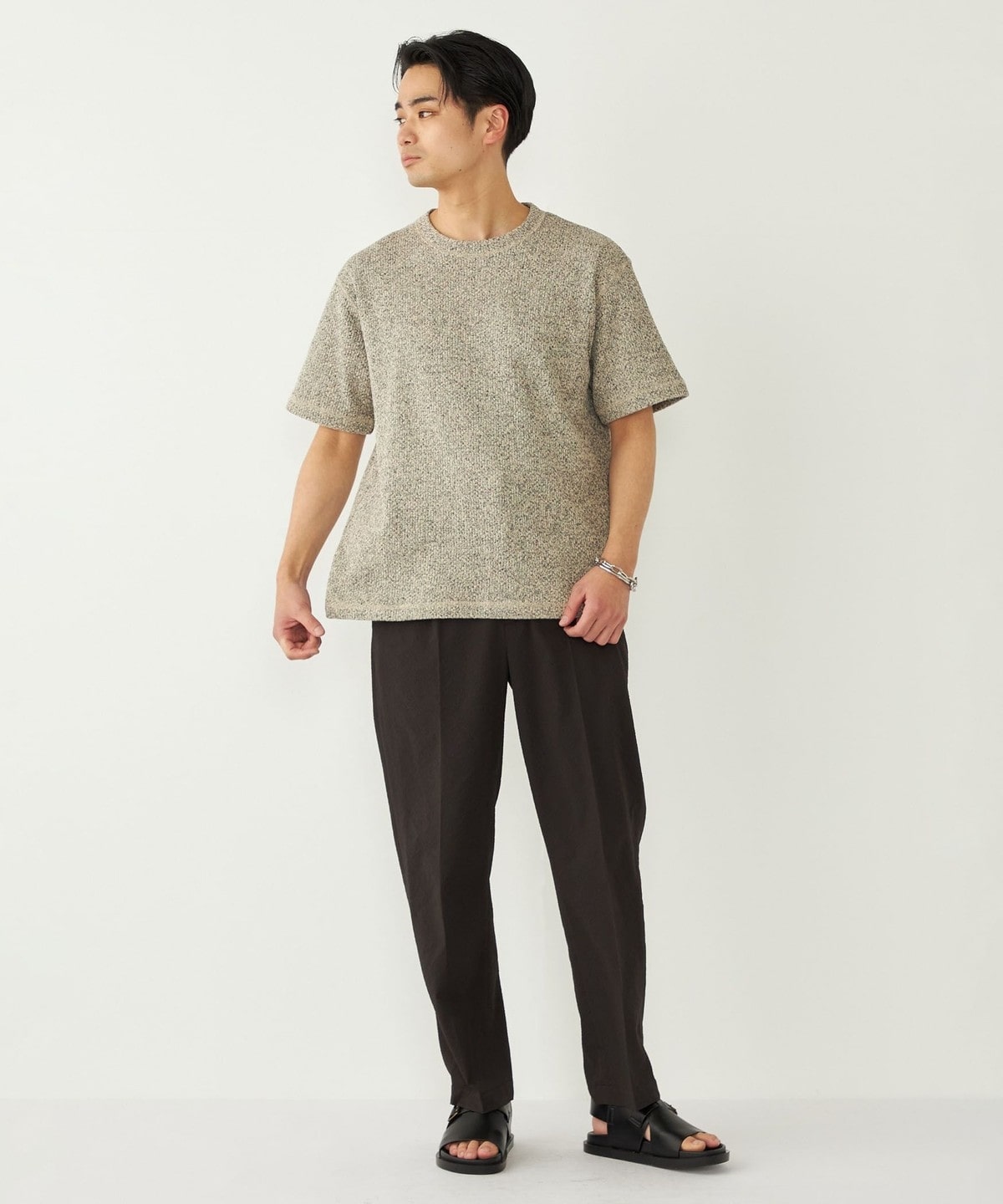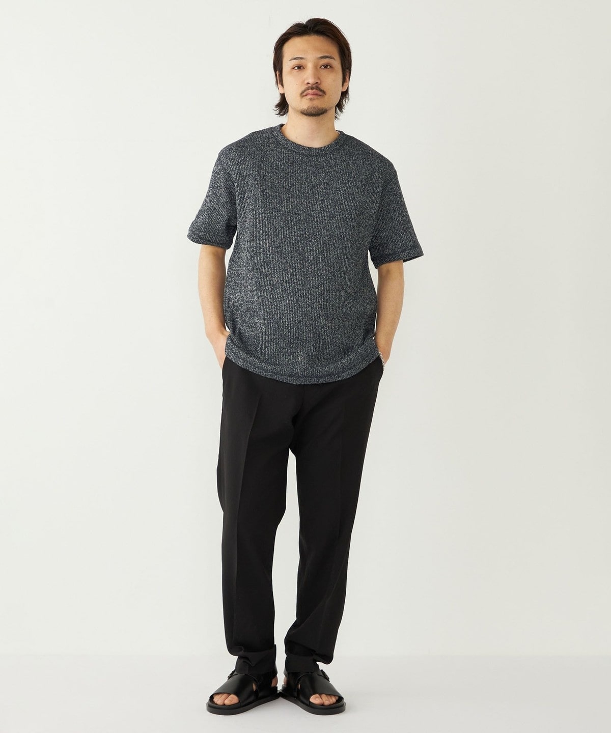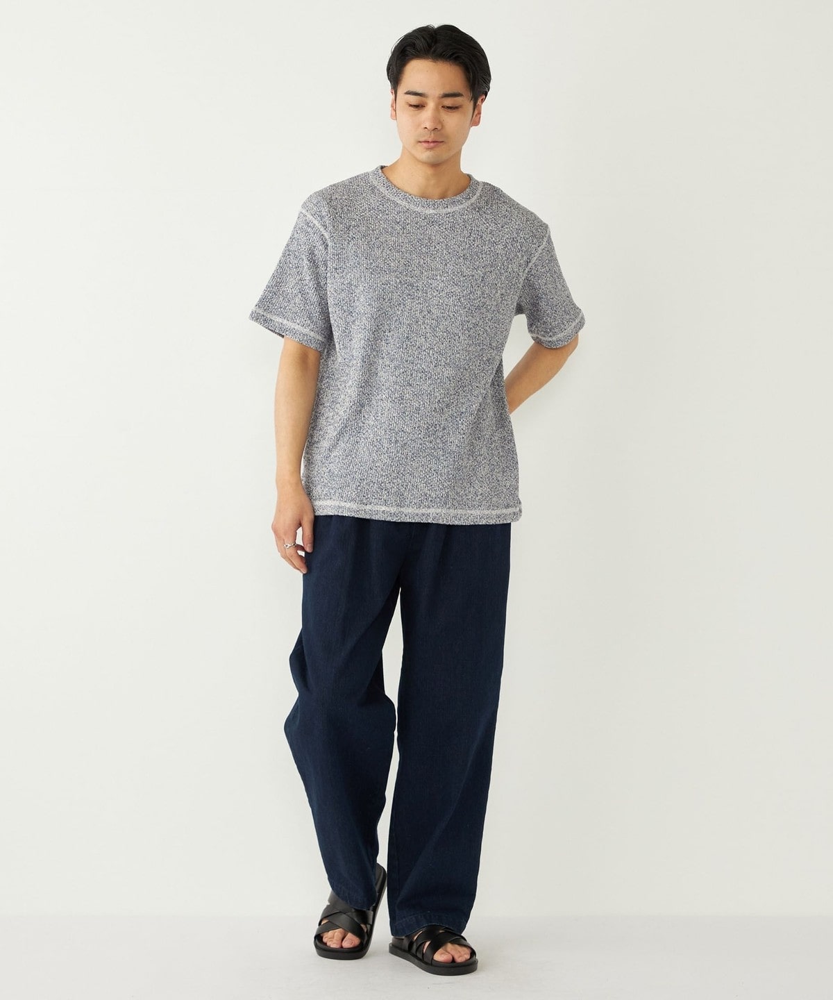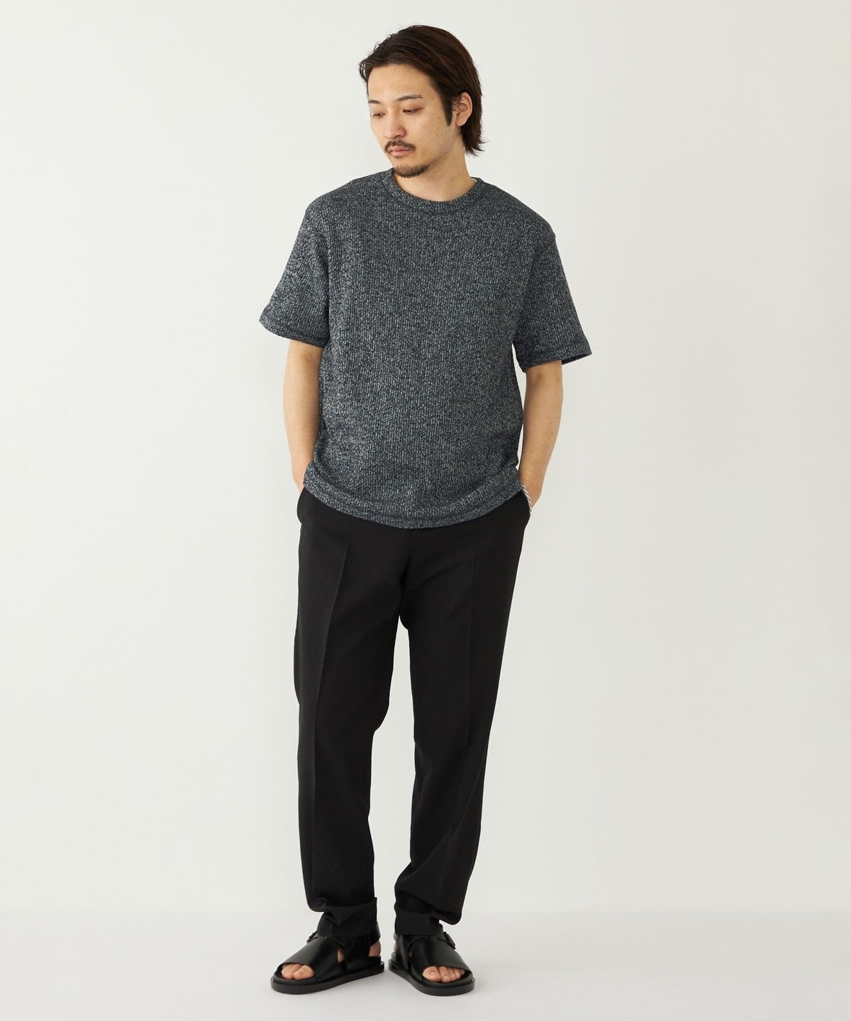 鹿の子編みの生地がニットのような表情も持っています。