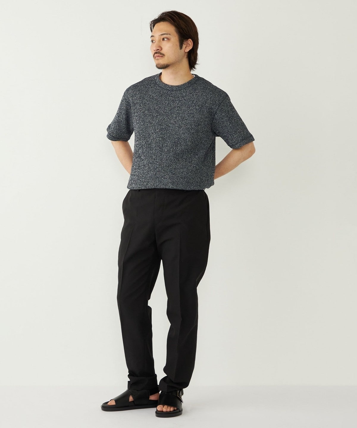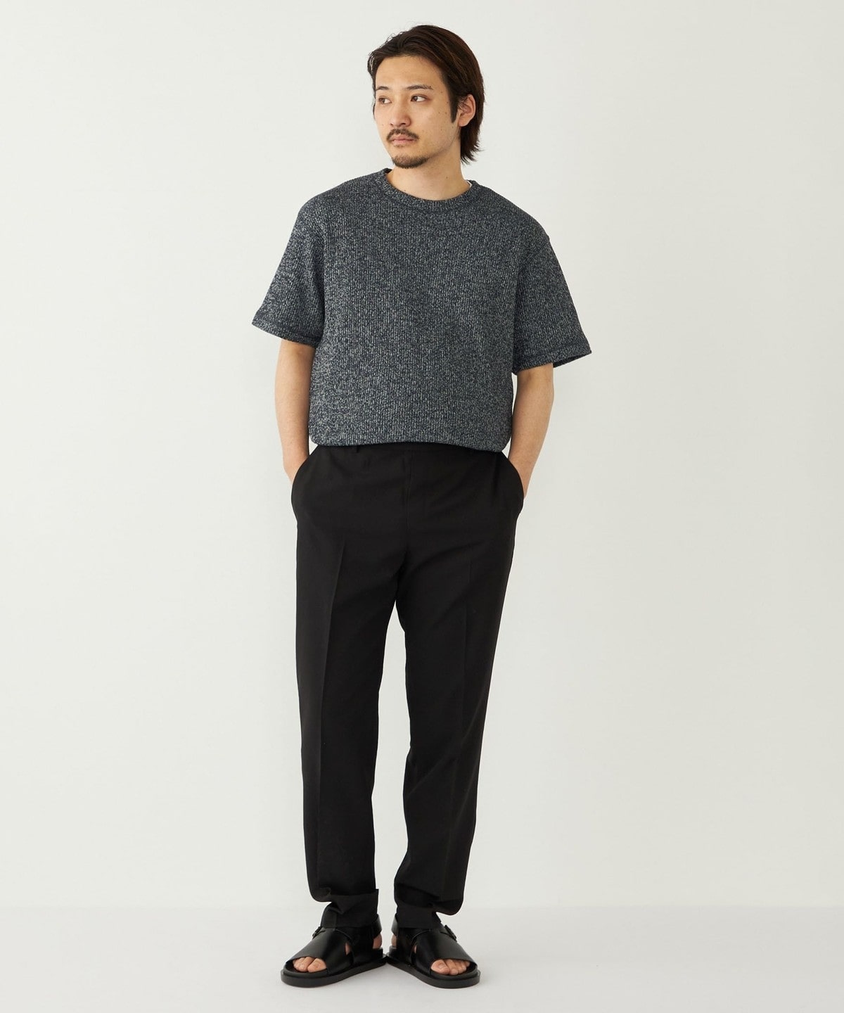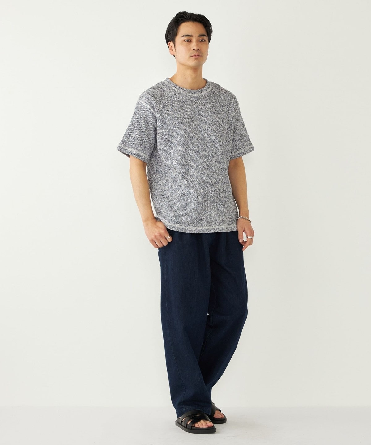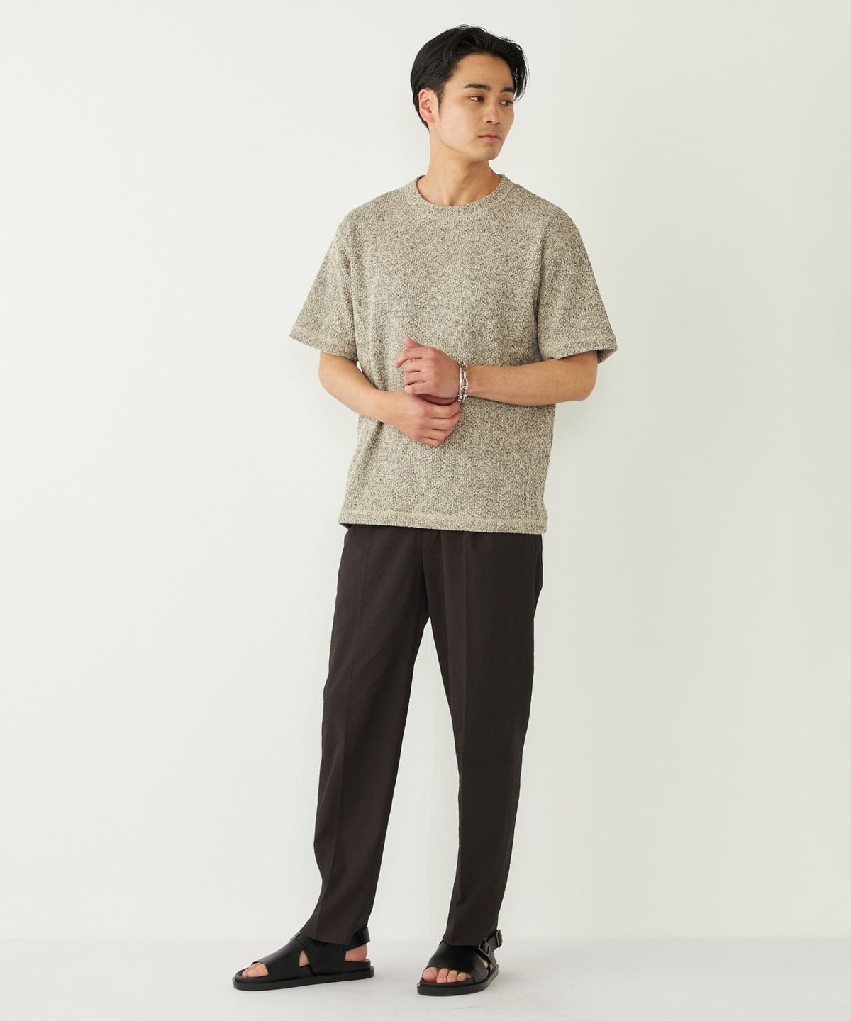 鹿の子編みの生地がニットのような表情も持っています。